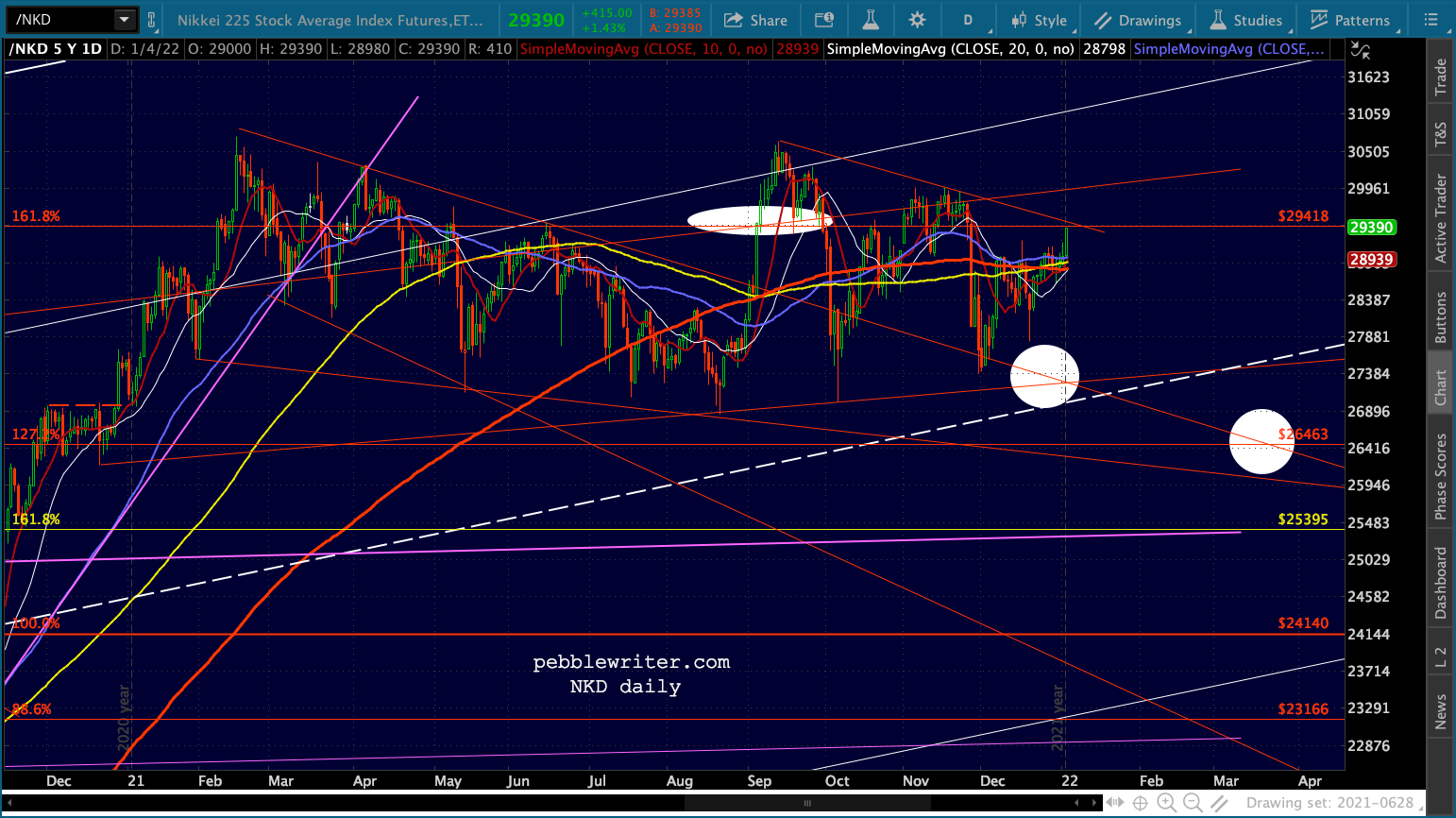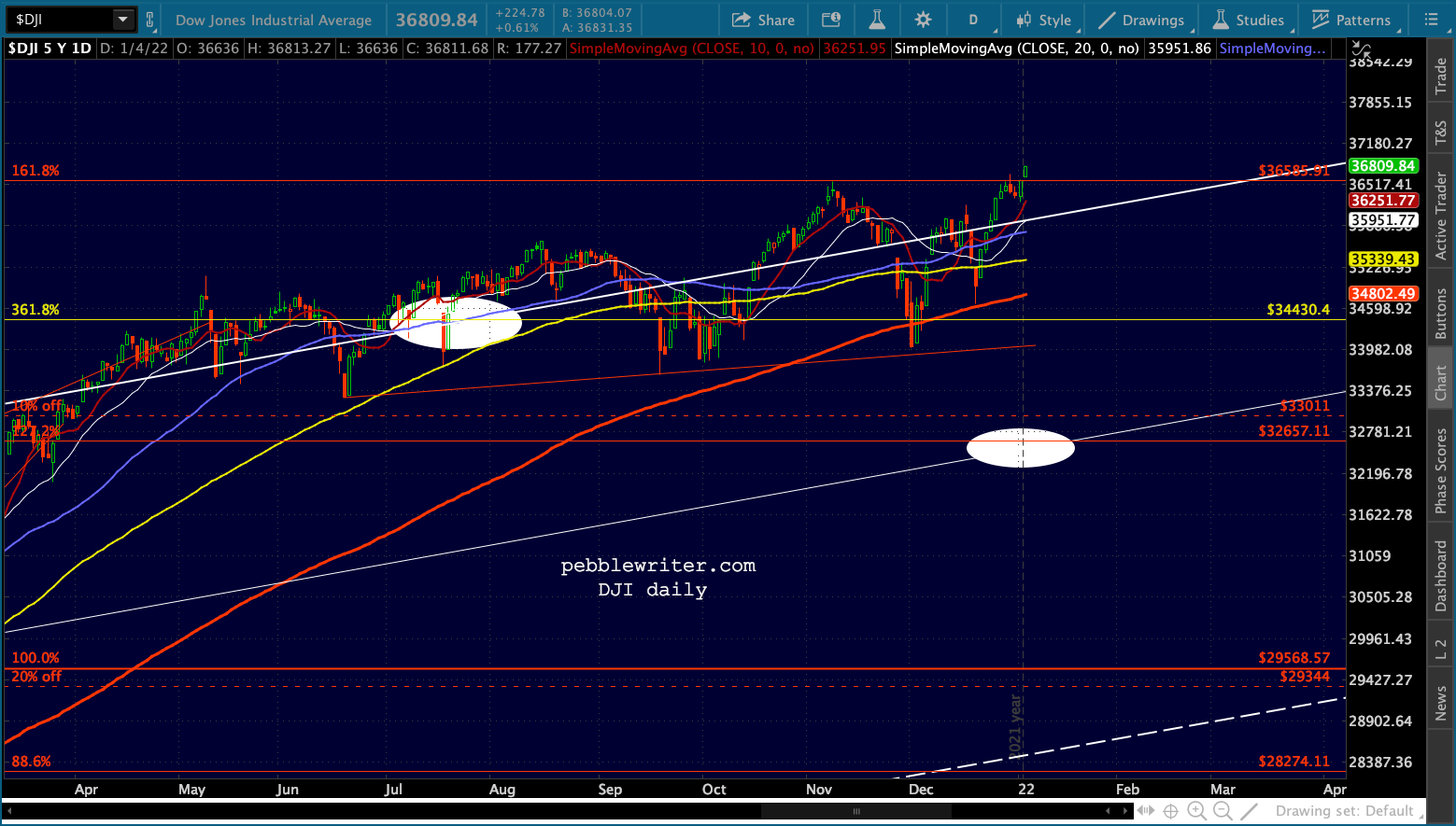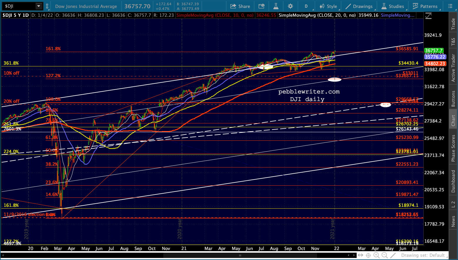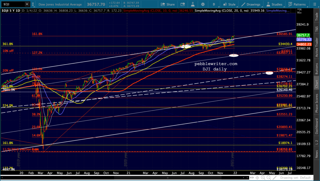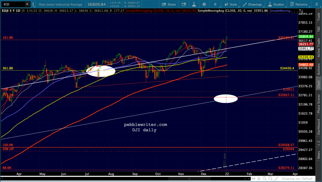 The more troubling chart from the bears’ standpoint is DJIA. It already reversed at its 1.618 in November, subsequently reversing to test its SMA200.