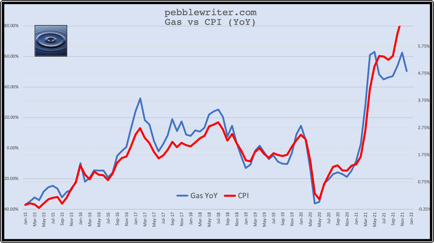 Looking ahead to tomorrow’s CPI print… EIA reports a 50.5% YoY increase in gas prices for December. This is a substantial drop from November’s 62%, so it should help mitigate CPI. But, the bond market doesn’t believe it will be enough.