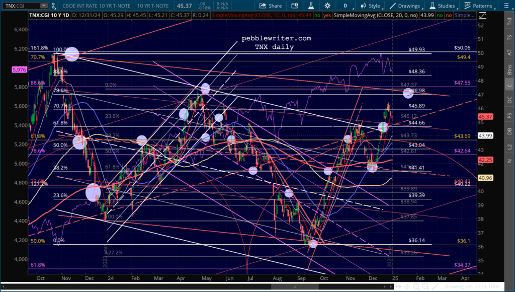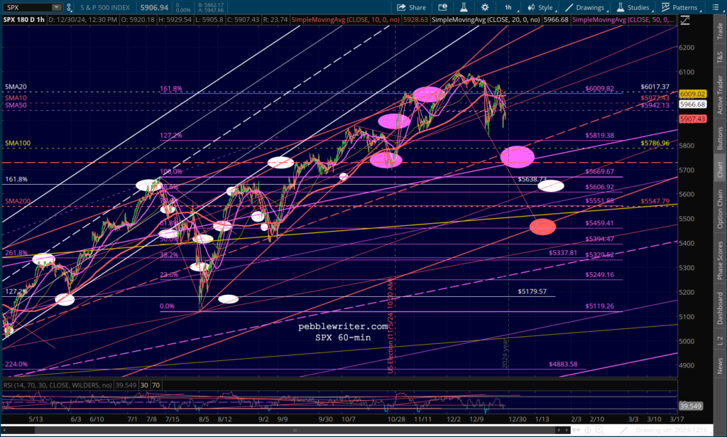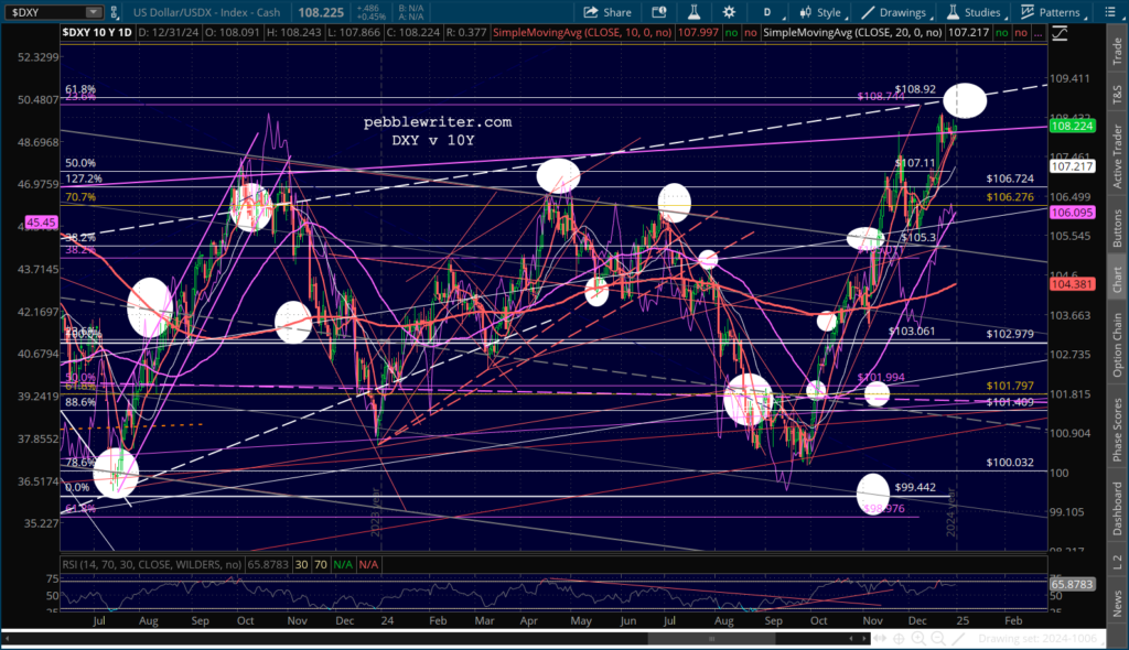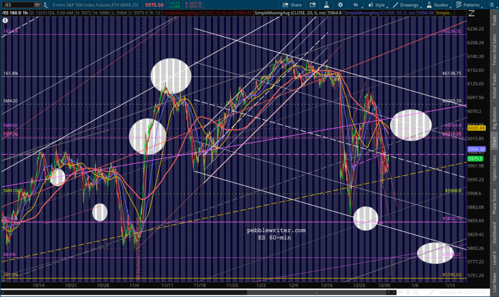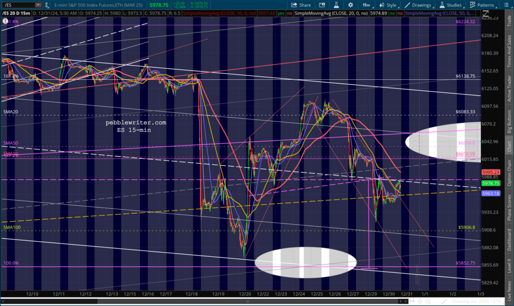 Futures are up modestly, capping off a strong year for the S&P 500, up 23.9% through yesterday’s close (versus +24.2% in 2023.) But, it was a year of haves and have-nots. Companies like PLTR (+349.5%) and NVDA (+177.6%) soared, while stocks in real estate, energy and healthcare suffered through another depressing year.