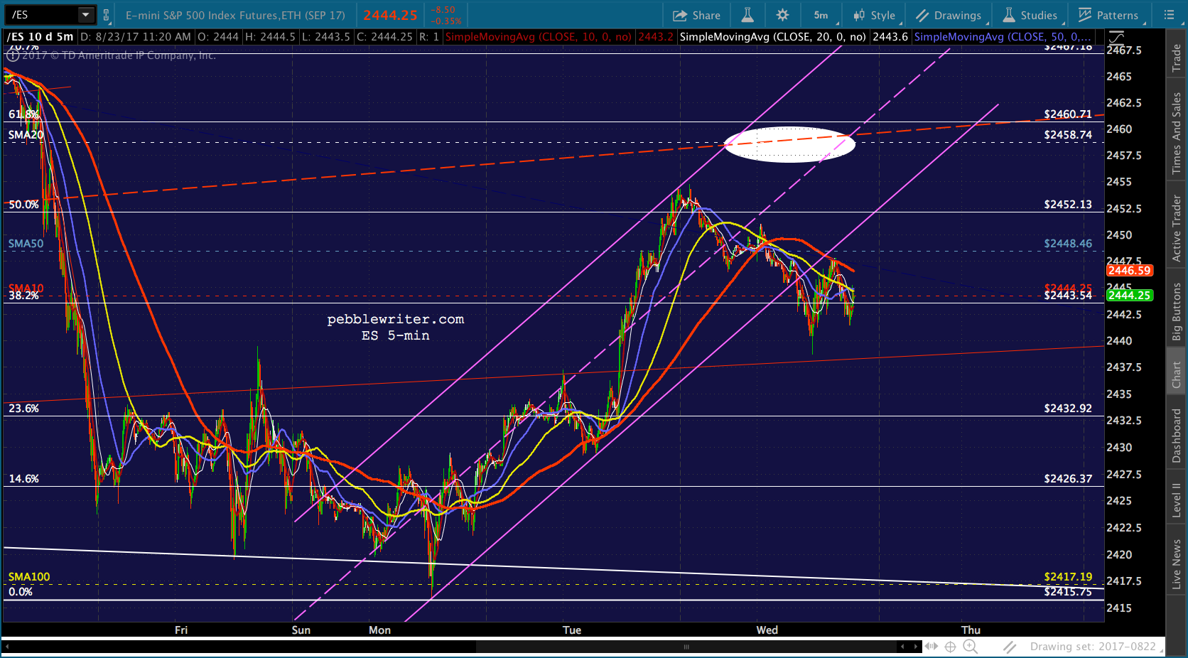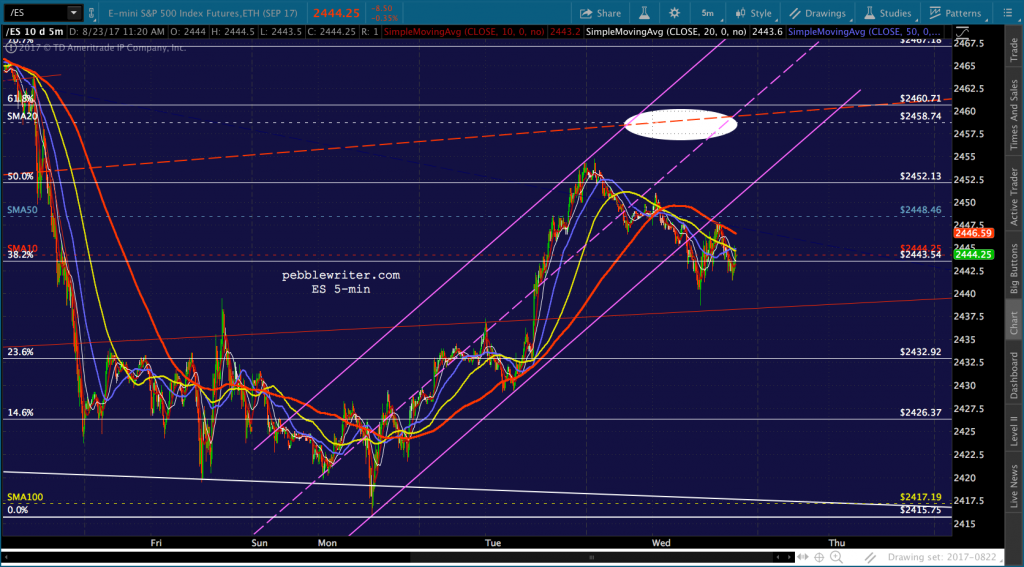 If the rising white channel should break down, we’d have support at 2430, 2421.62 and 2415.41.