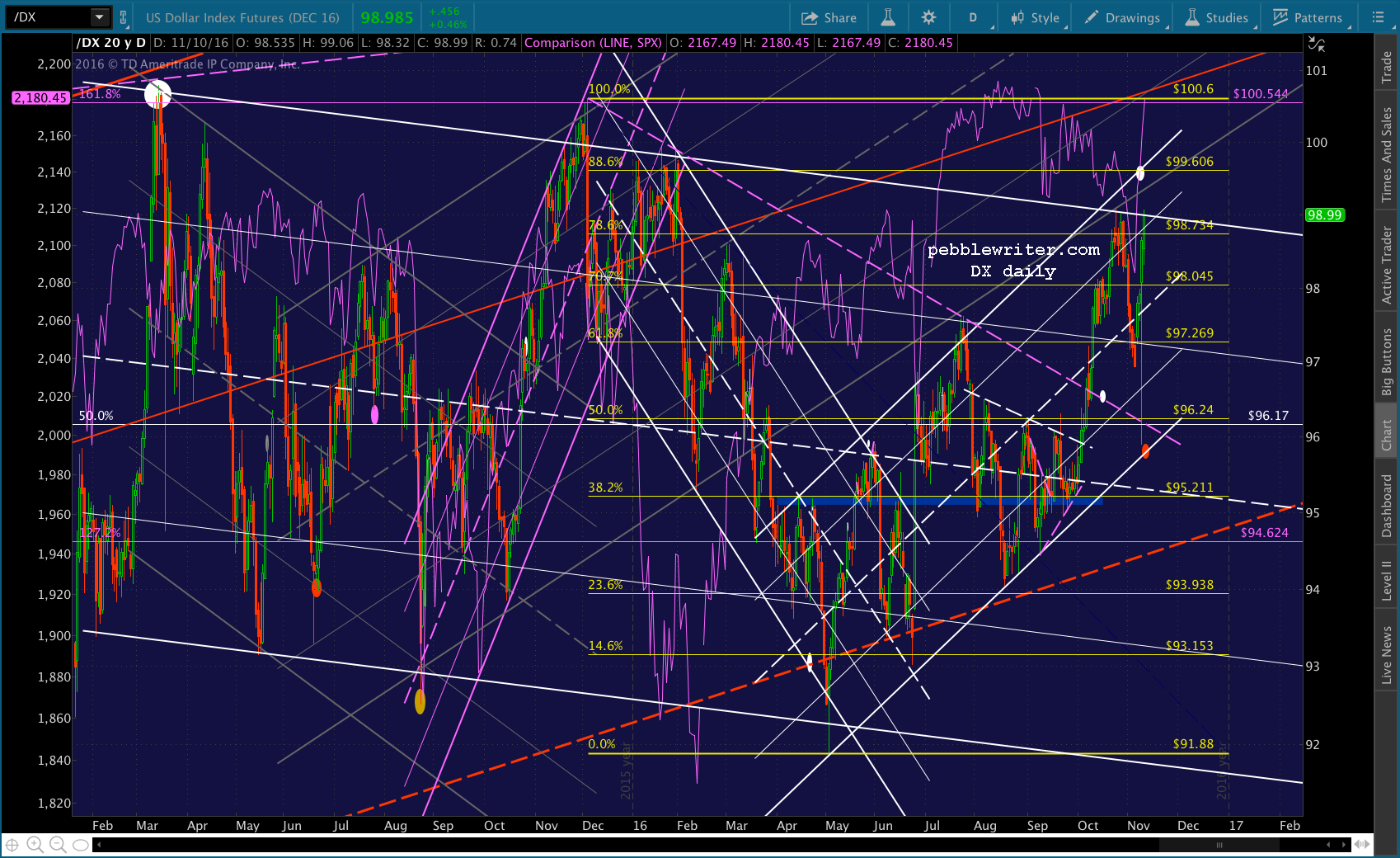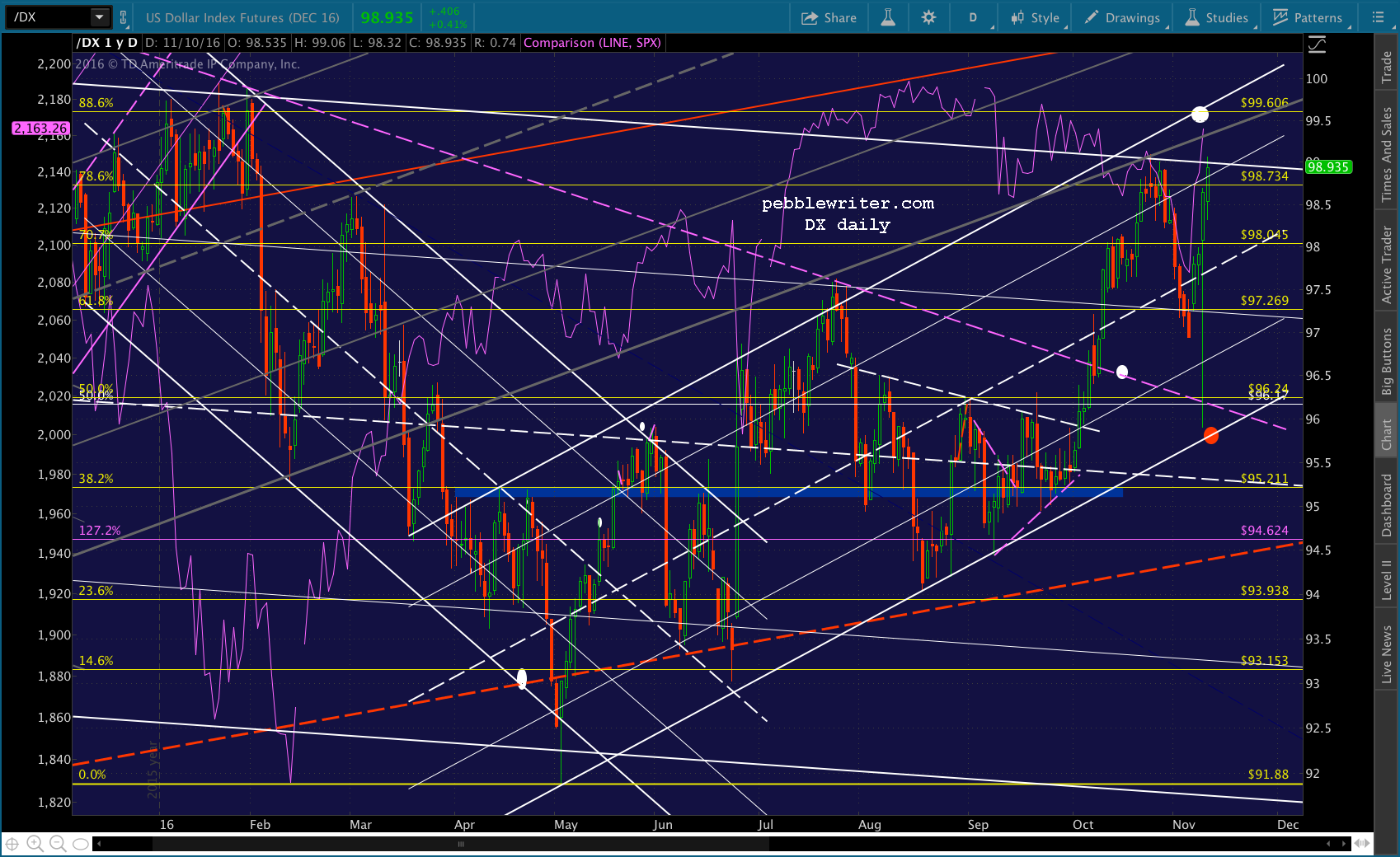 The charts say DX could have further to go. But, the white channel top represents a potential spoiler.