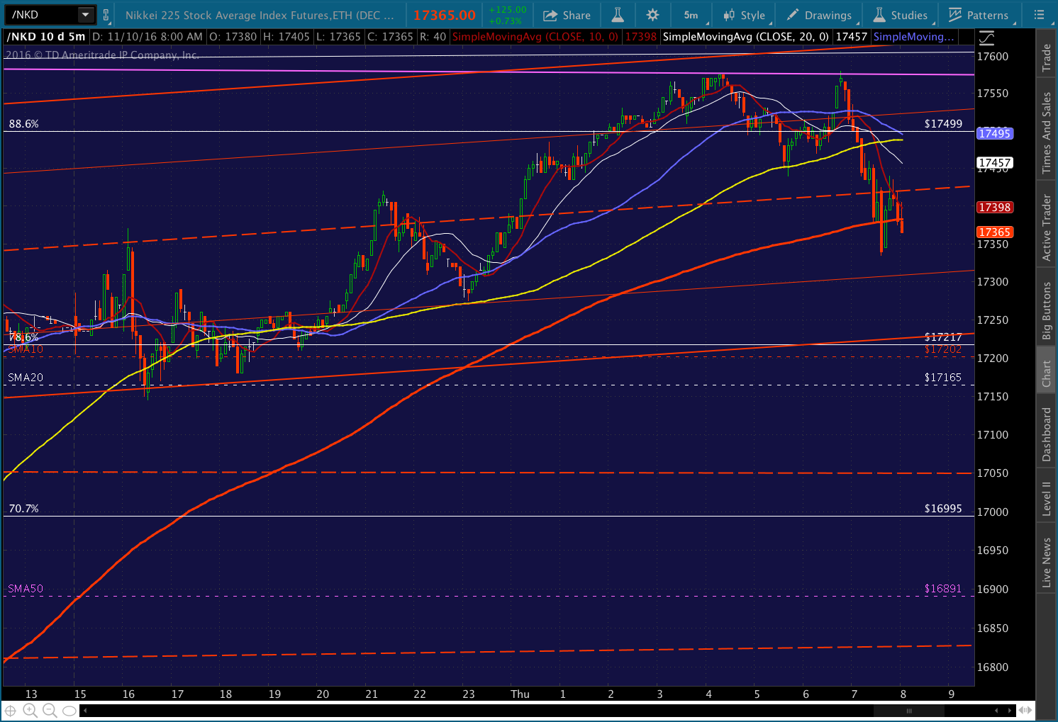 NKD, one of my favorite indicators, just signaled lower by dropping through its SMA5 200. Back to short here at 2157.17. Tight stops are advised, as NKD is also very good at head fakes.