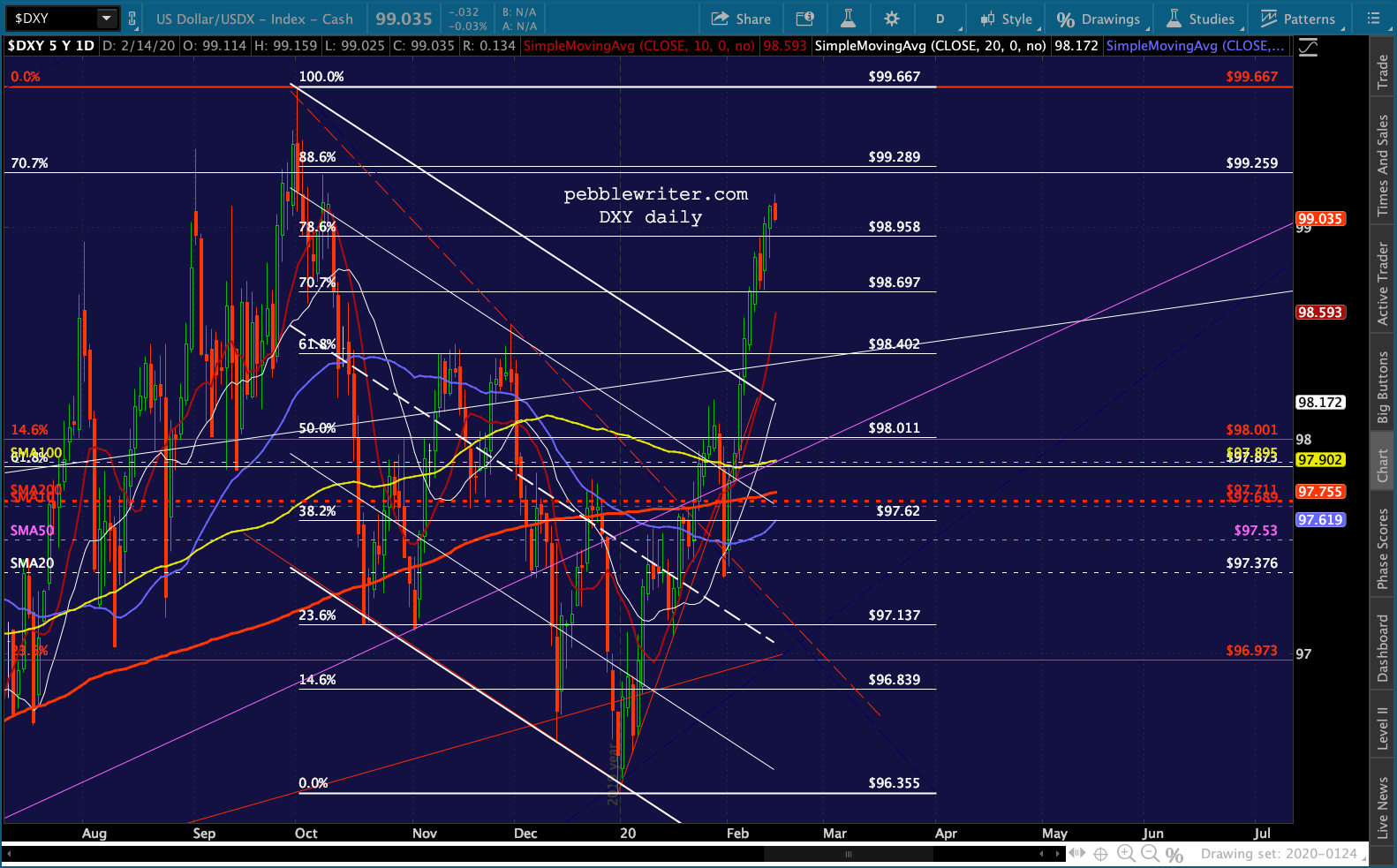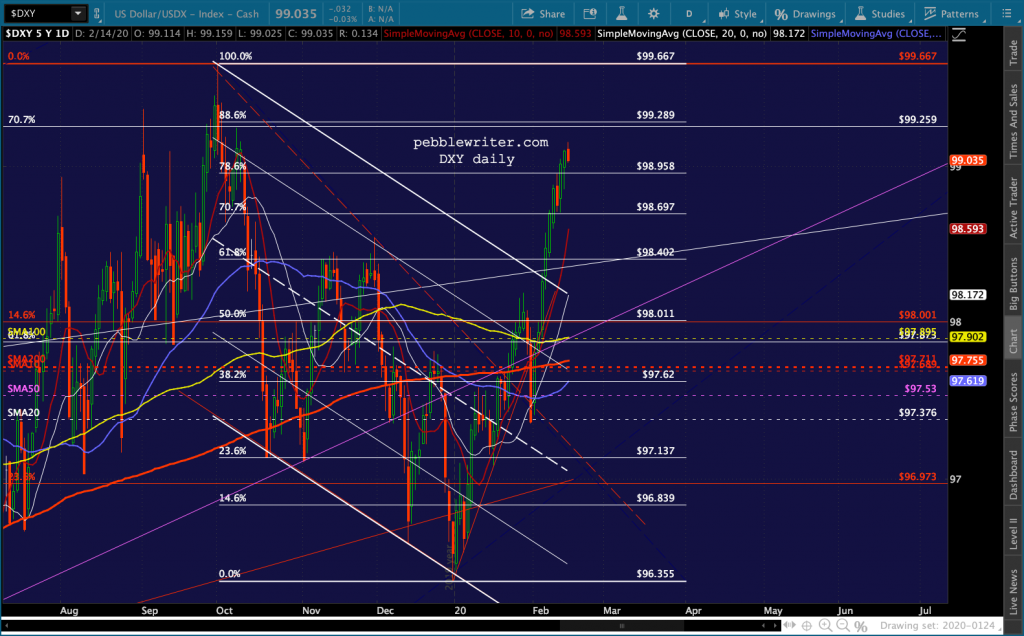 DXY remains broken out and is threatening new cycle highs – almost a certainty if stocks are going to push any higher.