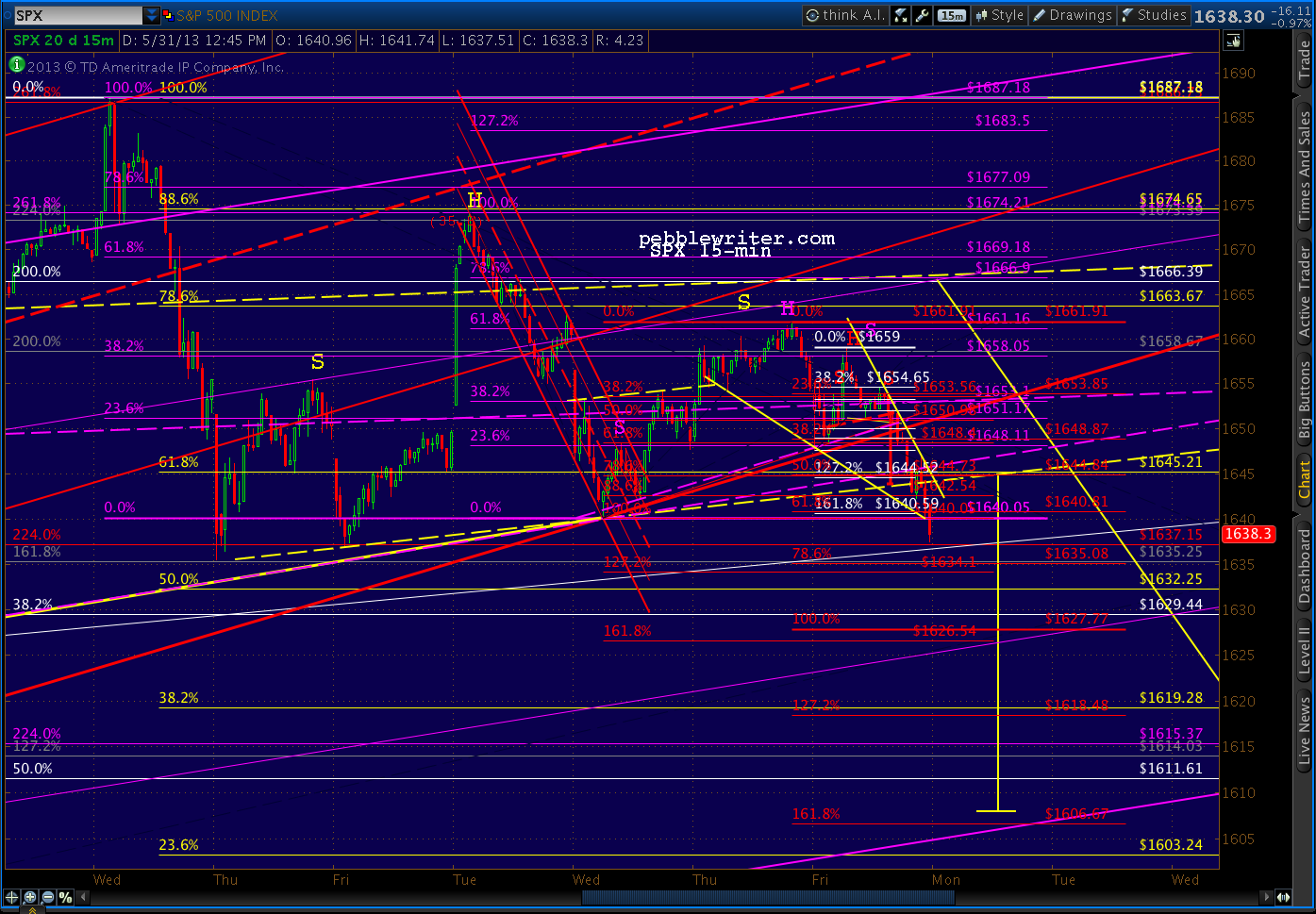 Just a little warning, here. SPX just completed a little H&S pattern on the 1-min chart that targets 1643.14. Stops just below 1651 make sense here, though the .786 is at 1650.57. So, maybe 1650 instead.