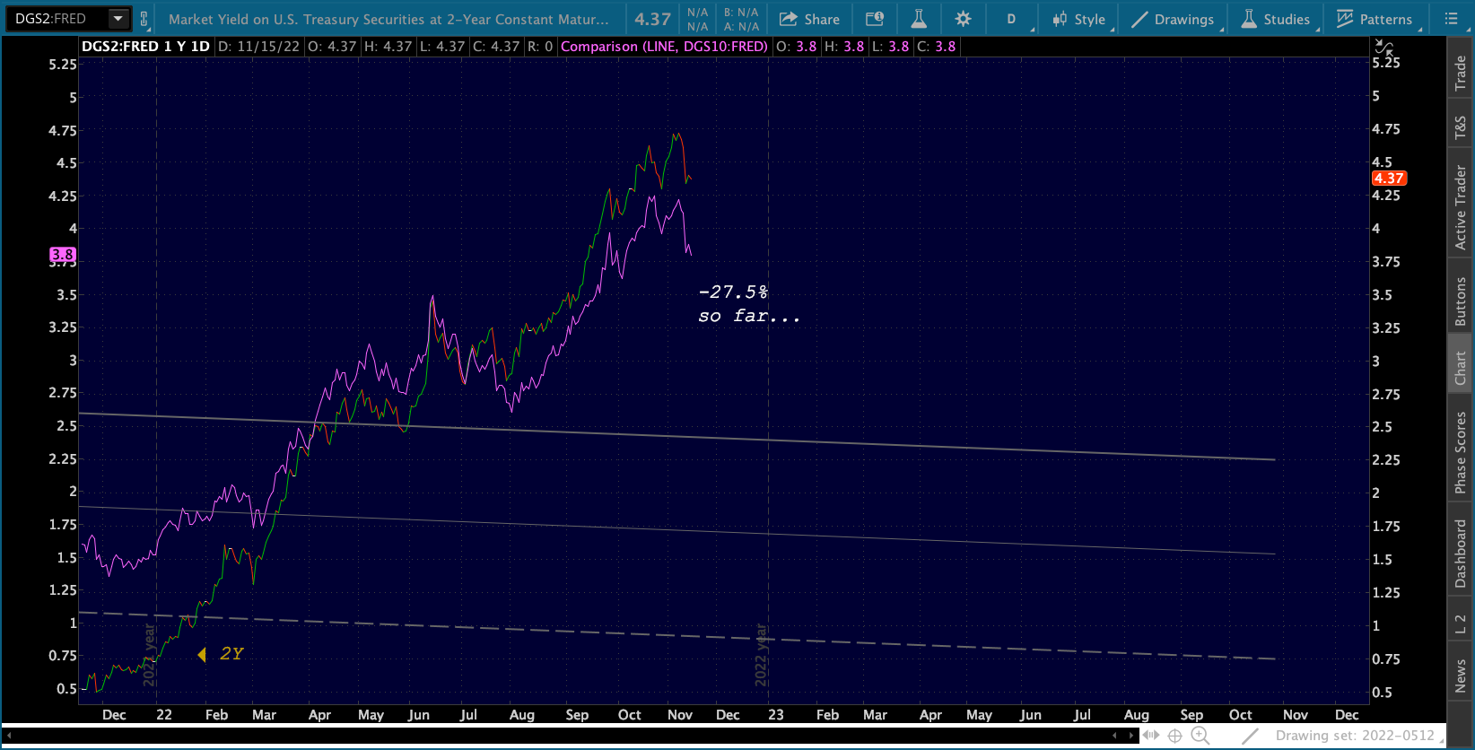 Not surprisingly, the 2s10s has gapped even wider as the 2Y continues to outpace the 10Y.