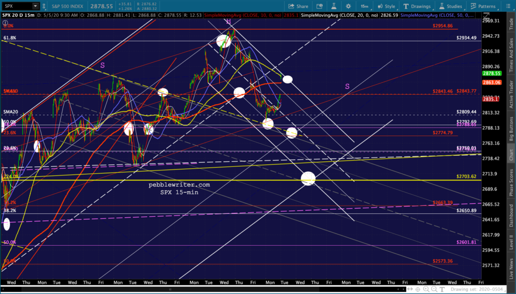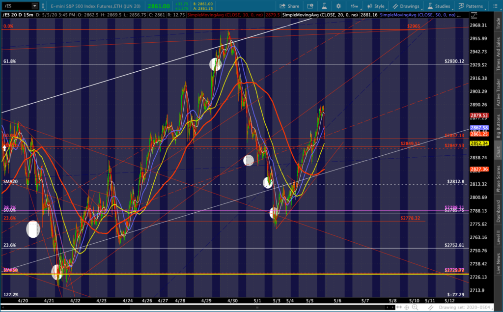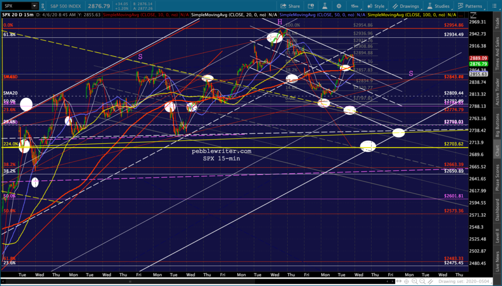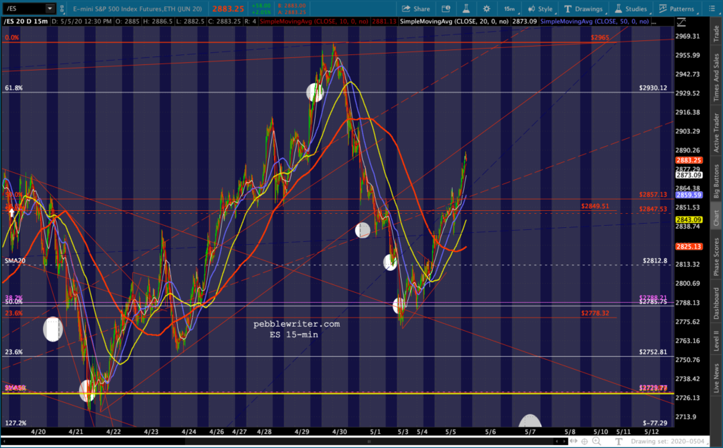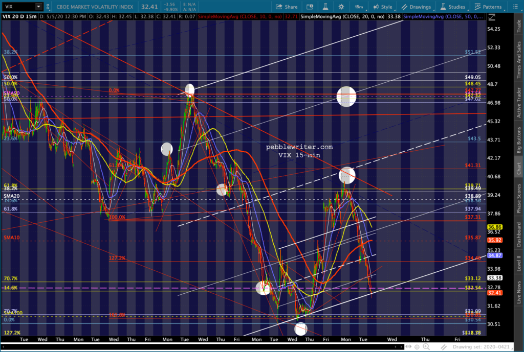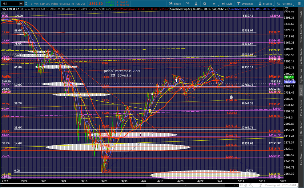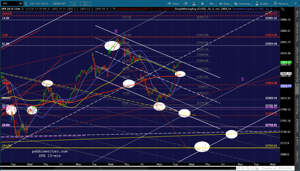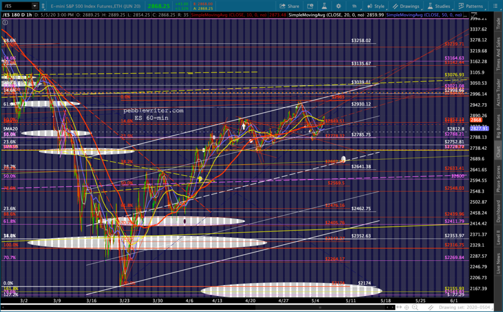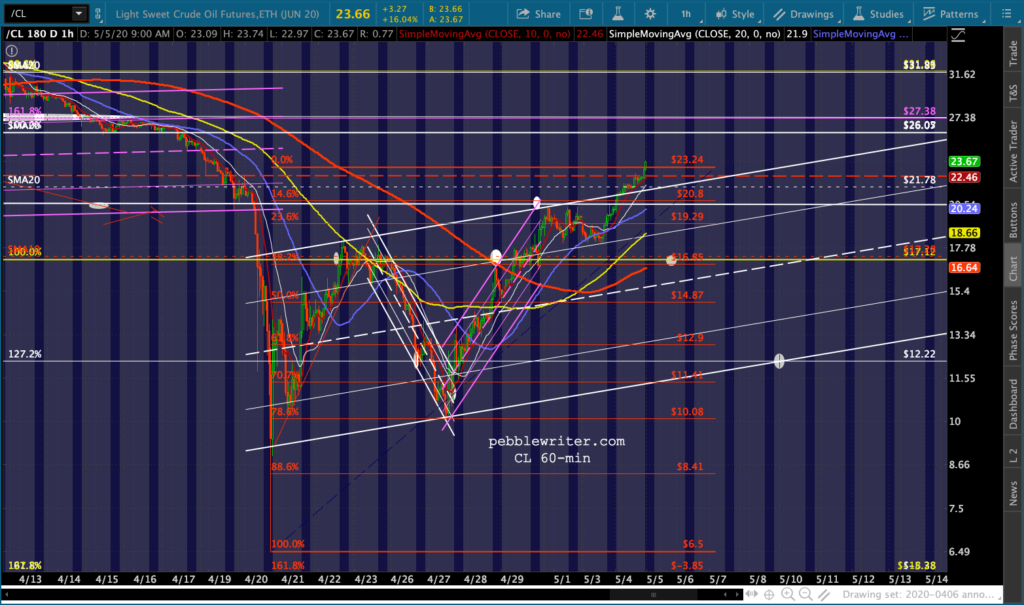 SPX and ES tagged our downside targets yesterday and proceeded to close at overhead resistance. Of course, that was before the overnight ramp got started. Now, with oil and gas breaking out in response to much of the country re-opening and VIX taking a larger than usual pre-market dive…