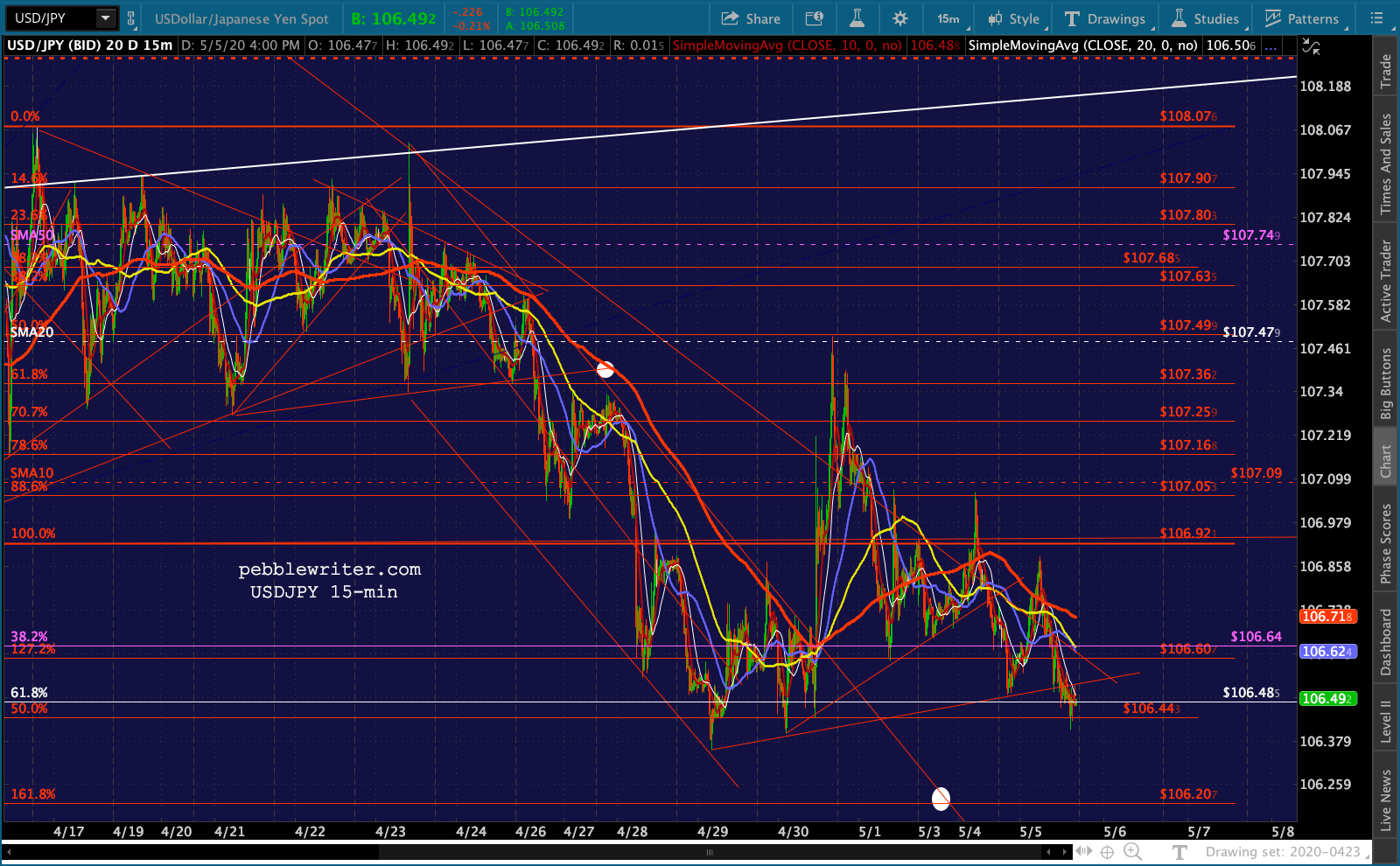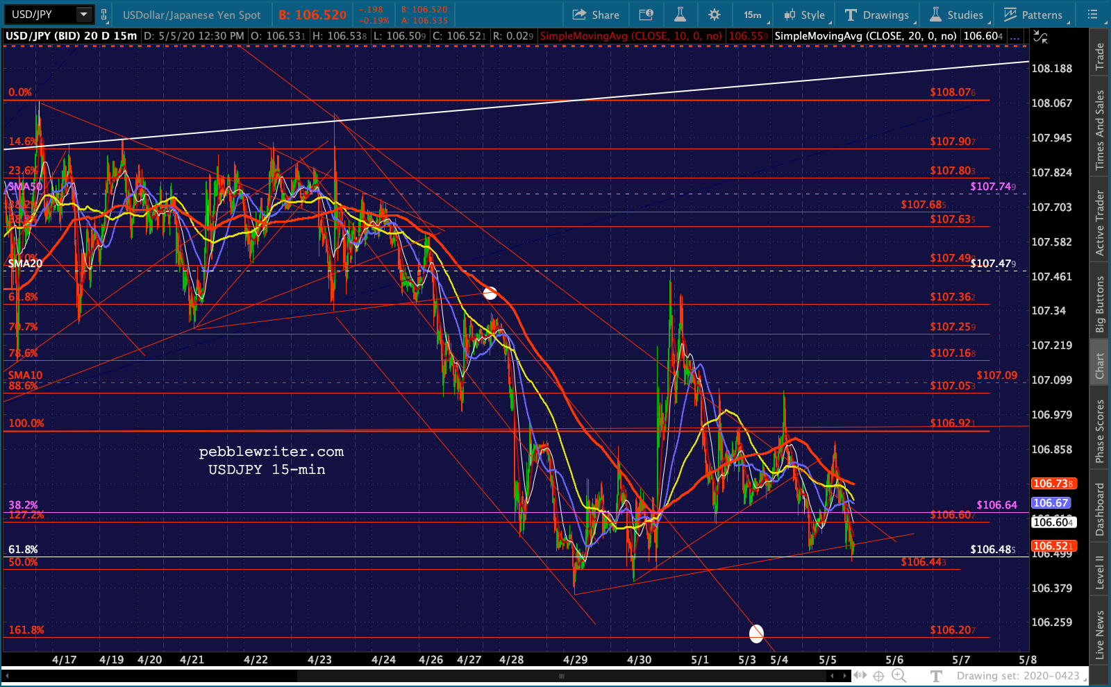 continued for members…ES is back above its SMA10, which is bullish. And, the SMA10 remains above the SMA20, also bullish.
