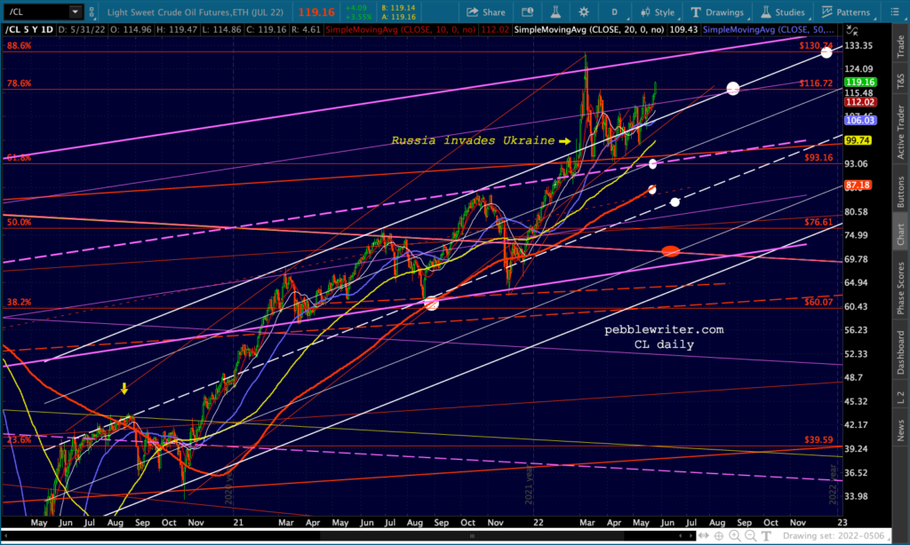 CL and RB are up sharply on the EU embargo of Russian oil.