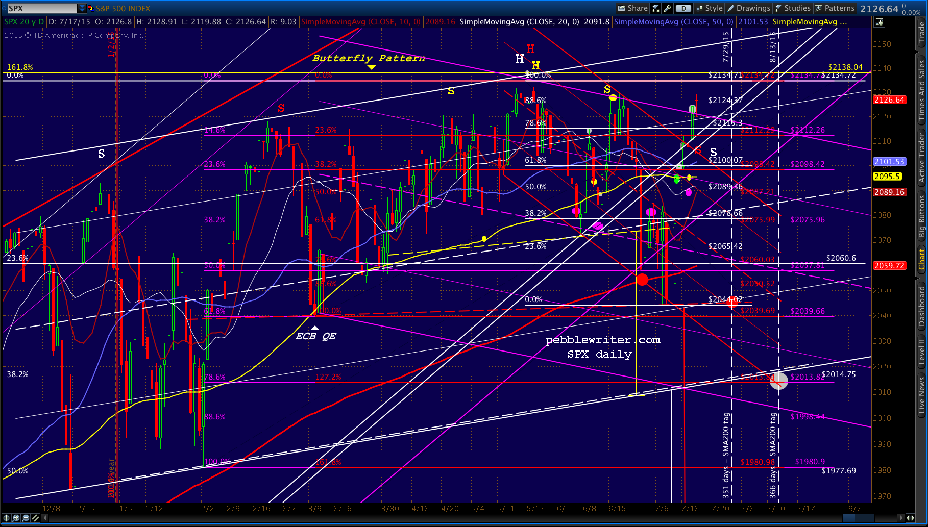 And, now, on to the analog. I assume USDJPY wasn’t allowed to reach 120.11 on Jul 8 because the SMA200 hadn’t yet reached that level. Now that USDJPY has bounced significantly higher, even breaking the red channel midline, a drop to 120.11 would presumably mean a blow to SPX.