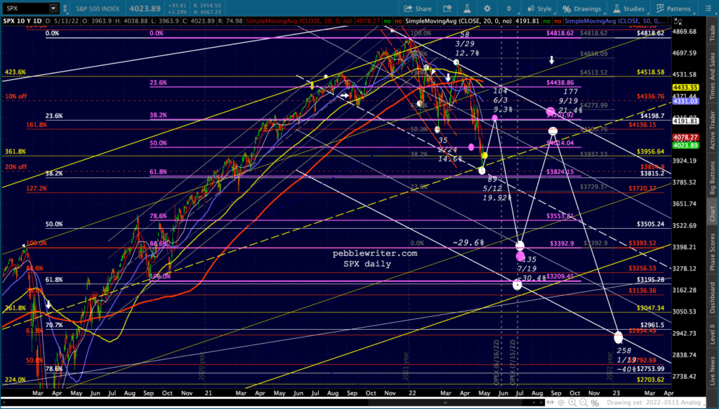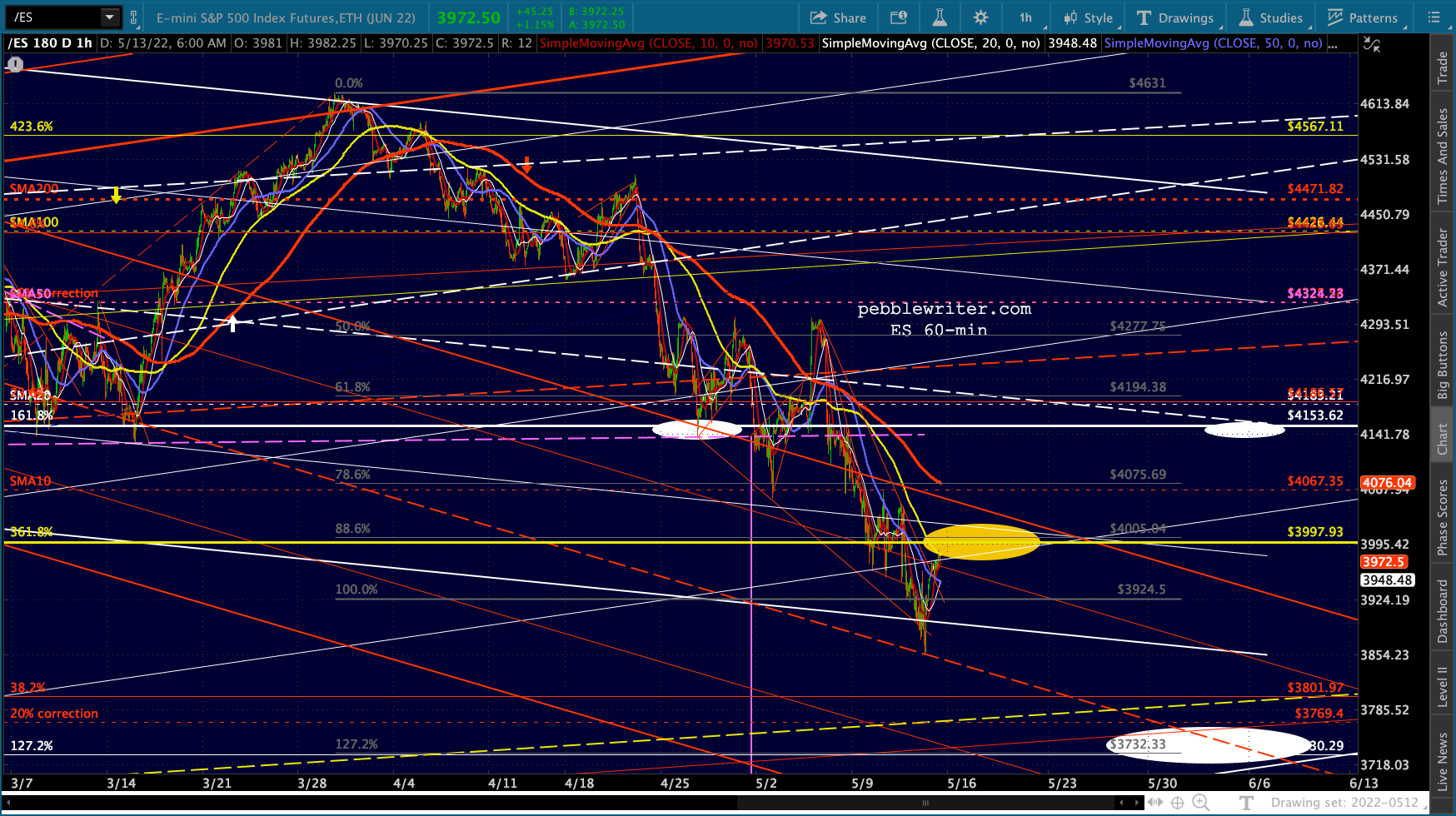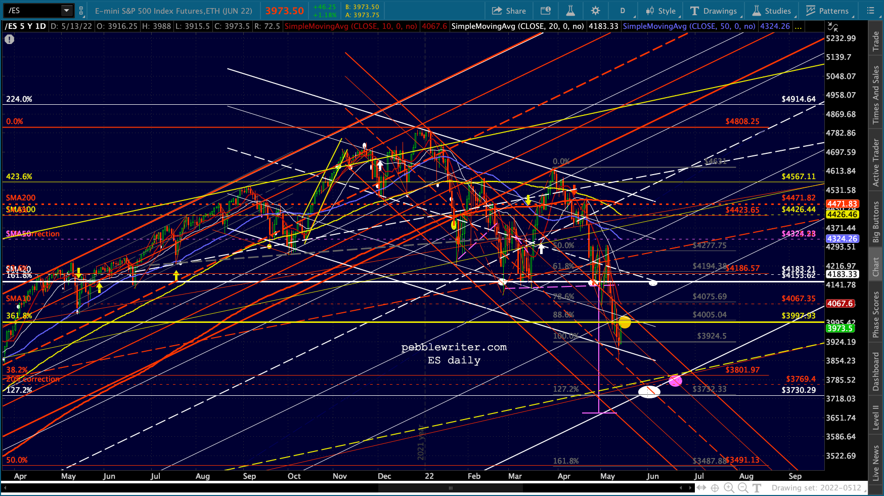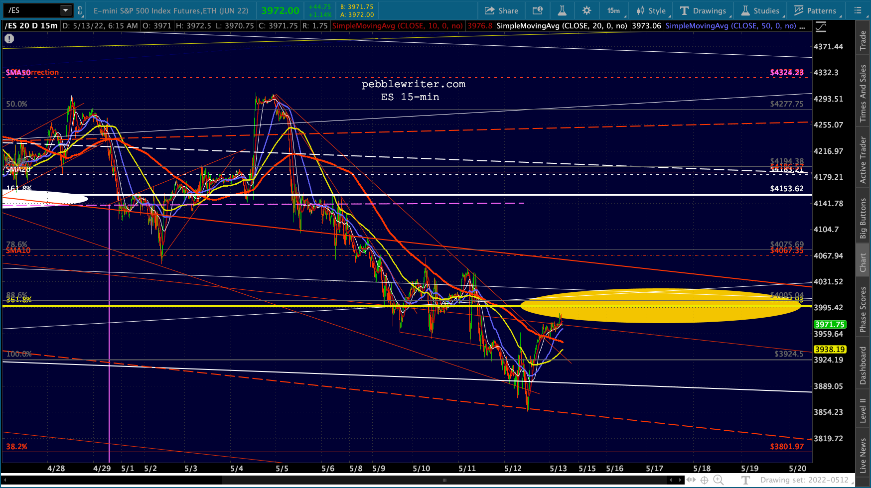 I like the way the day ended with SPX/ES both back above the 3.618. Should be some serious short covering going on which would accelerate as they rise above the SMA10 and SMA20.