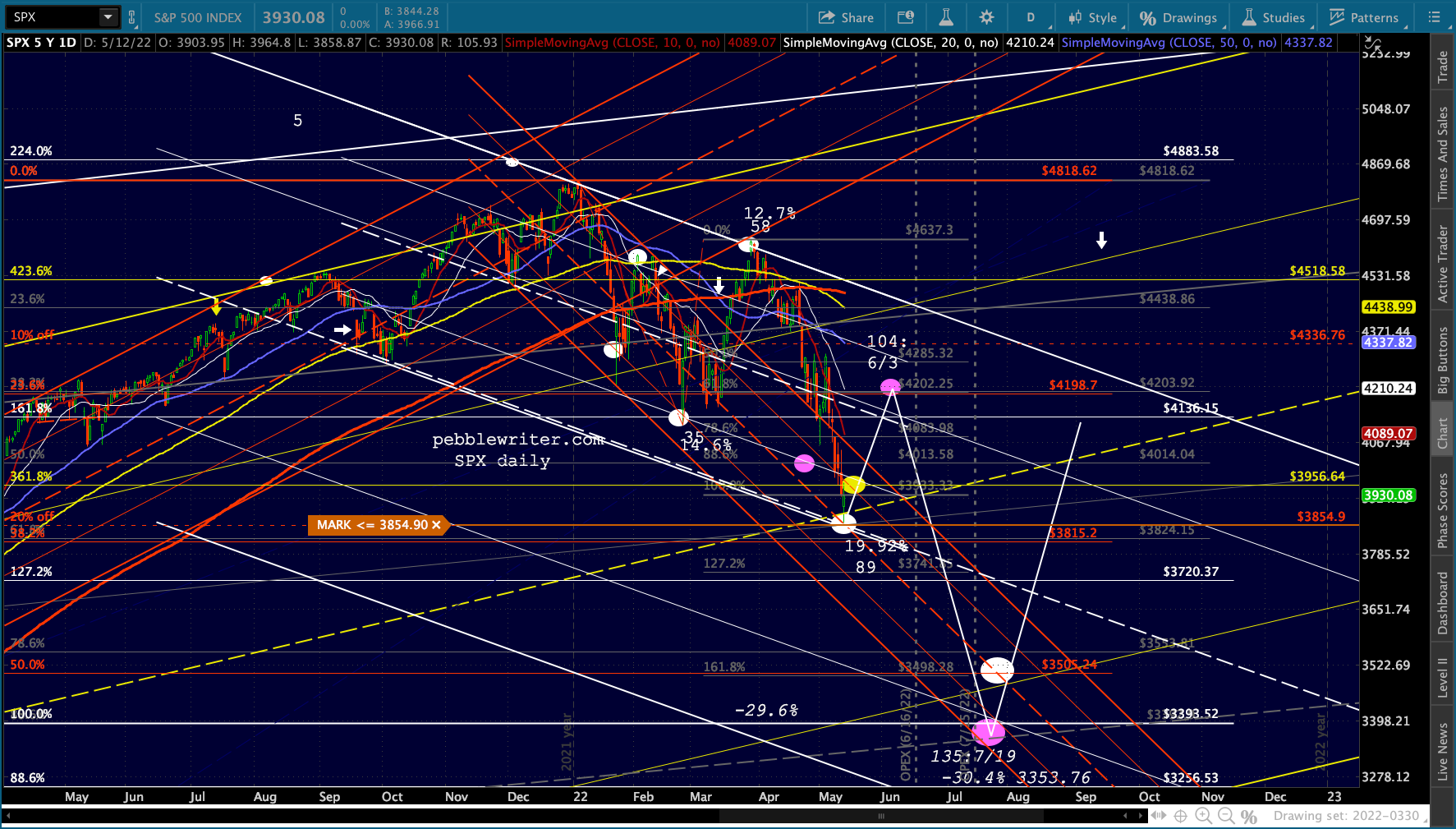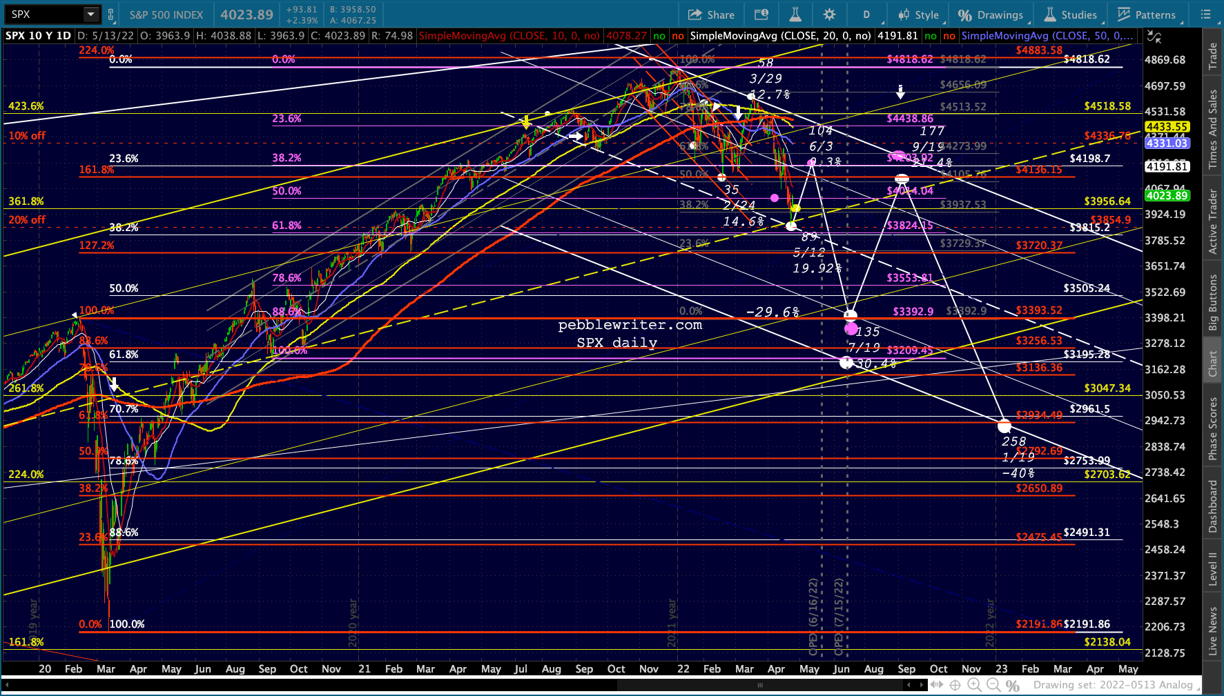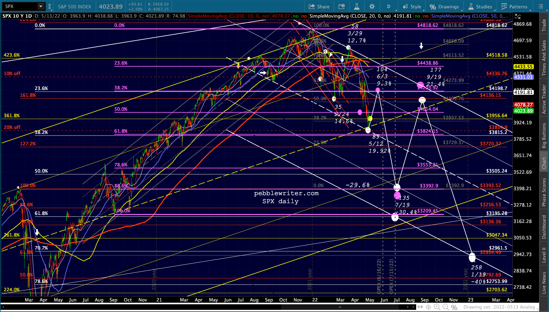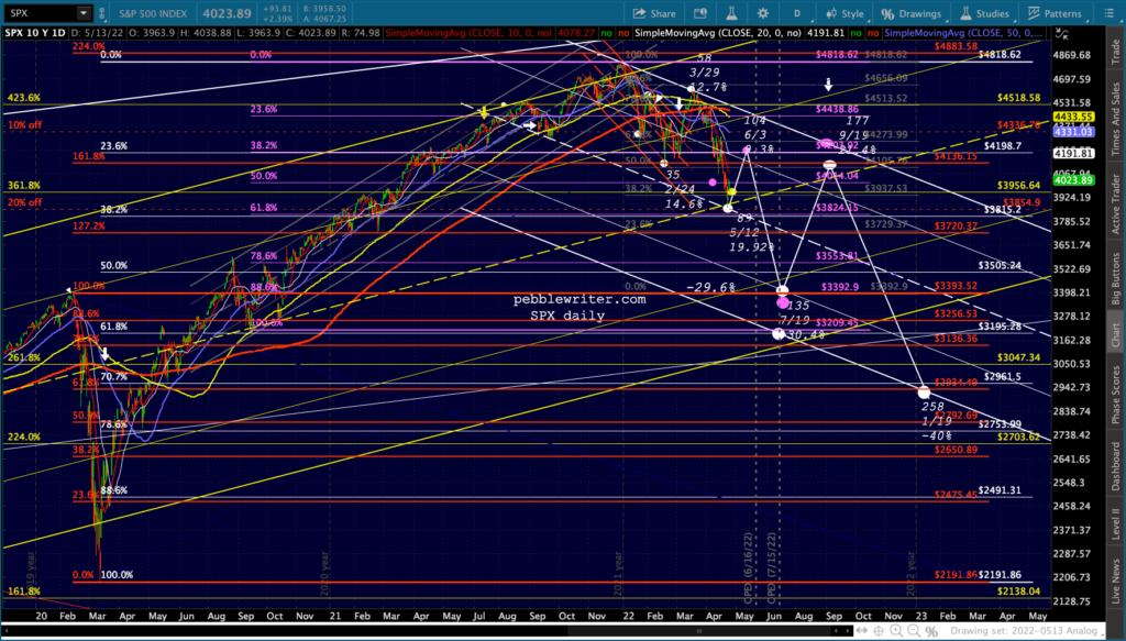 I like the way the day ended with SPX/ES both back above the 3.618. Should be some serious short covering going on which would accelerate as they rise above the SMA10 and SMA20.