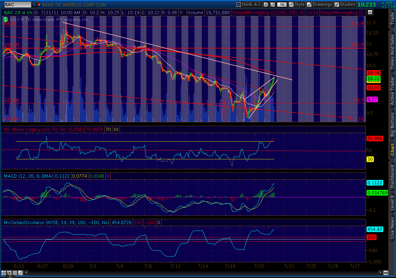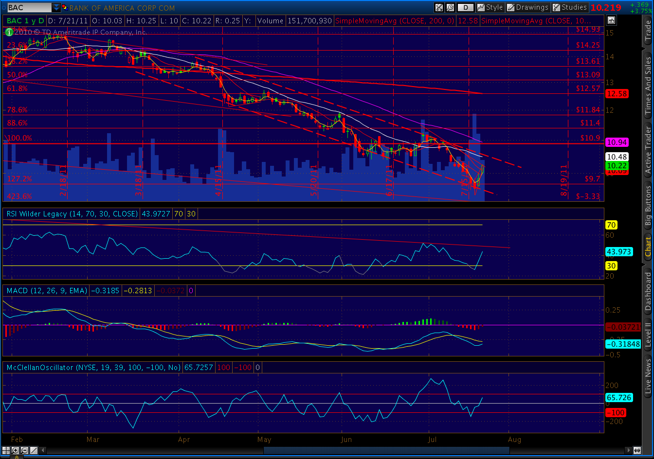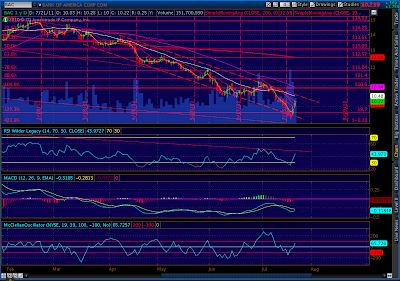 Just a little experiment here, to demonstrate how technical trading works. Bank of America, hailed as a screaming buy after losing only $8.8 billion in the latest quarter, is currently trading at about 10.24.