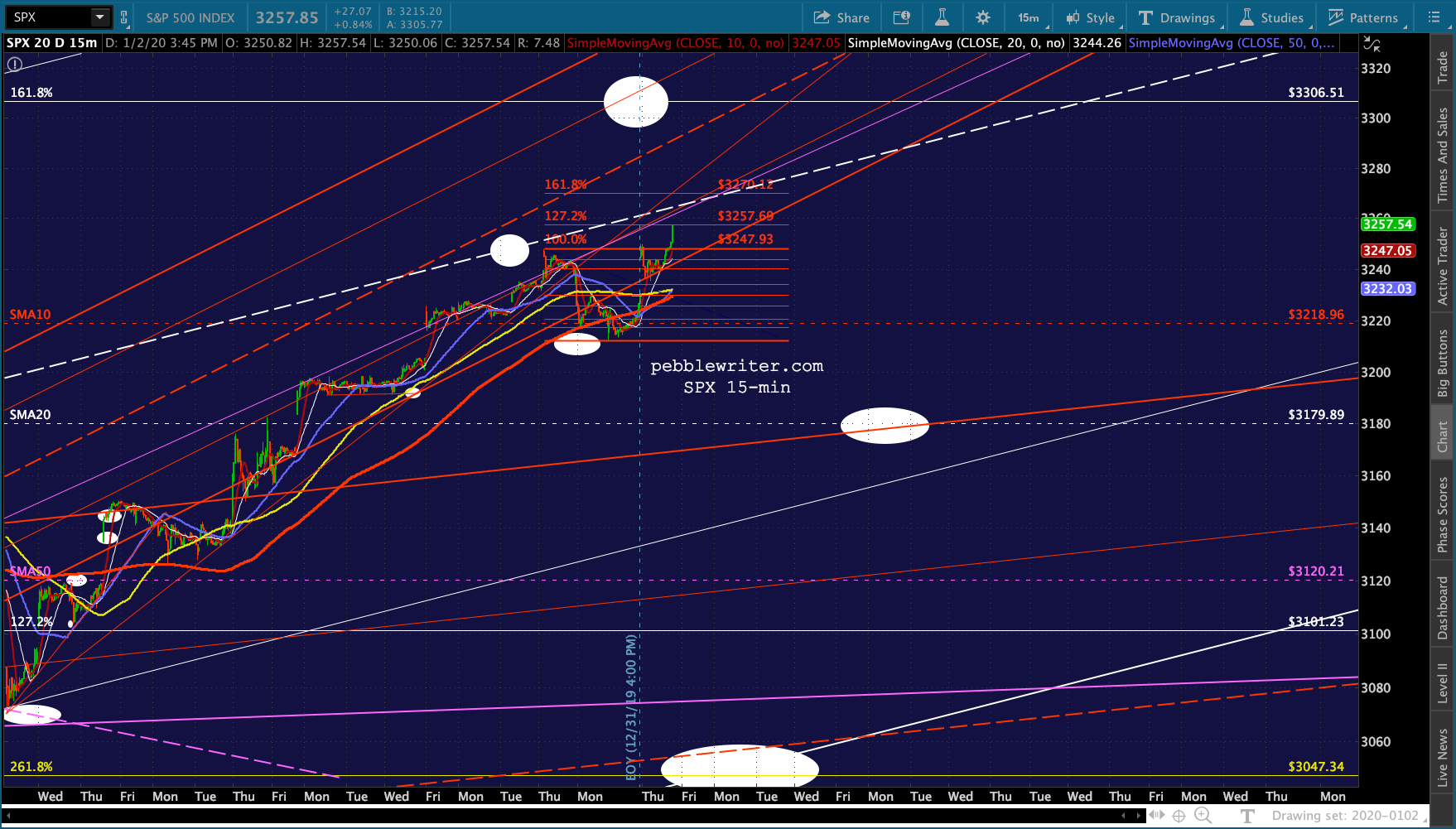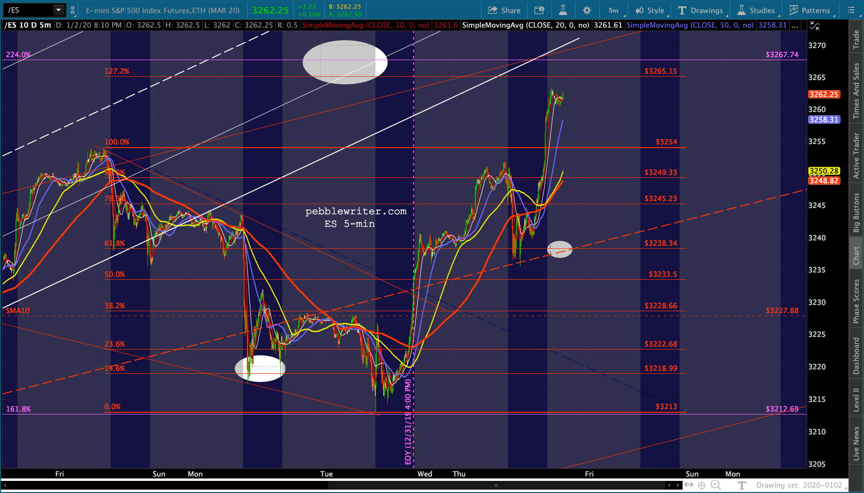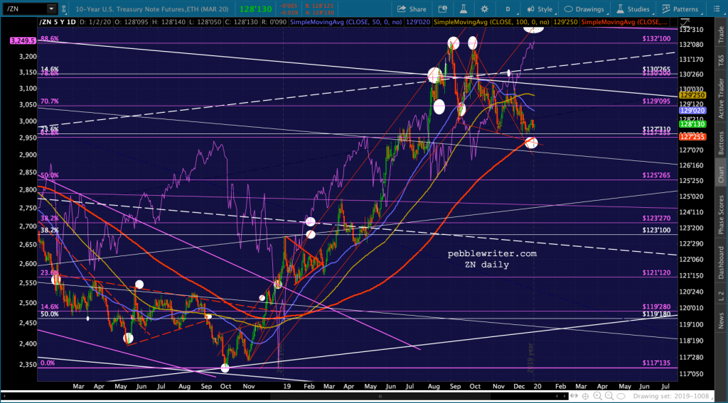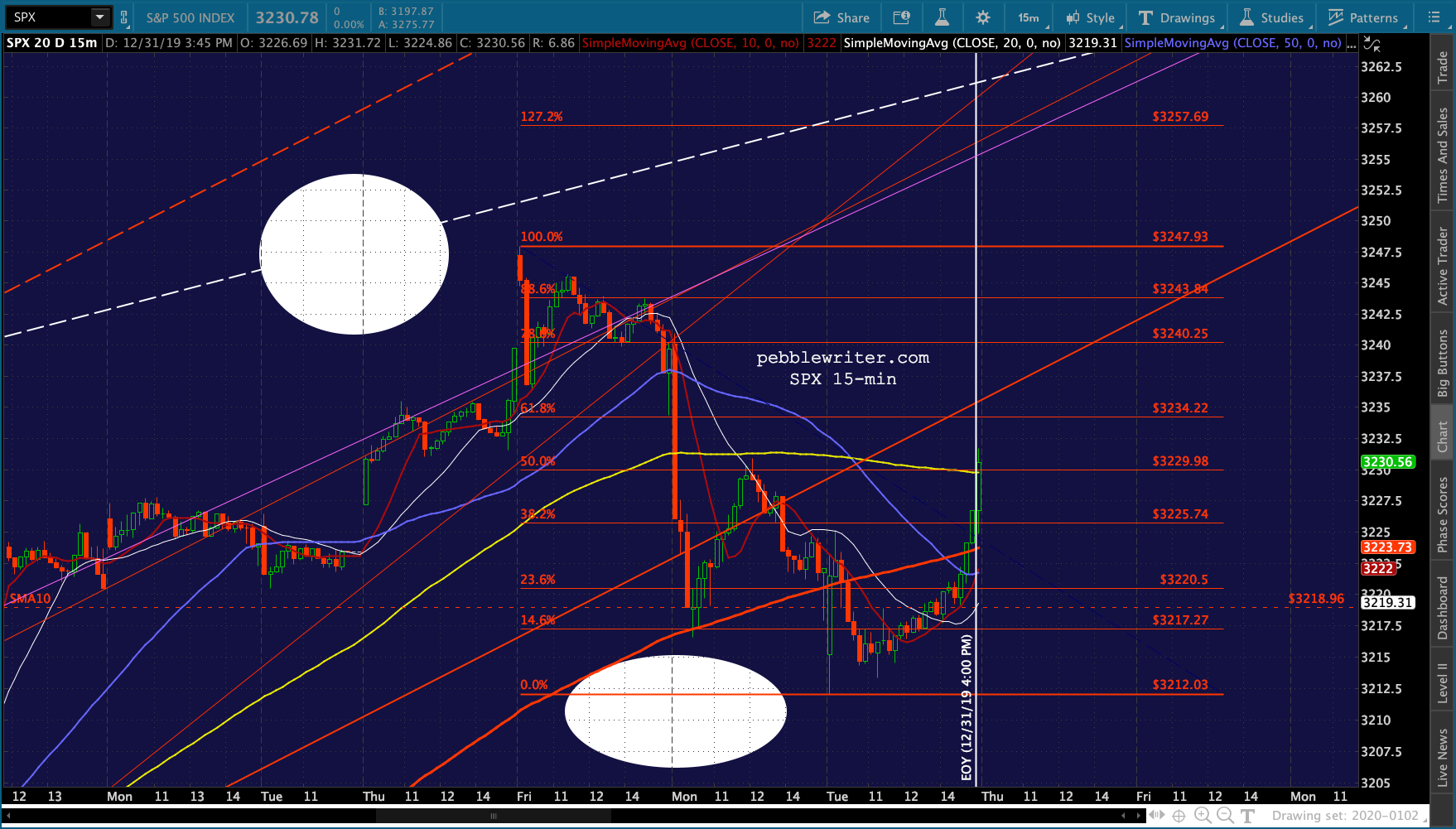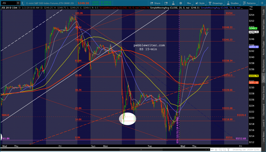 We got the test of the SMA200 we expected on Friday, and the subsequent very precise test of the red channel bottom from Nov 2017 at 8AM this morning. At this time, however, the key will be whether that little red TL from the overnight lows can hold.