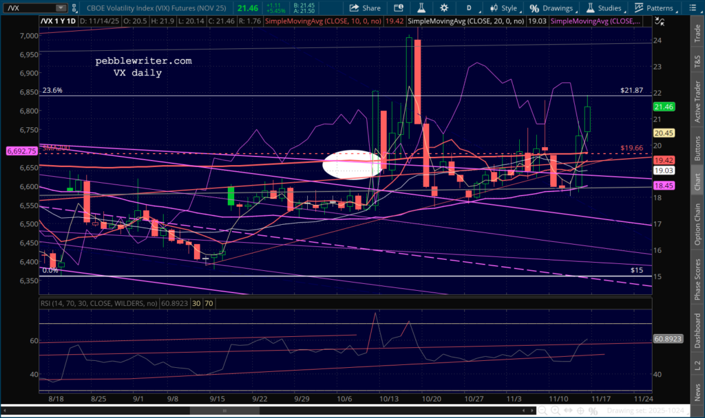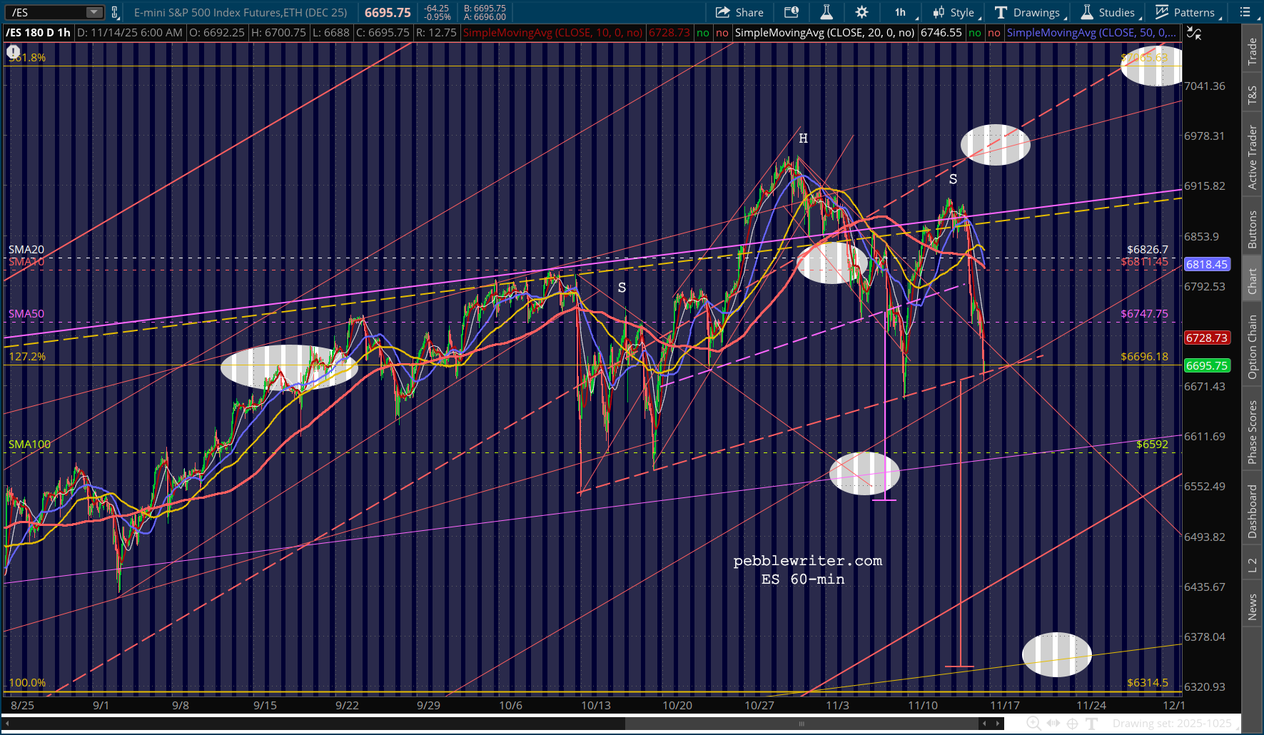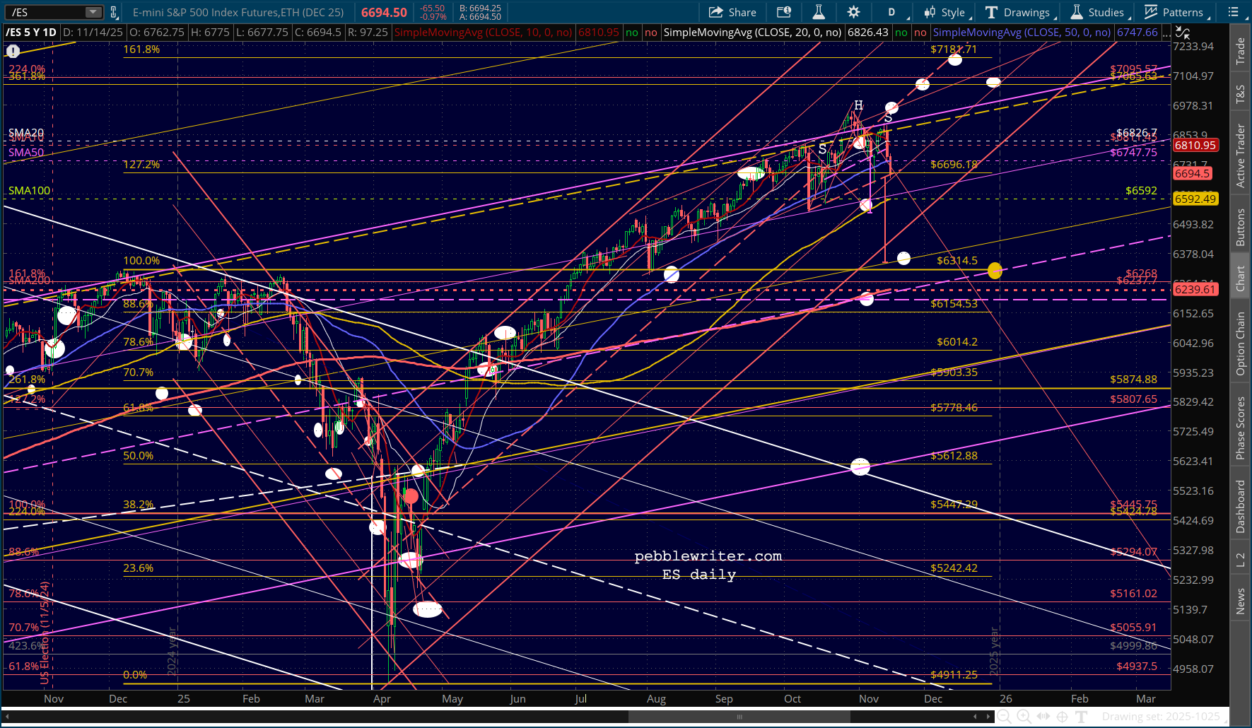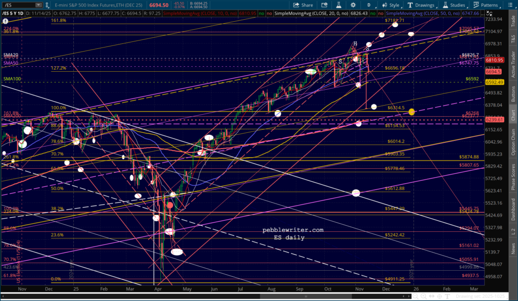 If you’re a trader, working for The Powers That Be, you really, really want to avoid ES breaking below the red neckline because the H&S pattern targets 6345ish (but probably 6314 since that’s the old high that could use a backtest.)