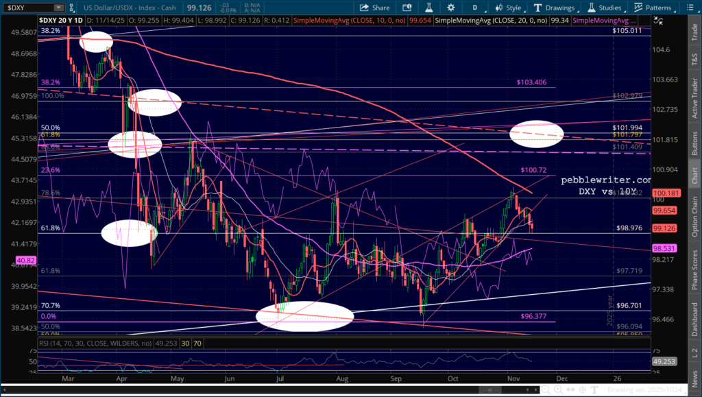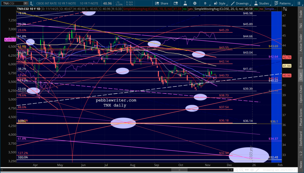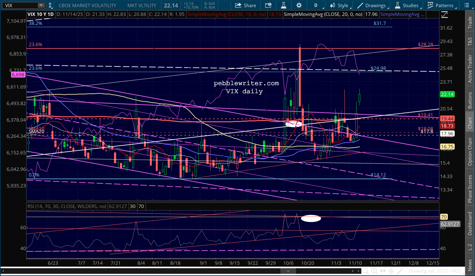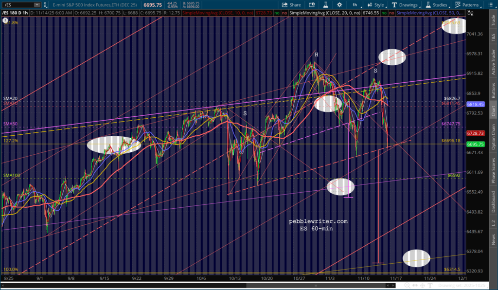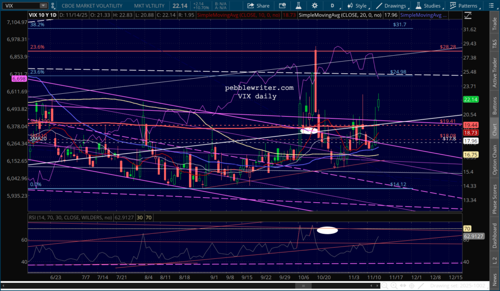 If you’re a trader, working for The Powers That Be, you really, really want to avoid ES breaking below the red neckline because the H&S pattern targets 6345ish (but probably 6314 since that’s the old high that could use a backtest.)