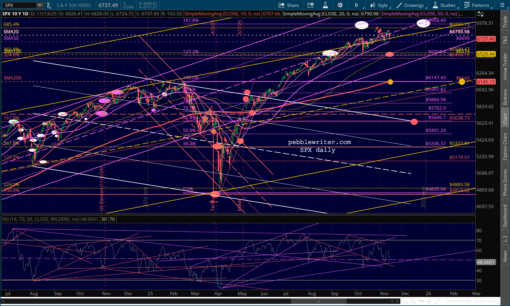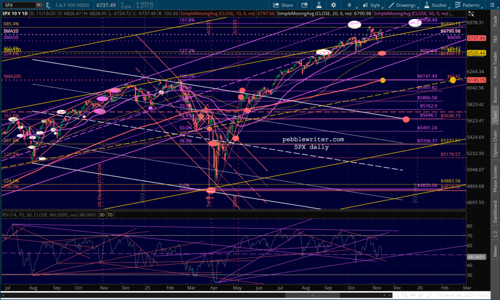 The market failed the first test, the smaller Head & Shoulder Pattern at 6800 that pointed to 6535. Now, it’s getting a shot at the larger one that points much lower.