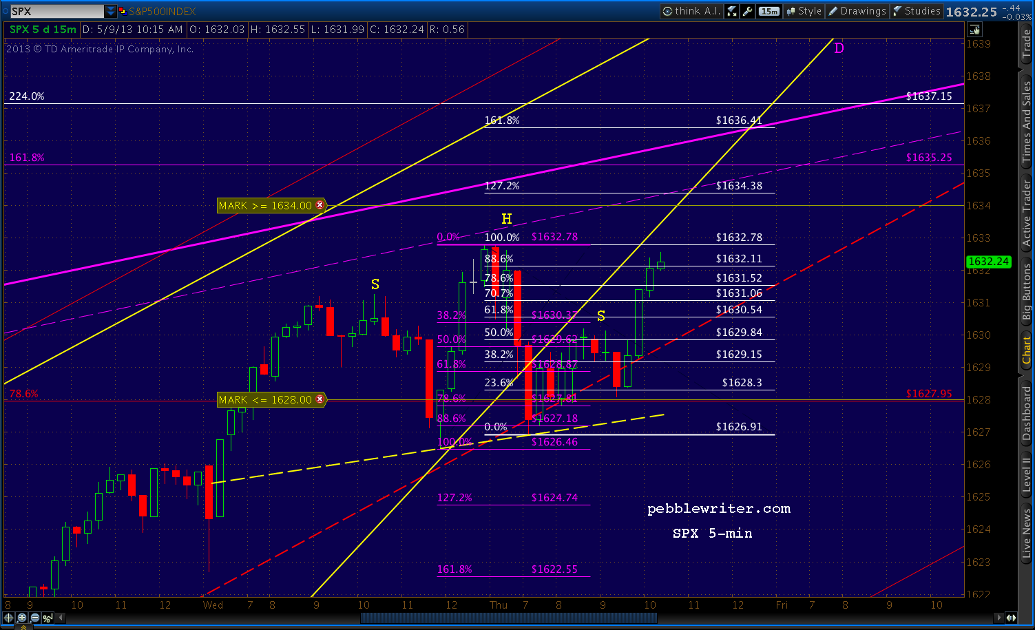 I’ll play an interim short position here just for grins, keeping the long position in place. Stops at 1635 for the short. I’d say there’s maybe a 10% chance that 1635.01 was the top.