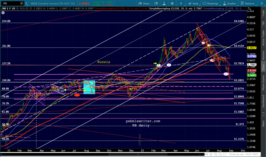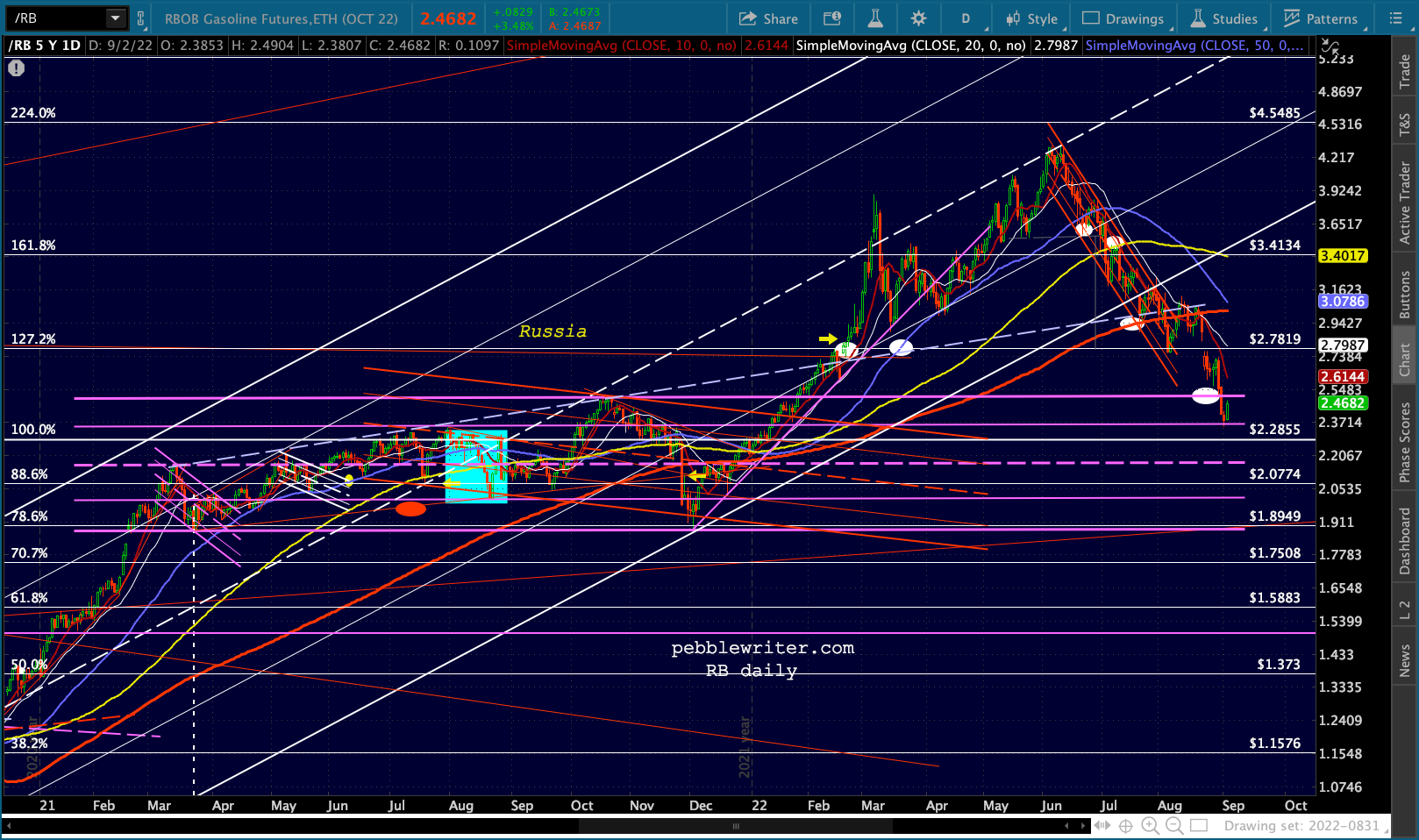 RB is bouncing off nothing, with additional downside if, as I suspect, it intends to backtest the 2018 highs at 2.2855.