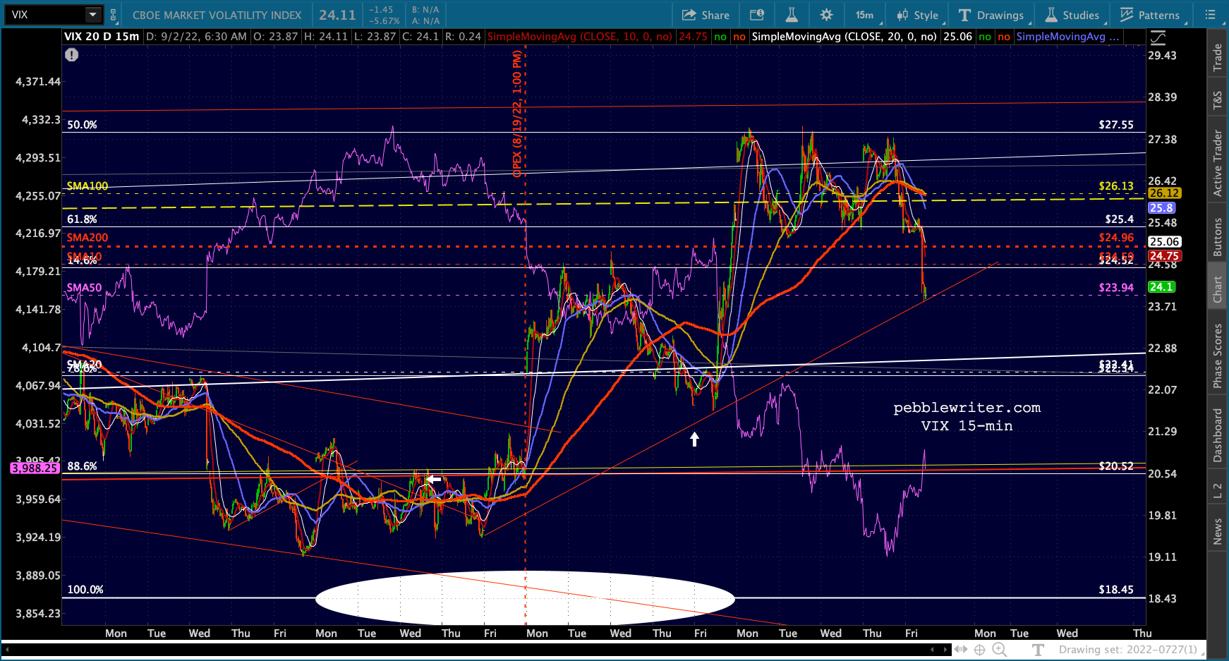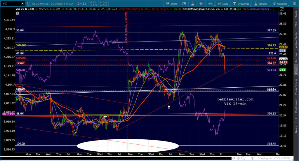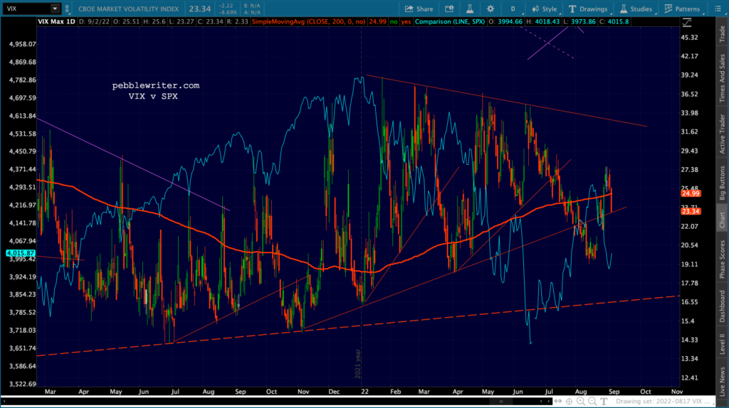 This last chart is a perfect representation of where we are in the markets. Having broken back above the TL from last November, VIX is testing it over again. Will it hold? The odds are very strong we won’t know until Tuesday – meaning traders on either side will have to brave the usual very high risk 3-day weekend.
