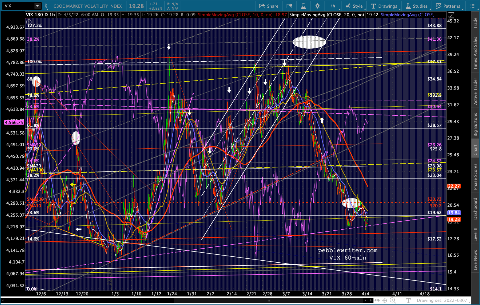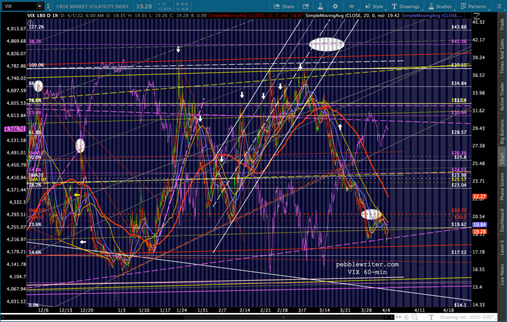 The day ended with a breakdown, but VIX has managed to bump slightly higher off that breakdown and is back above the purple trend line as we approach the open.