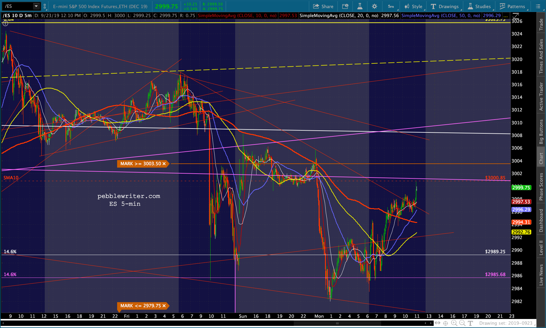 …at the exact same moment that SPX and ES reached their red TLs from Friday. Both are now backtesting their SMA10s.