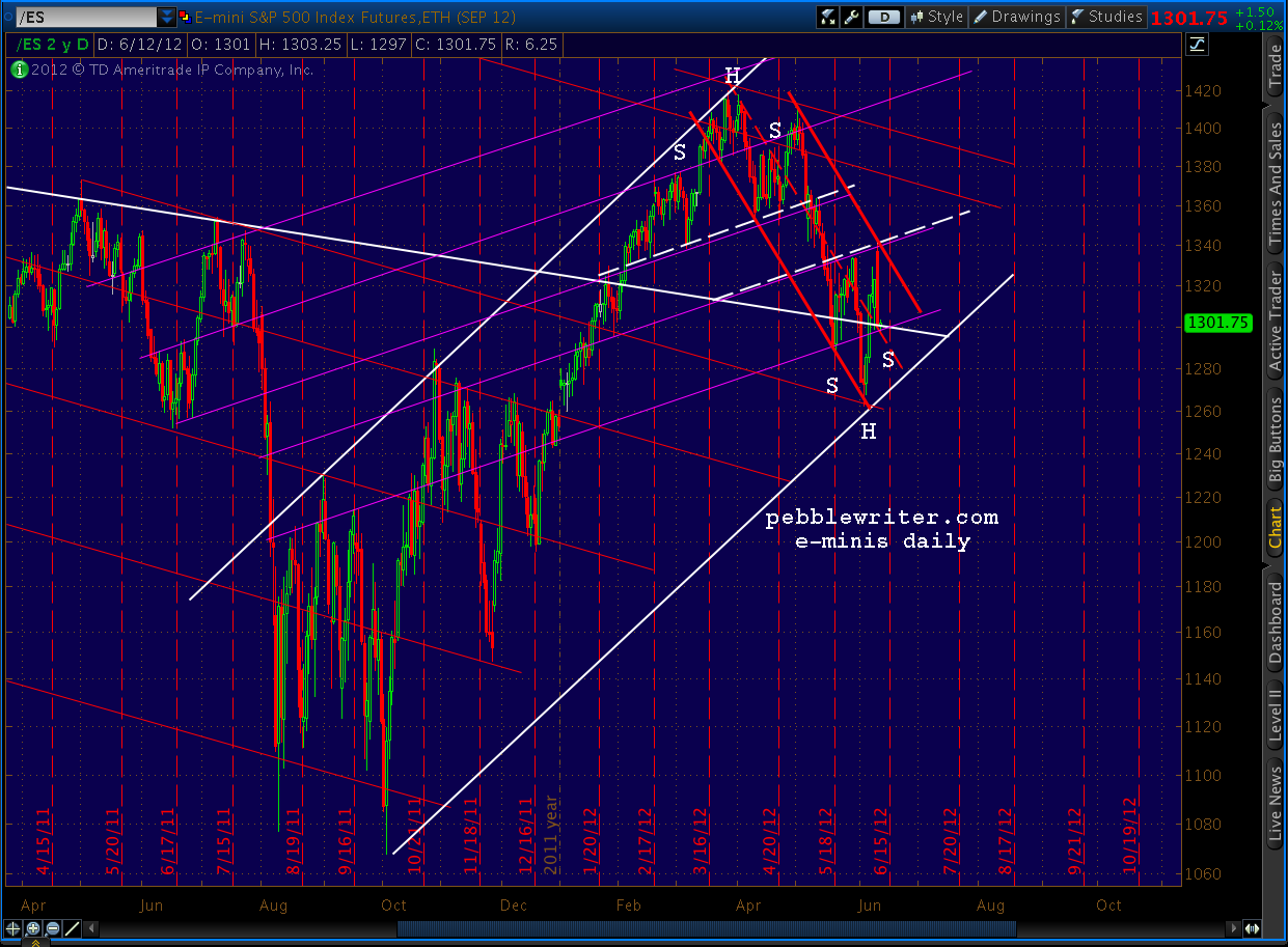 Although we got to the right trade in time, it was the result of a great deal of brain-racking and teeth-gnashing. Had I bothered to look at the emini’s, the decision would have taken all of five seconds.