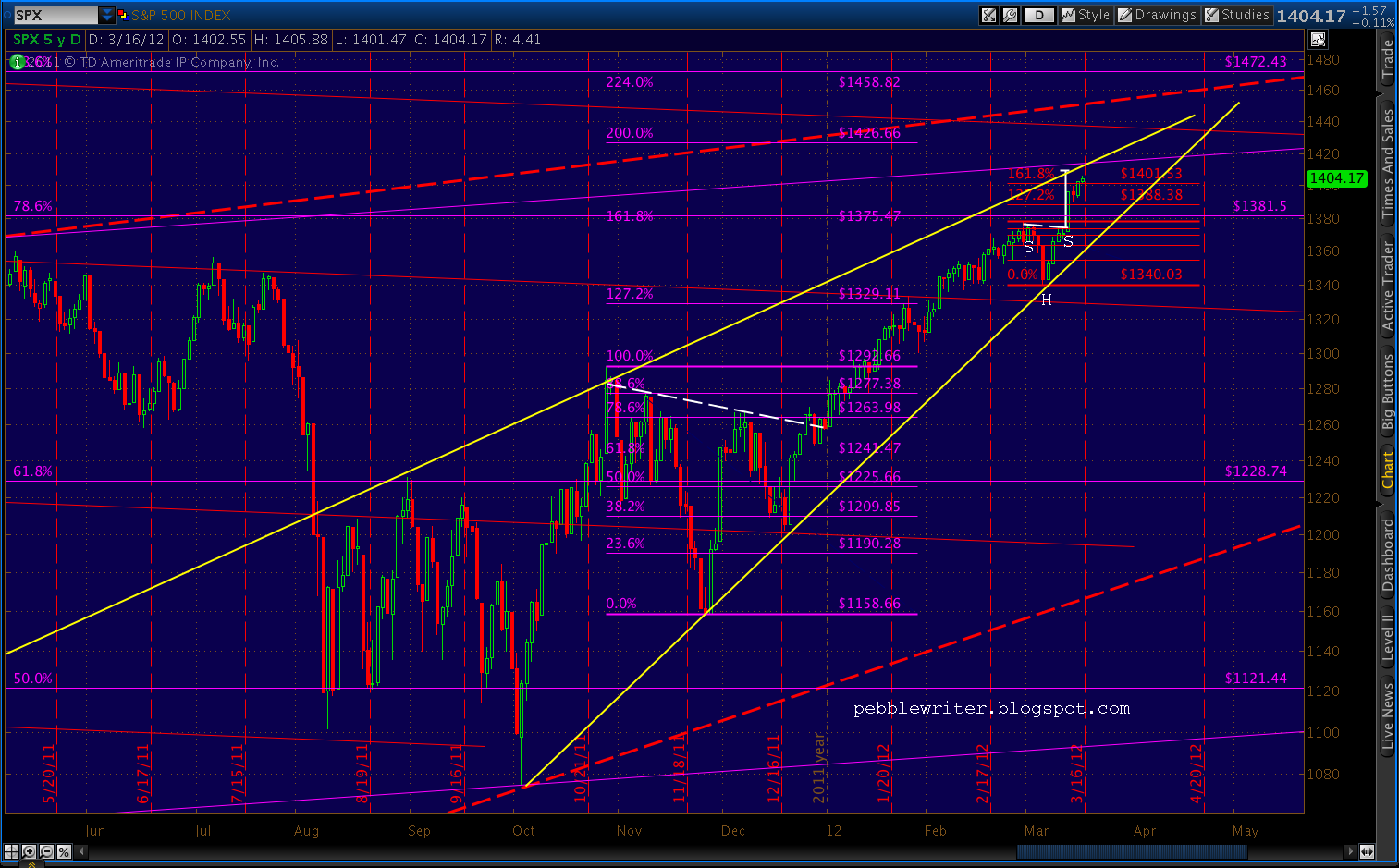 All this leads me to believe we’re likely to see a reaction in the next few days, a decent-sized drop down to 1380 or so, followed by one last ramp up to the 1450-1470 area. If I’m wrong, and we see a larger drop here, things could get ugly in a hurry.