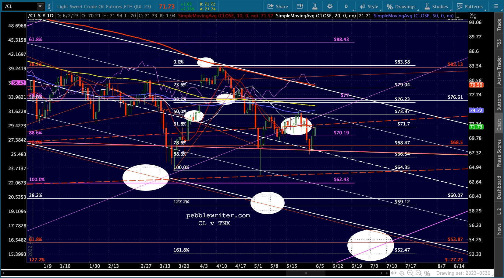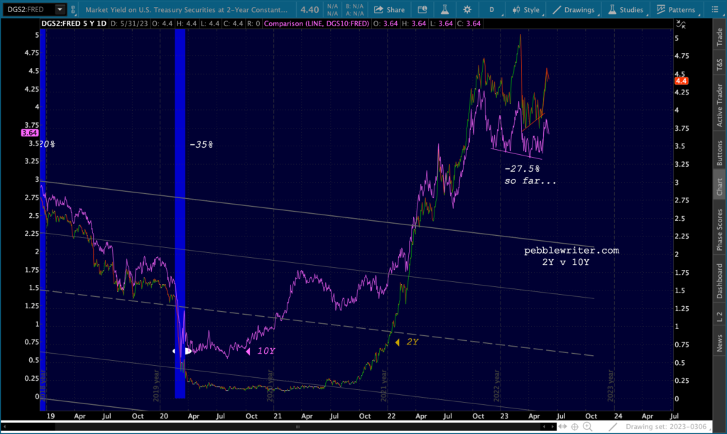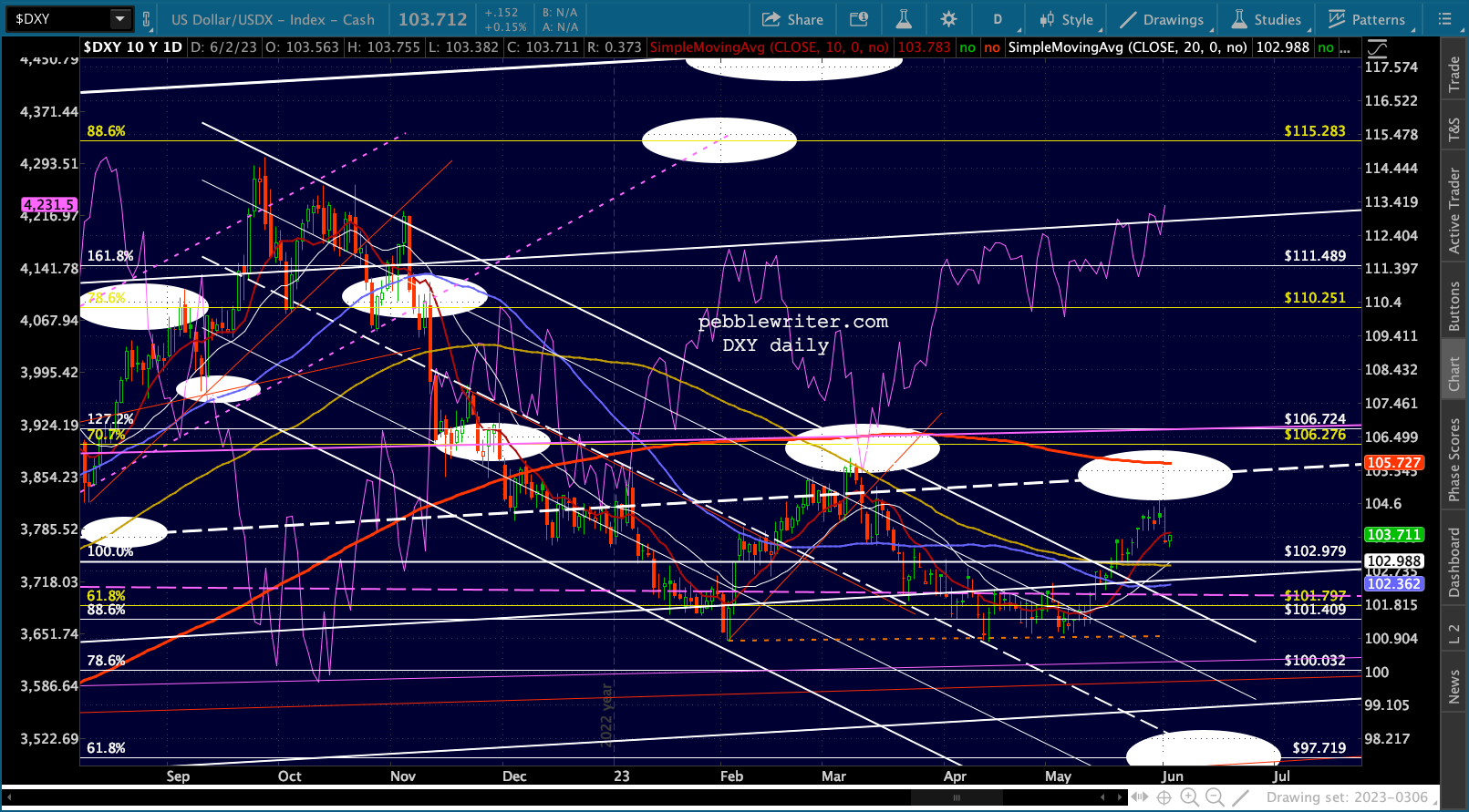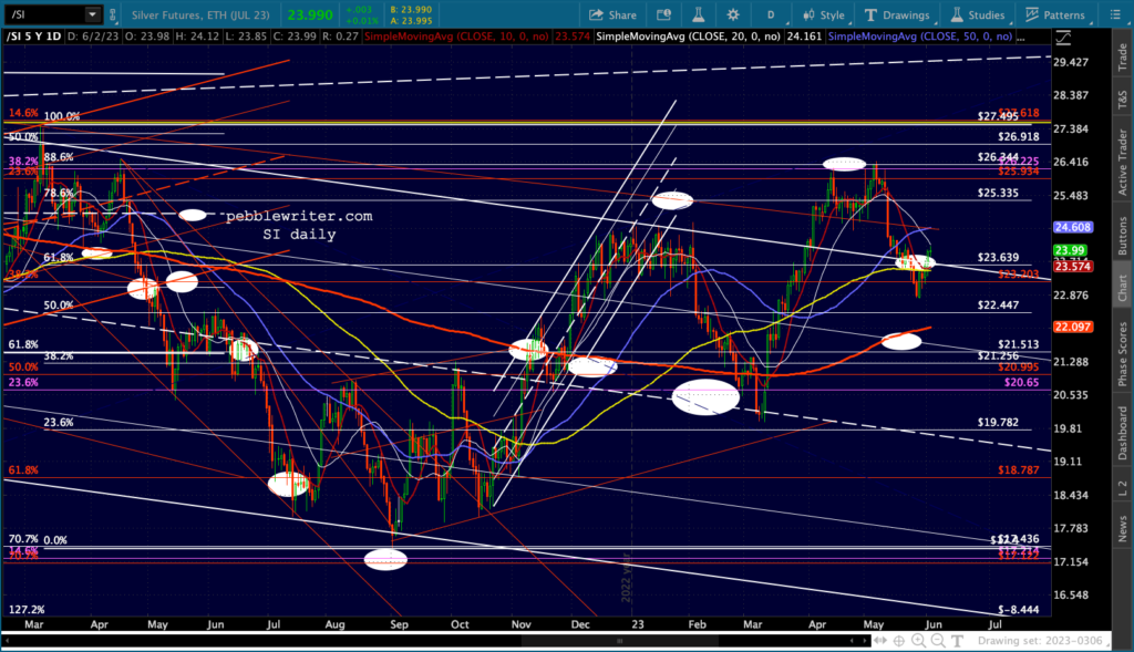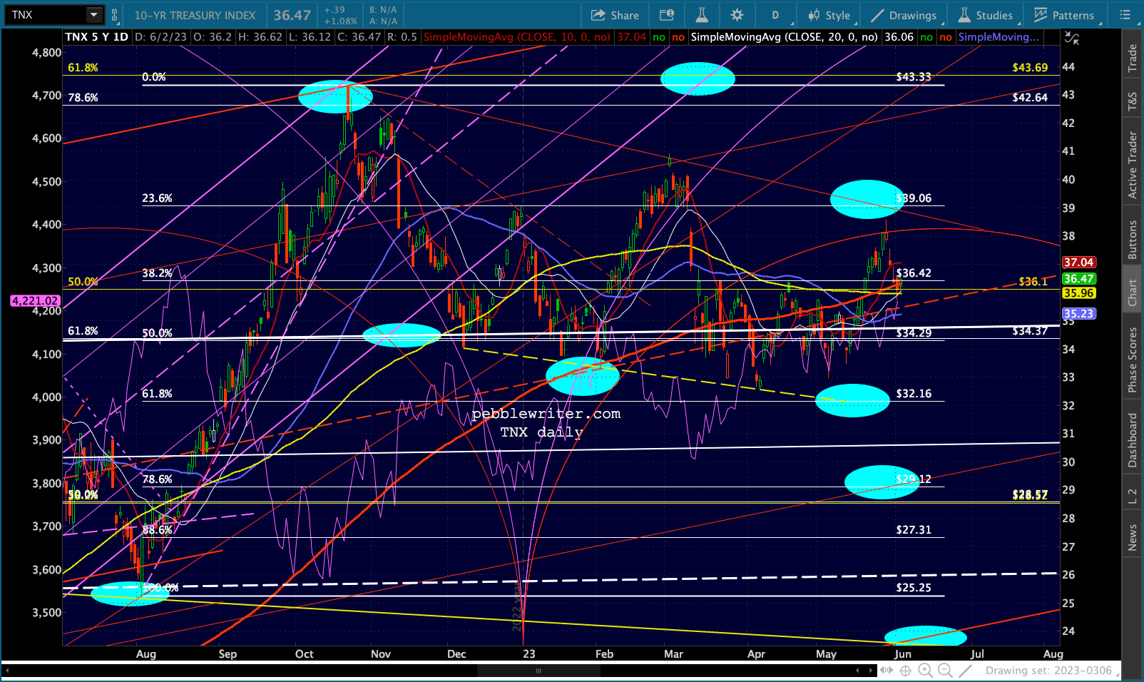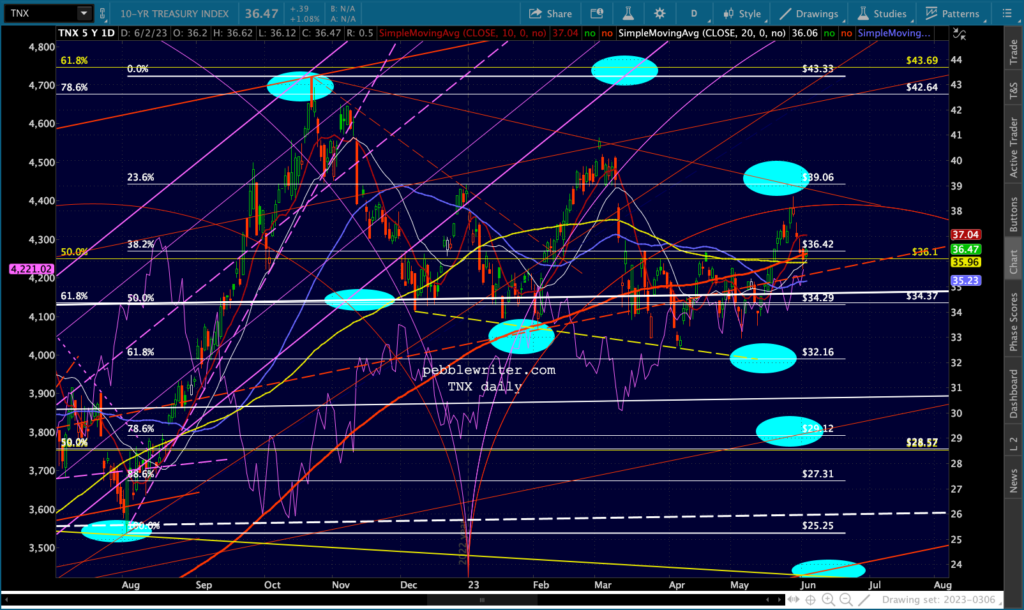 With the VIX-induced breakout above the green .886 retracements, we have to look at the white .618 target as the next most meaningful resistance. I’ve revised both SPX and ES to reflect this scenario.