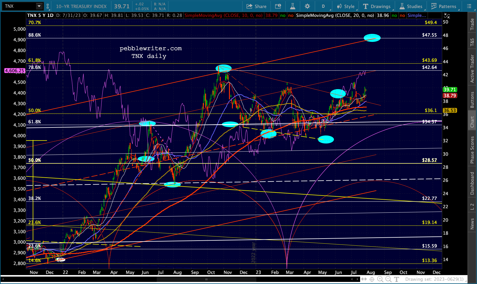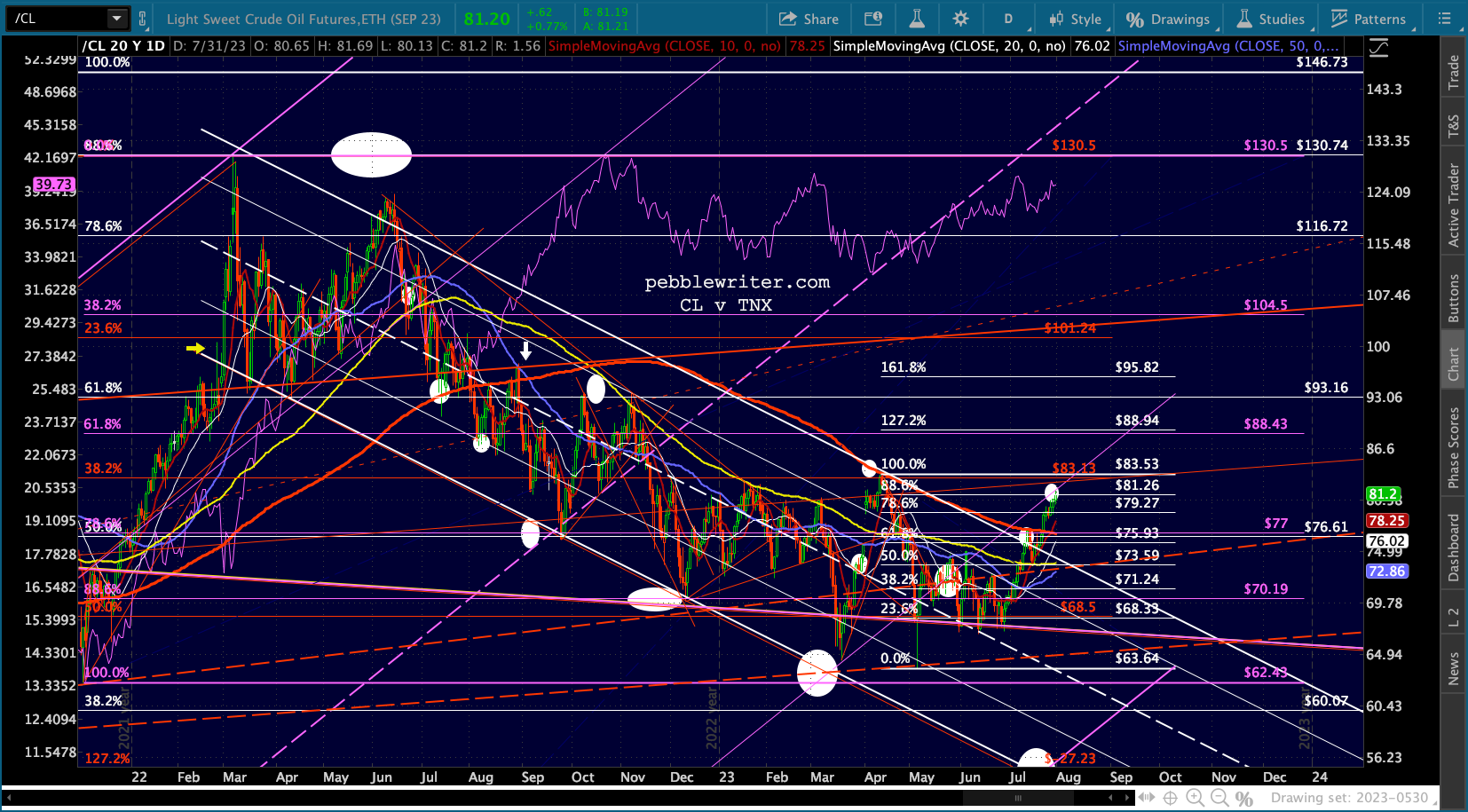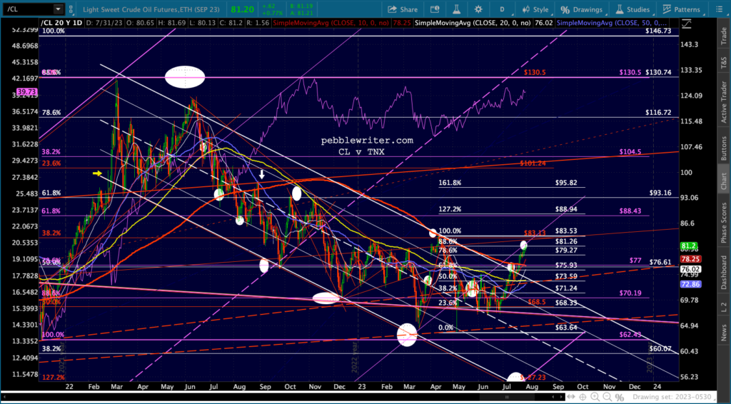 I expect CL and RB to run out of steam here, though TNX probably has more upside.