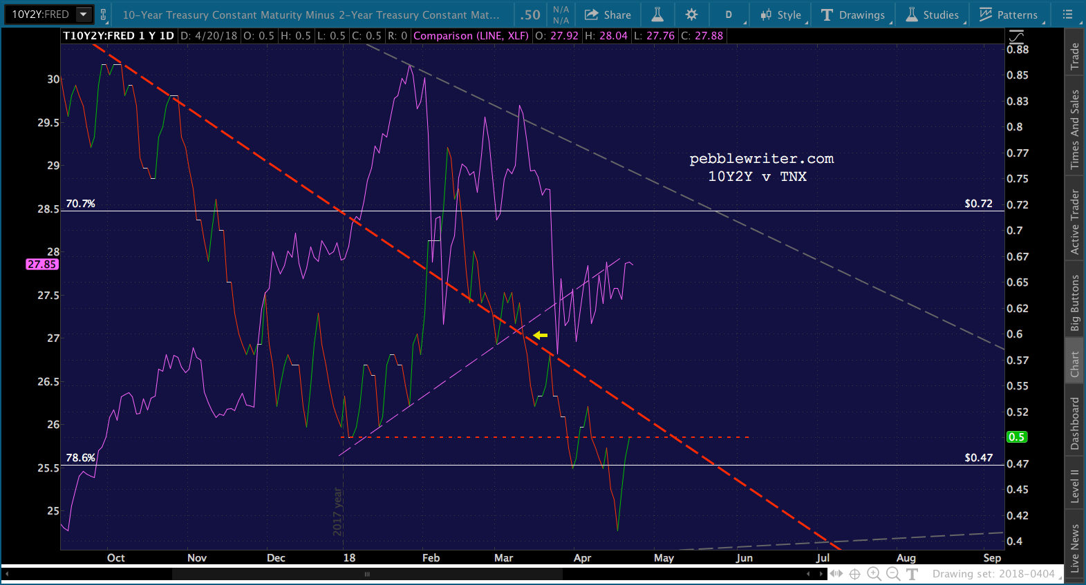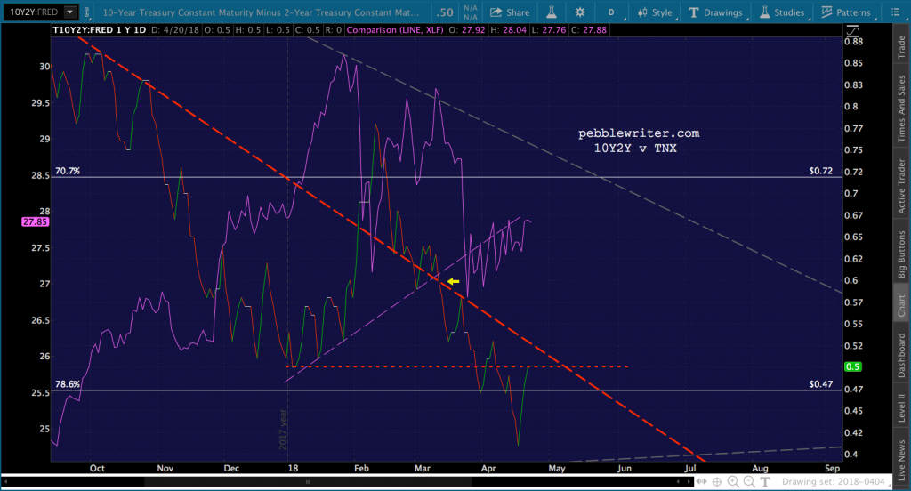 …while VIX has established a little flag pattern that could break either way. Between the two of them, we should know whether today is the day.