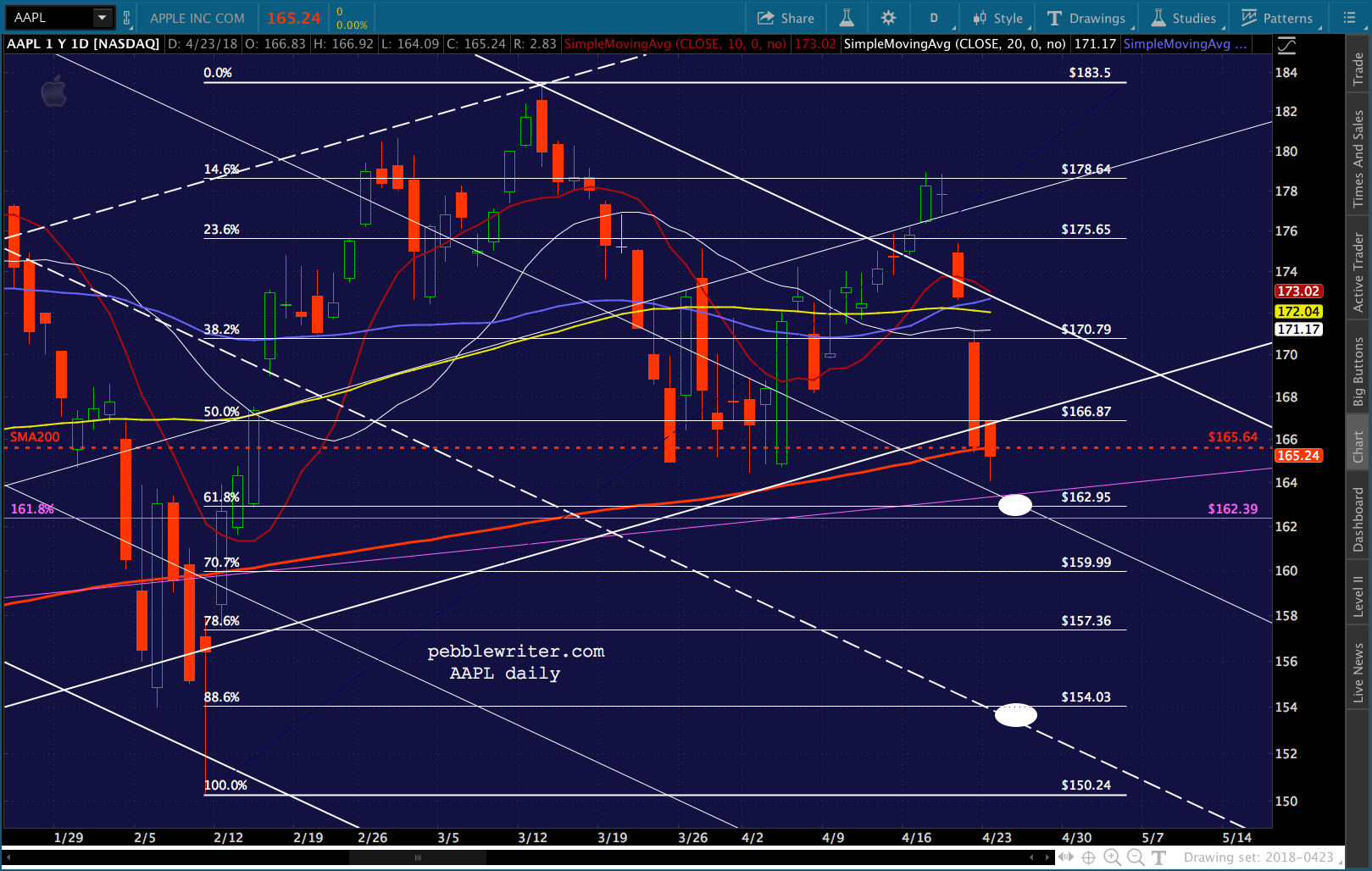 The two critical charts to watch today: AAPL and VIX. AAPL is flirting with its SMA200…