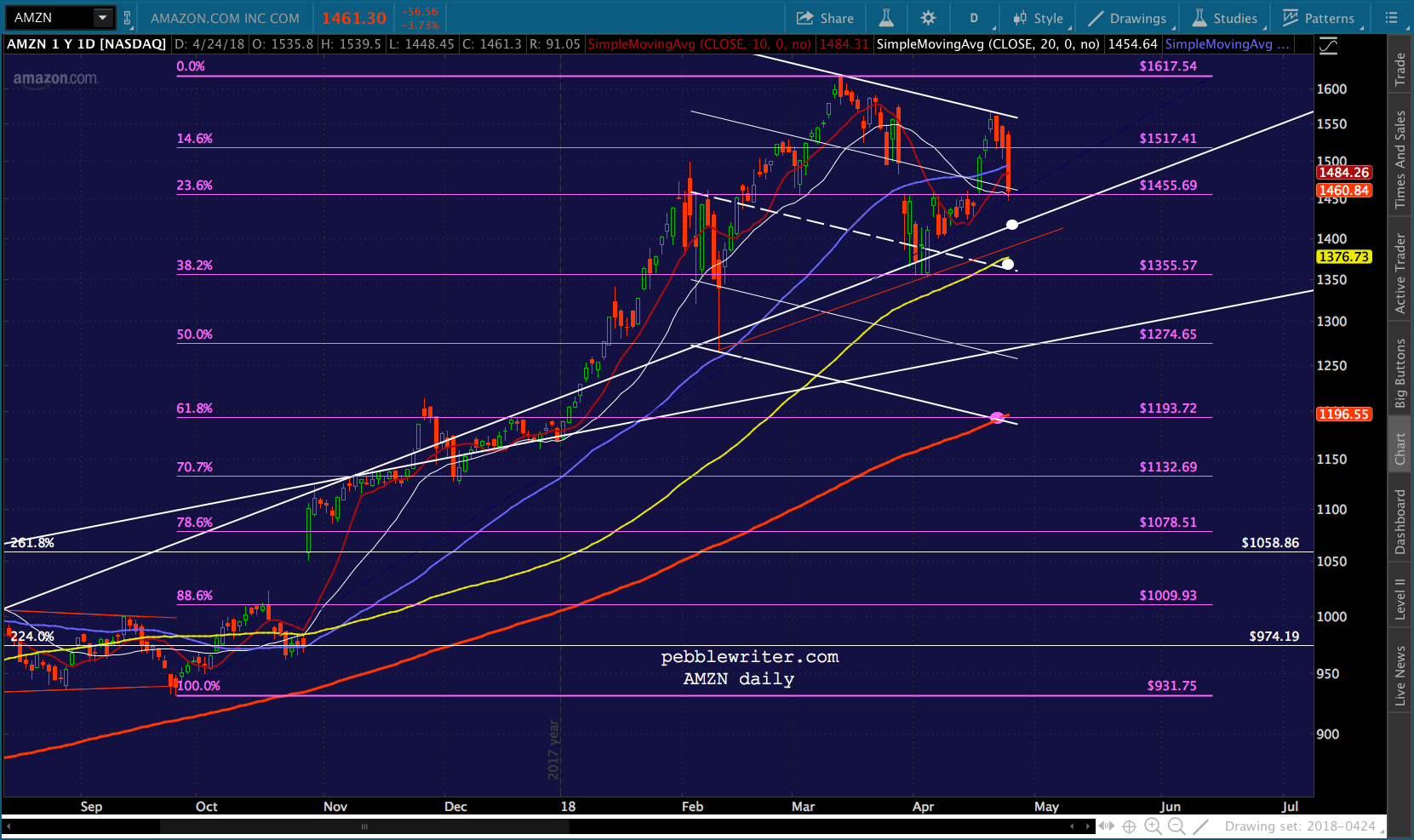AMZN and FB – about 2.4% away from TL support. GOOGL only about 1.5%.
