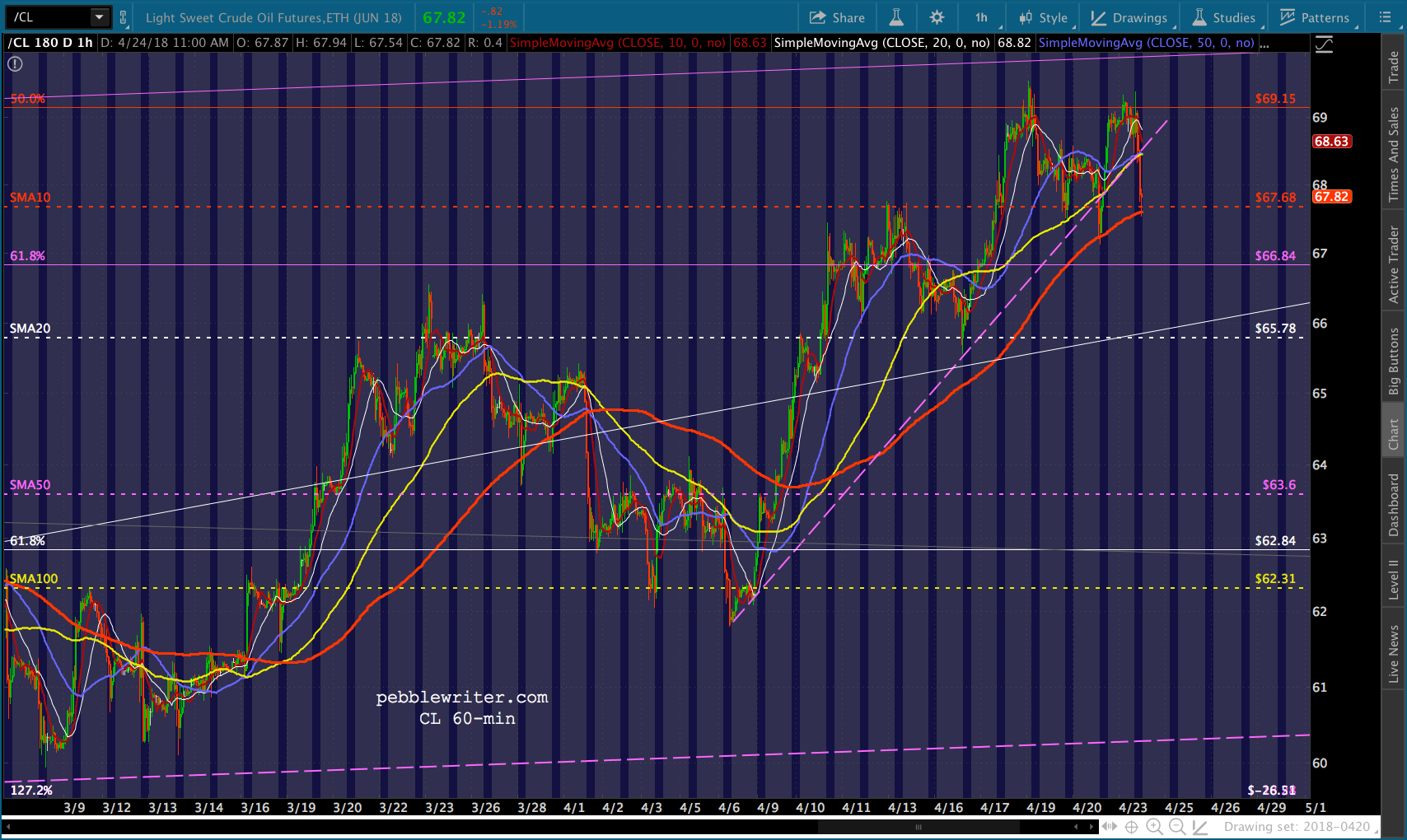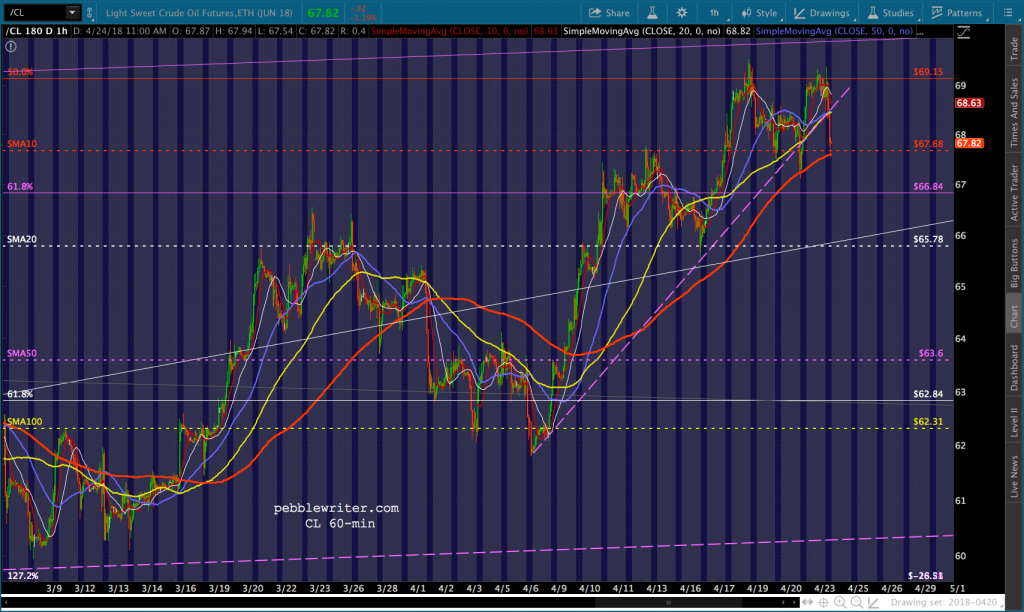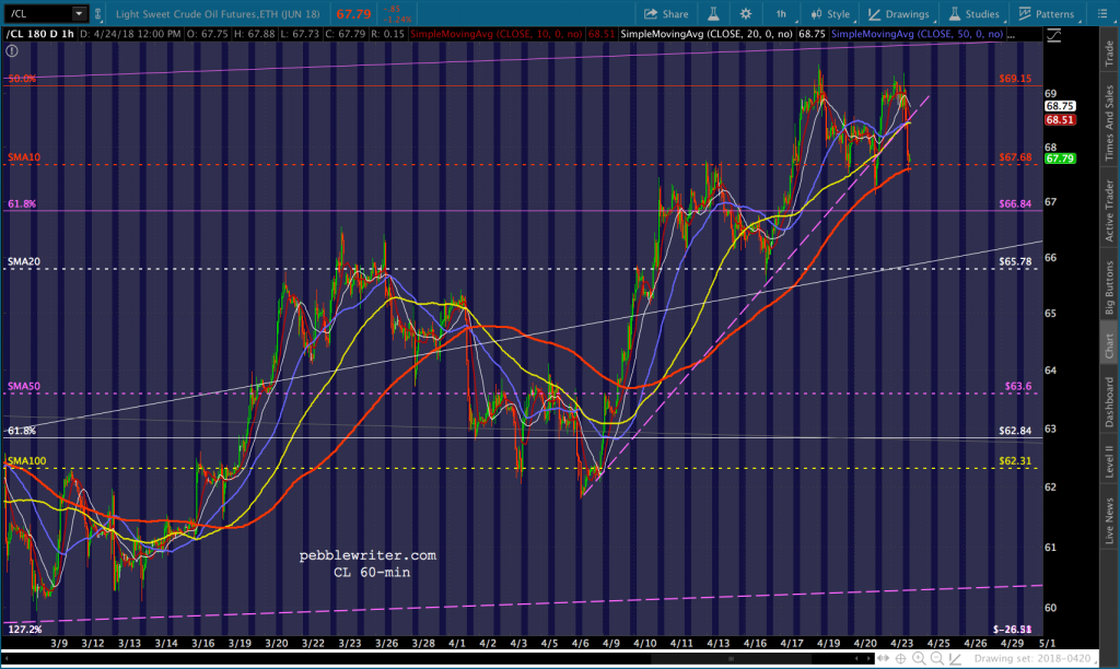 Note that RB and CL are still sitting at support – RB at trend line and CL at its SMA10 and the SMA60 200. If SPX/ES are meant to bounce at their SMA200s, then CL and RB should be part of that. If not, look for both to fall through their support. Of course, as we approach the close, we have to start wondering about head fakes and overnight positions…