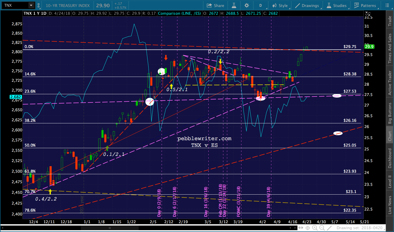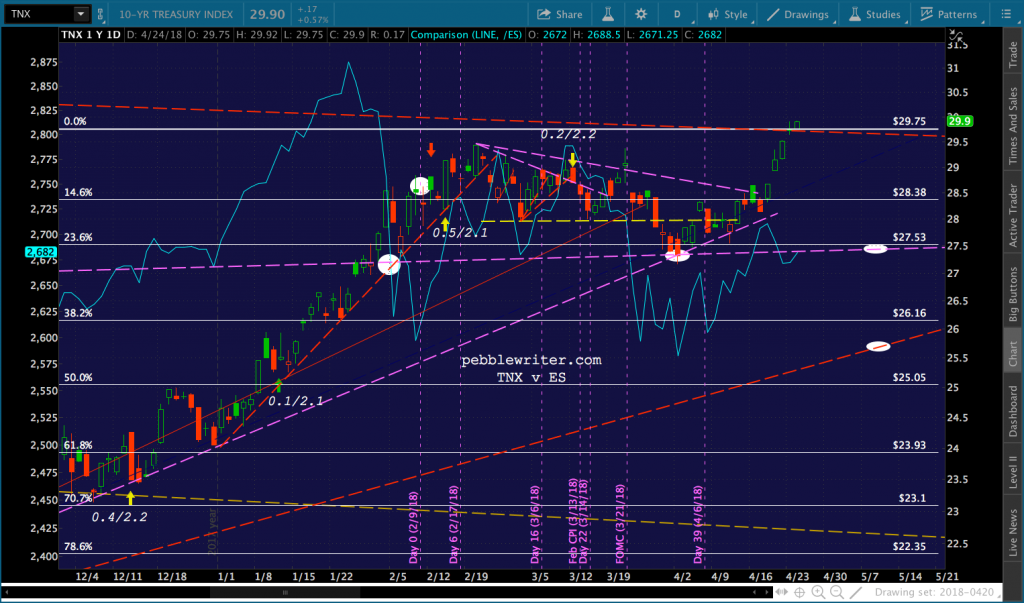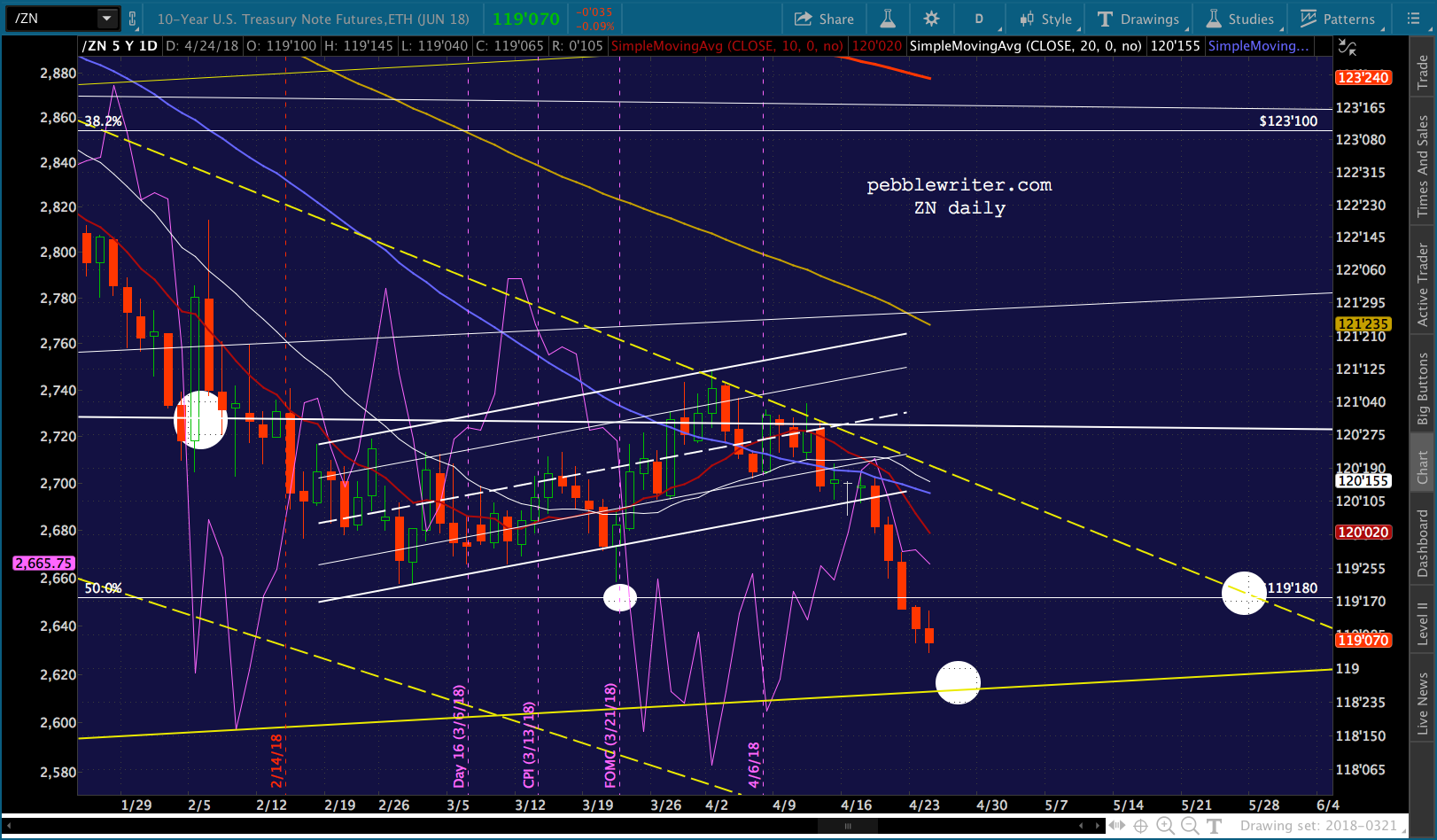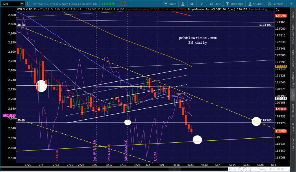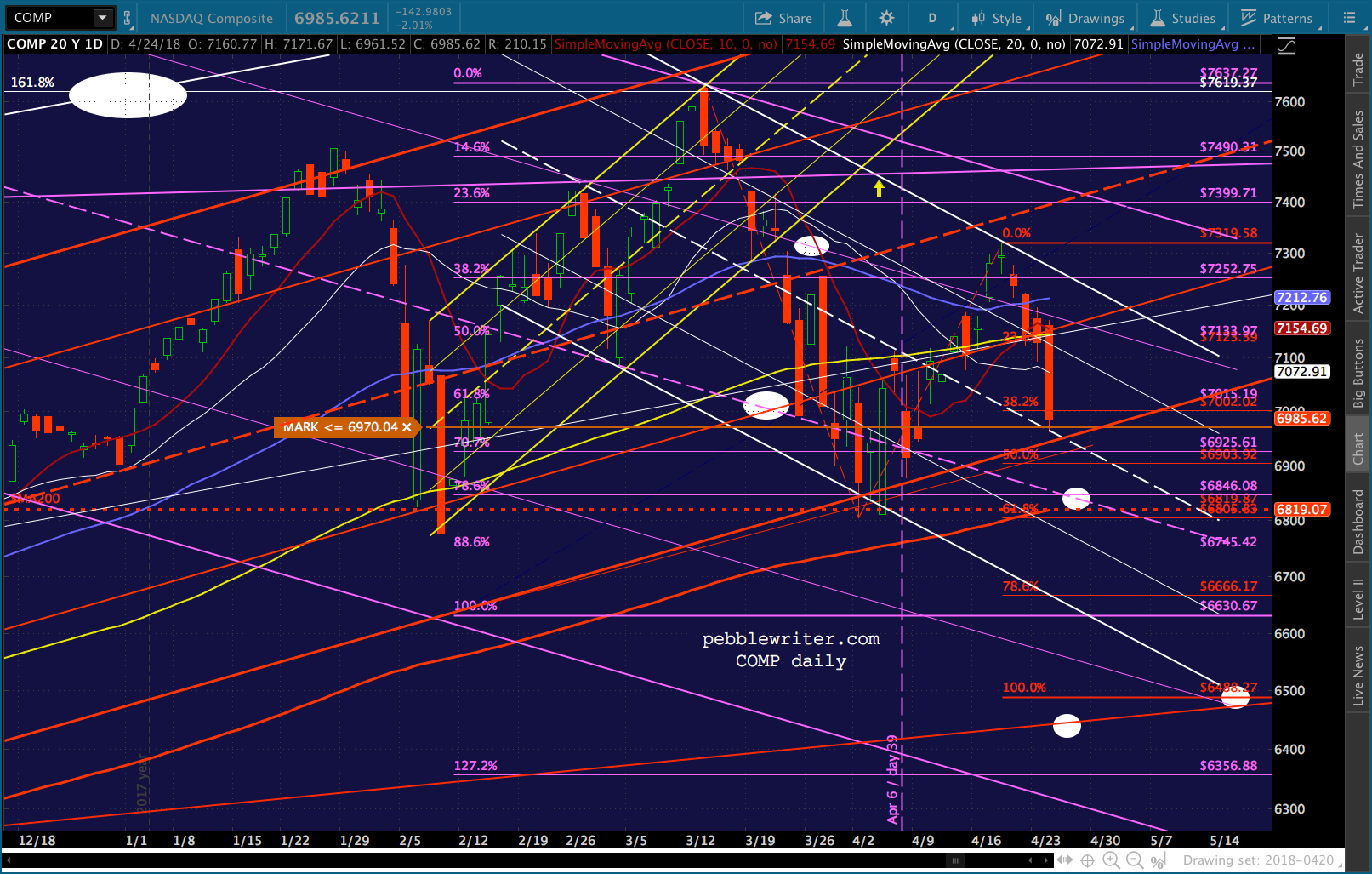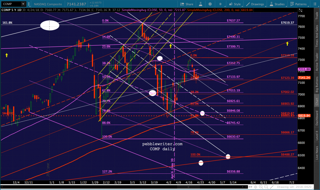 ES is approaching the bottom of its rising white channel. I haven’t seen this as all that important since it doesn’t look as solid on SPX and because COMP is still 2% away.