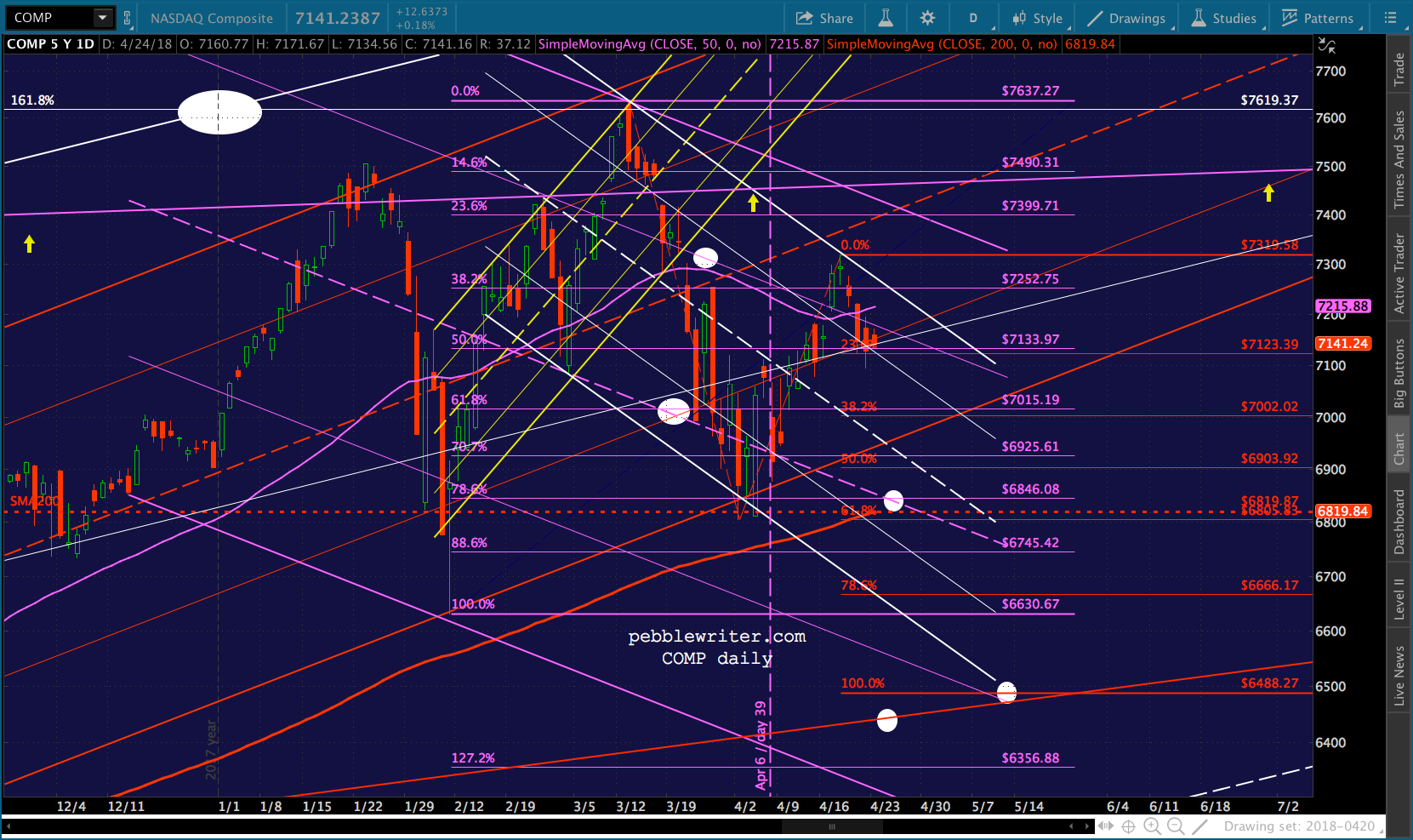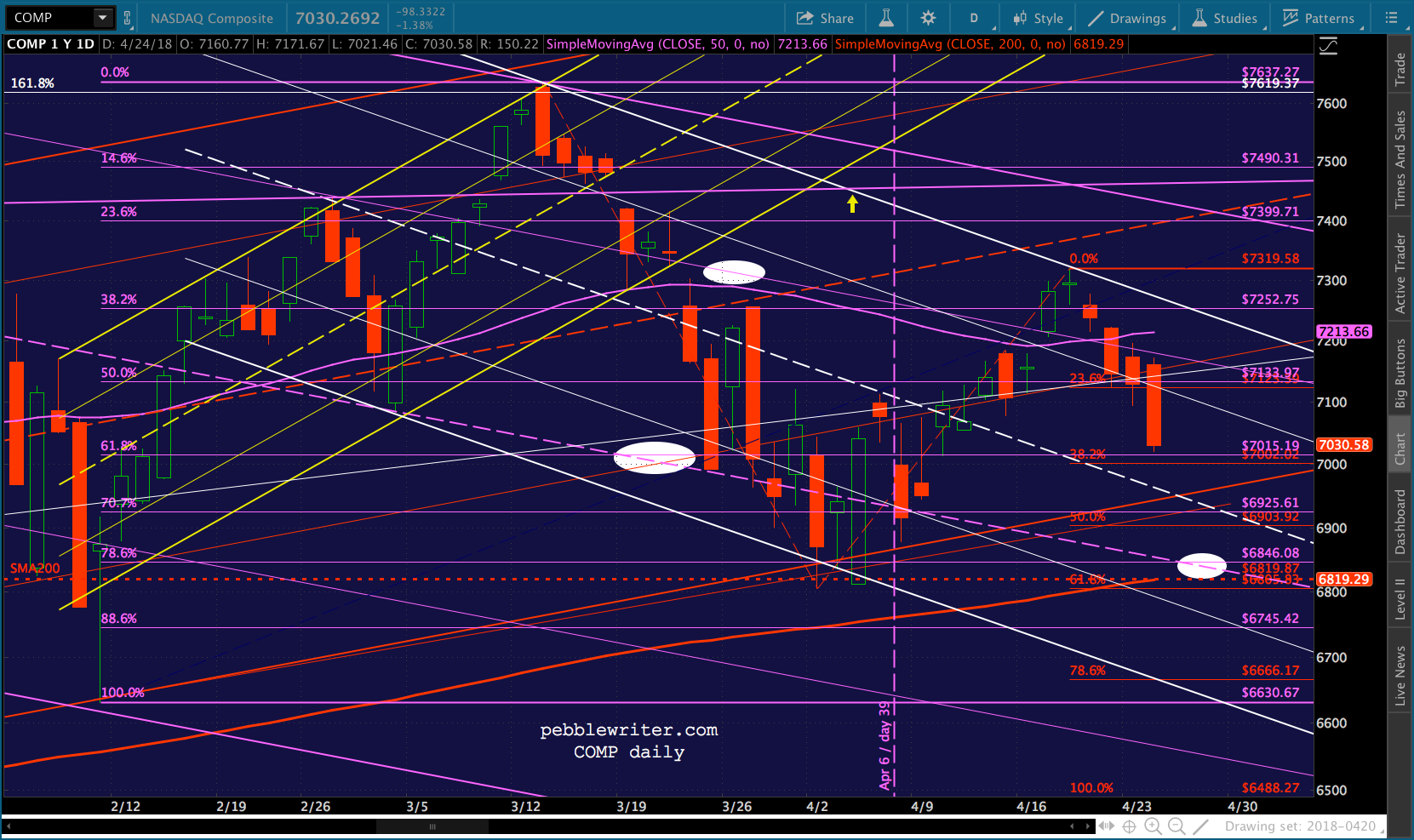 I continue to look at the COMP SMA200 scenario as driving markets for the moment. The SMA200 has been climbing around 10 points per day, and will arrive at the .786 sometime in the next week or two. FWIW, I consider it ripe for the picking right now.