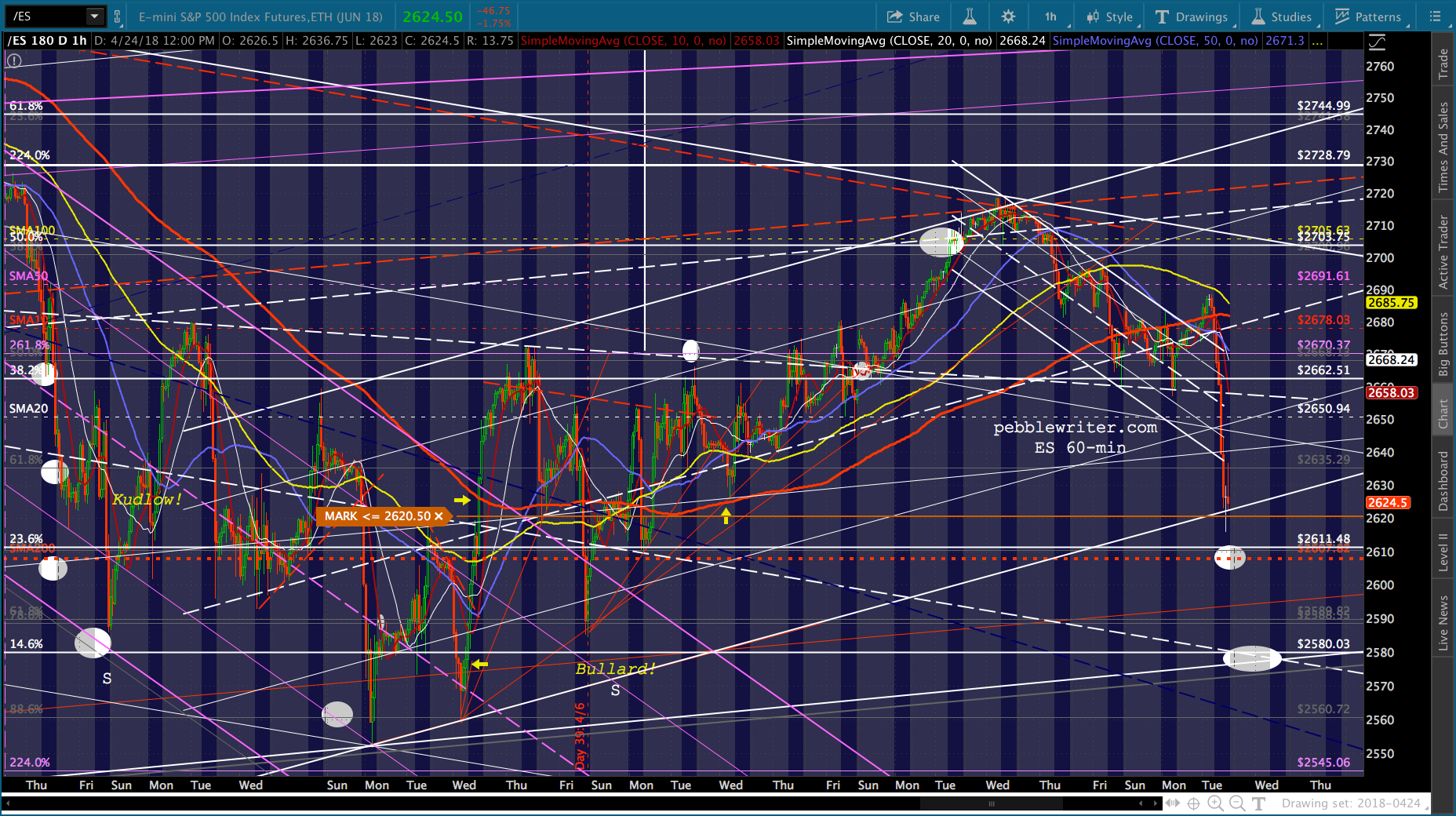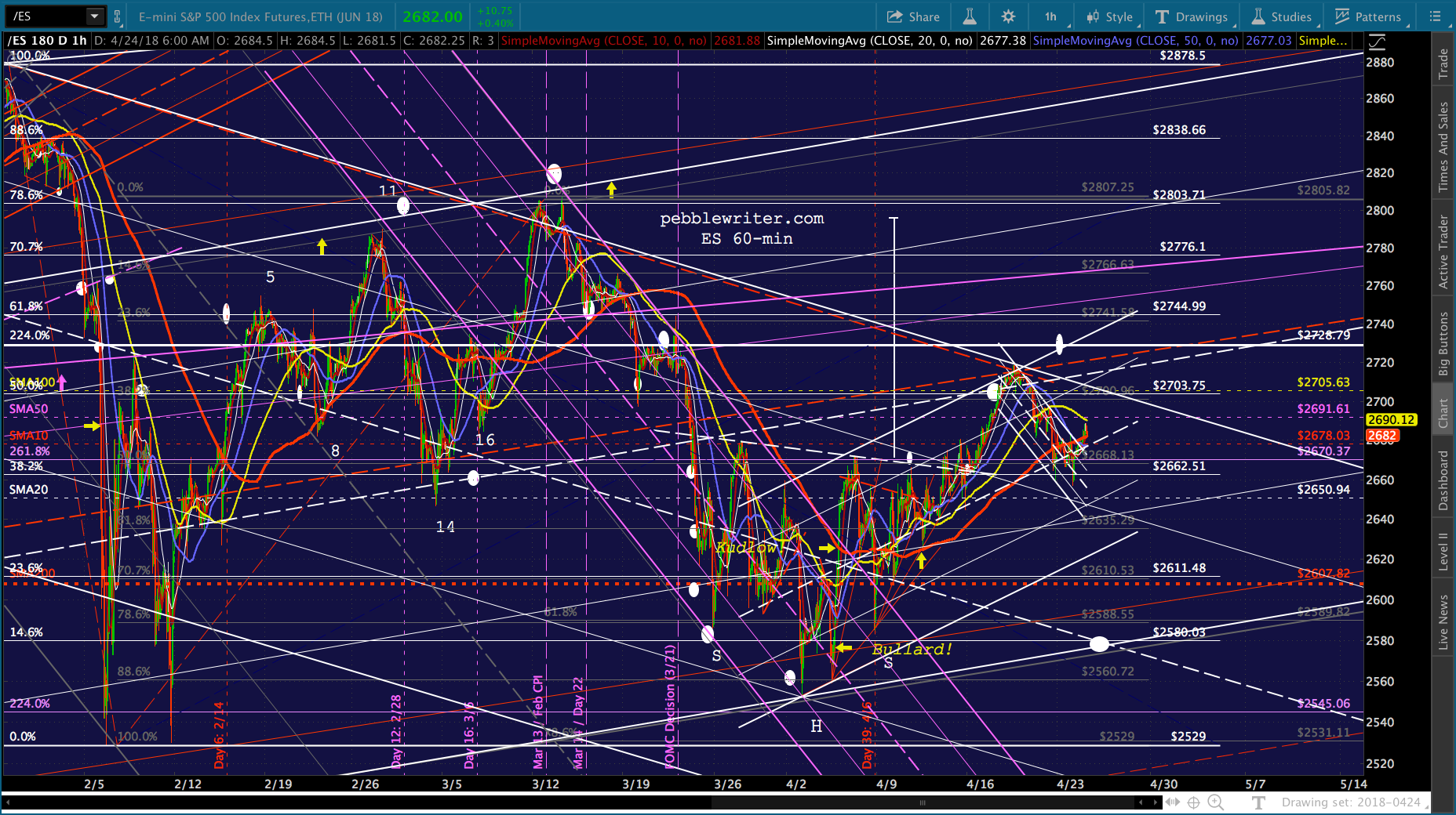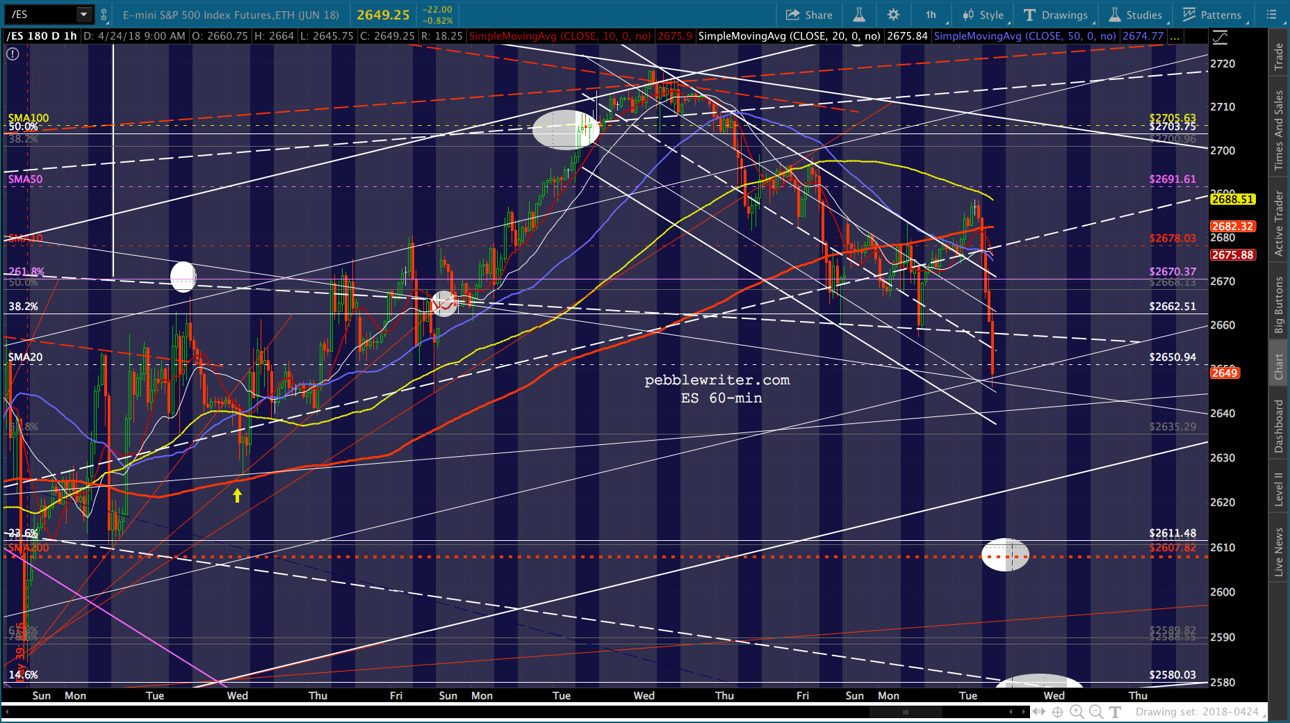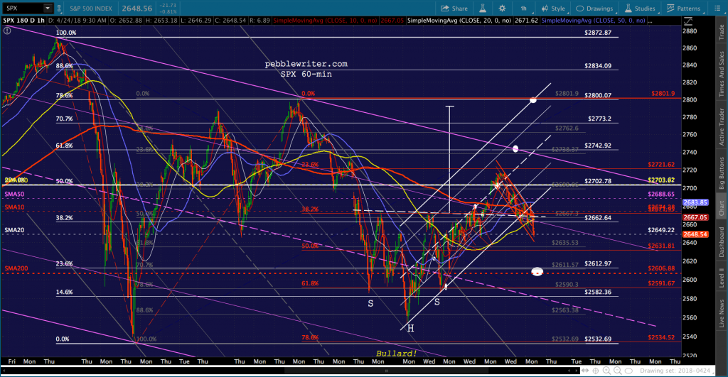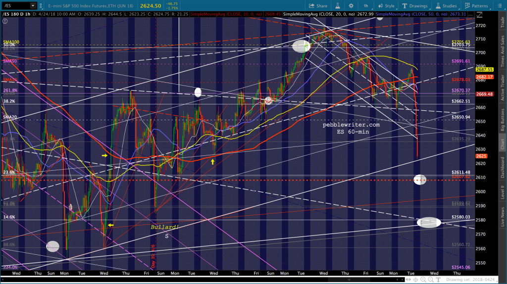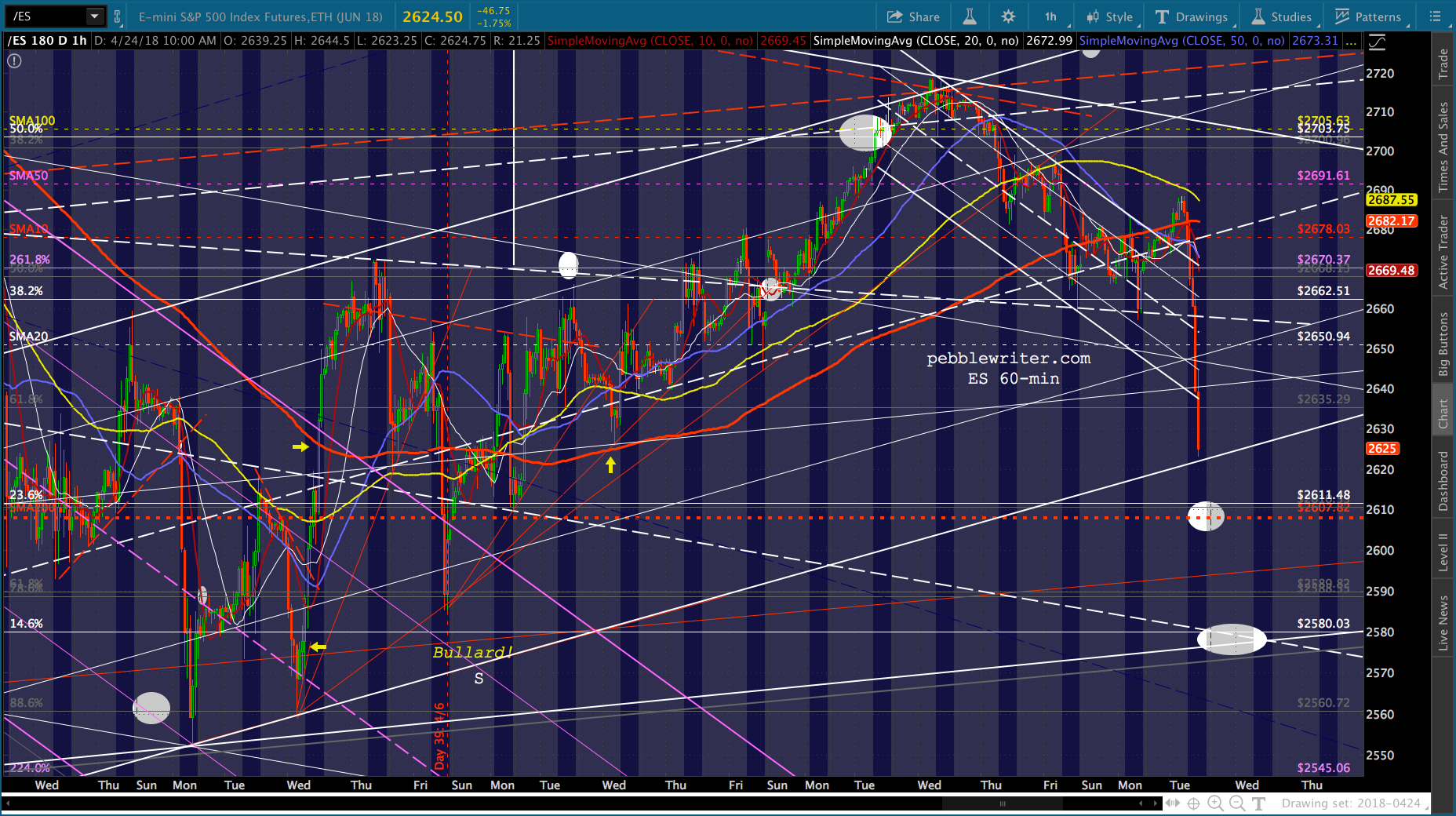 It’s unlikely that ES, SPX and DJI won’t tag their SMA200s at all. We could get a plunge through to the 2.4% target in sync with COMP, or we we could get the rest of it tomorrow. Personally, I prefer a close at or below the SMA200s, as it would be the toughest to decipher. But, the bulls will probably try to close above them.