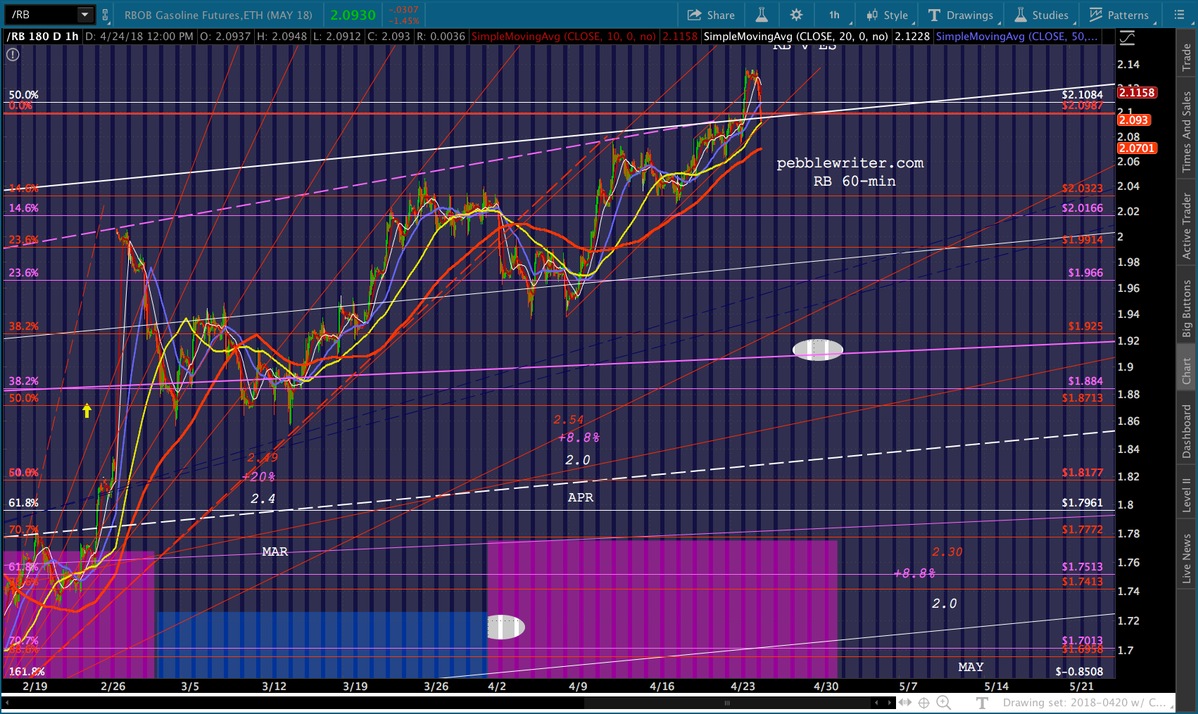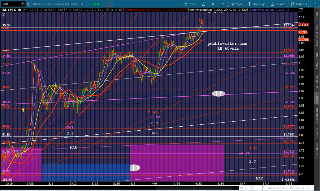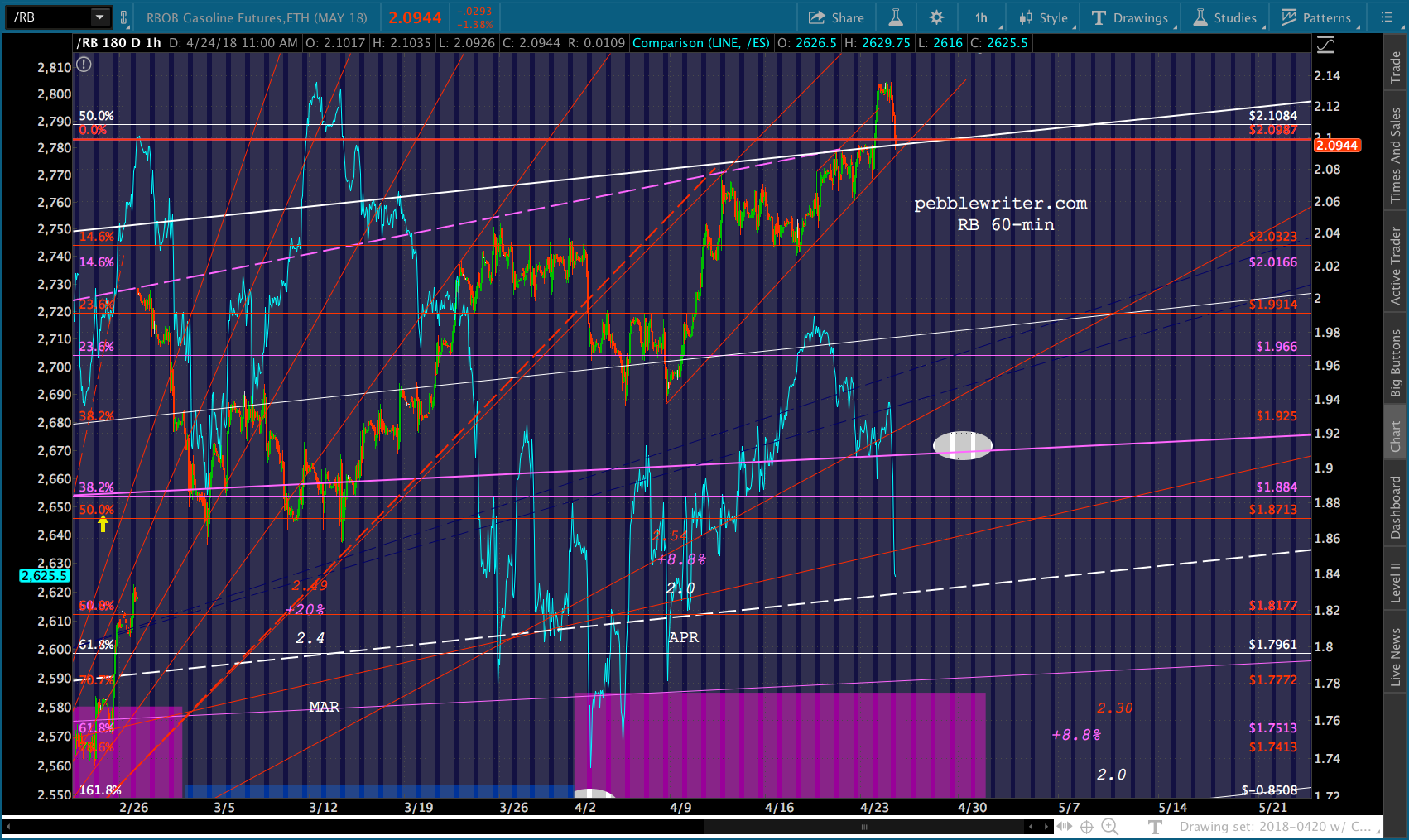 CL and RB – holding at support. Could make a big difference tomorrow morning in helping COMP reach its goal or in helping ES/SPX avoid a similar fate.