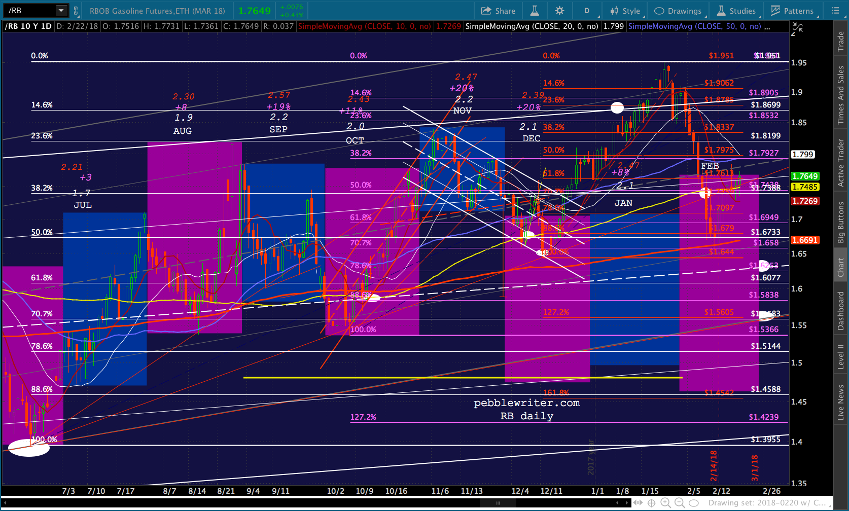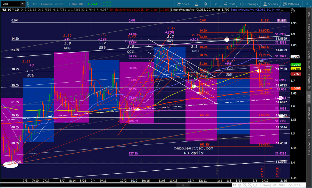 Mar 1 is day 16 of our analog, when VIX was supposed to spike higher — enabling a dip in SPX. What if instead of VIX spiking (too dangerous!!!) we saw CL plunge to 53-54 and RB to 1.61? We’d get the dip (backtest) in stocks without the risk of another big VIX spike. Wishful thinking.