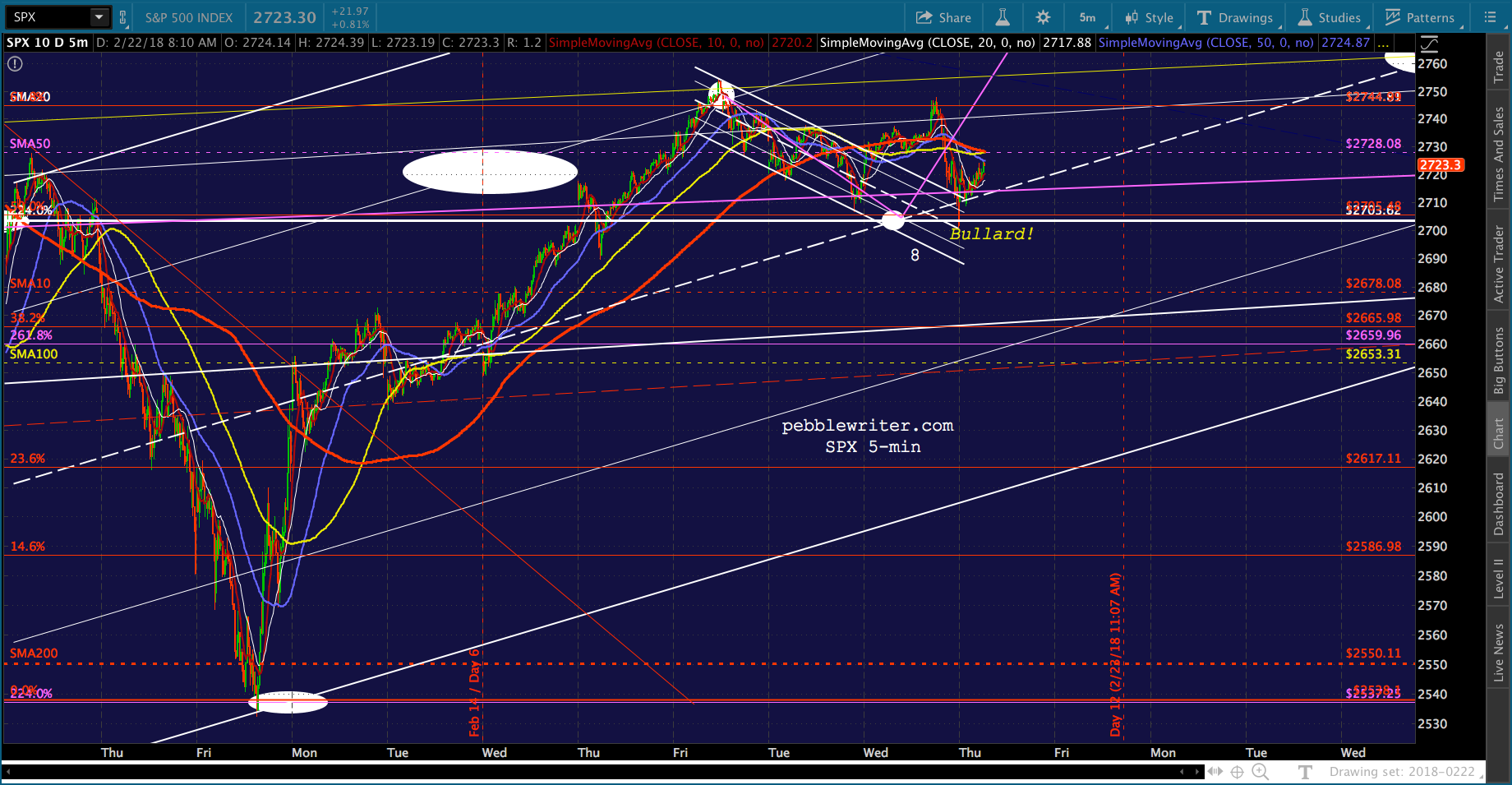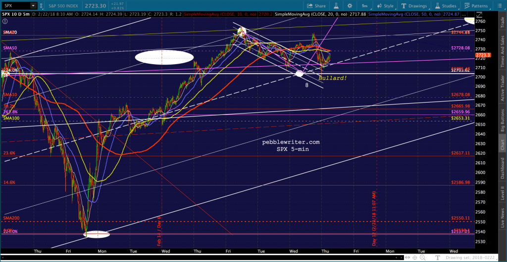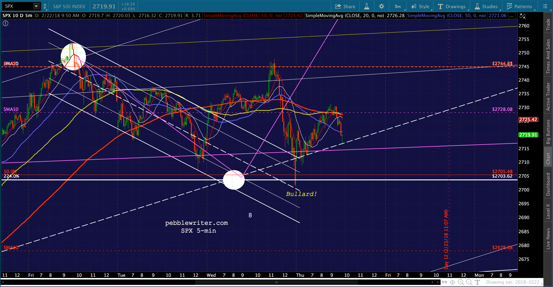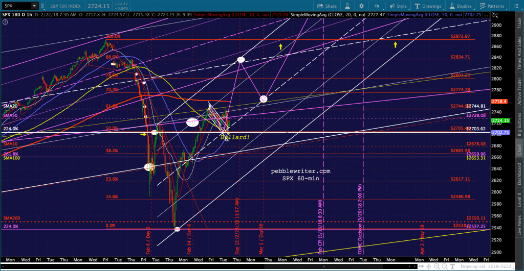 VIX moved to exactly where it needed to in order to string together some legit-looking higher highs and higher lows. Today, a pop up to 26 would create more of a drop in SPX than TPTB wish to see play out. So, instead, the rise in VIX took SPX to backtest the 2.24 at 2703 and then stopped.