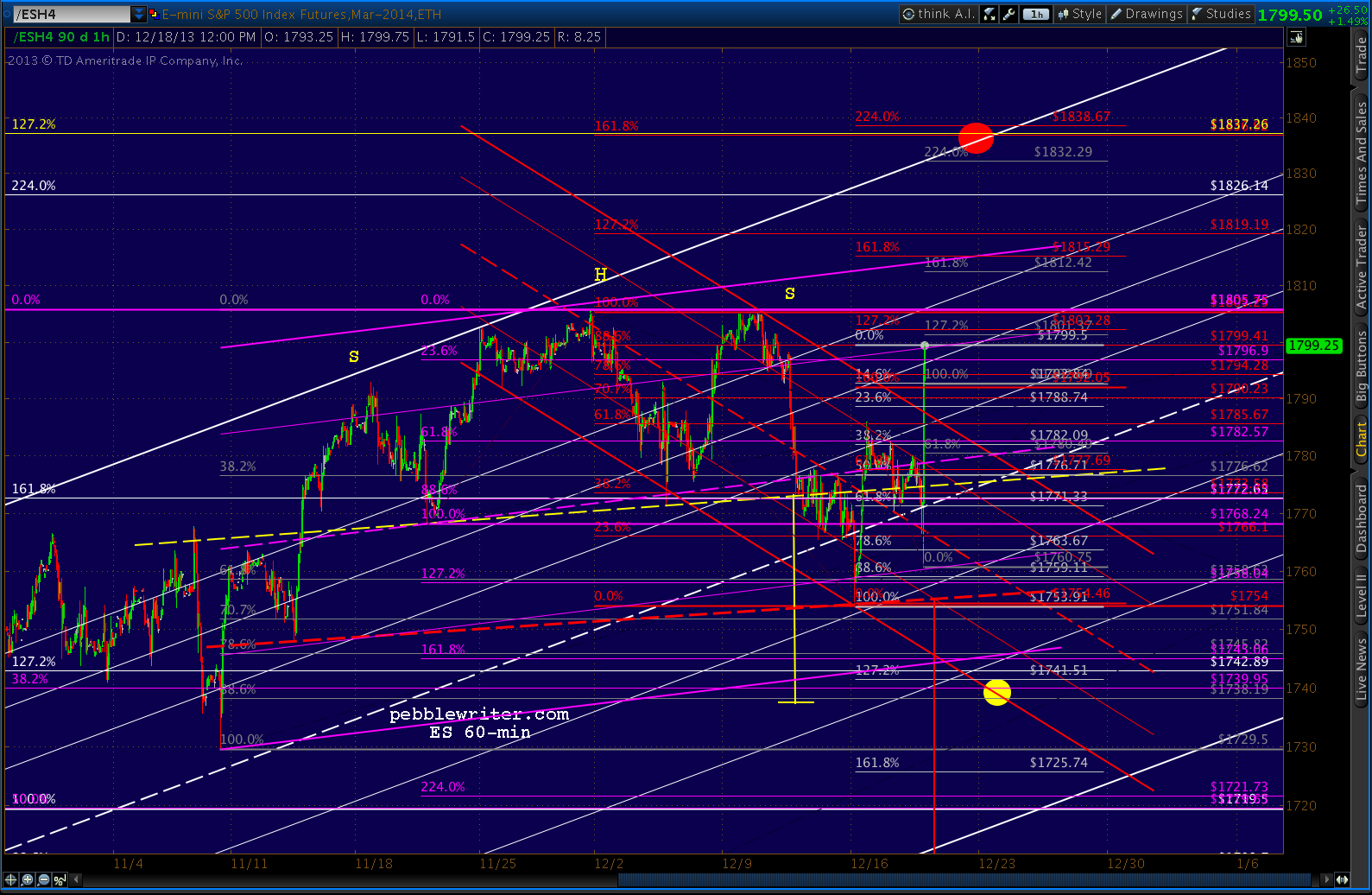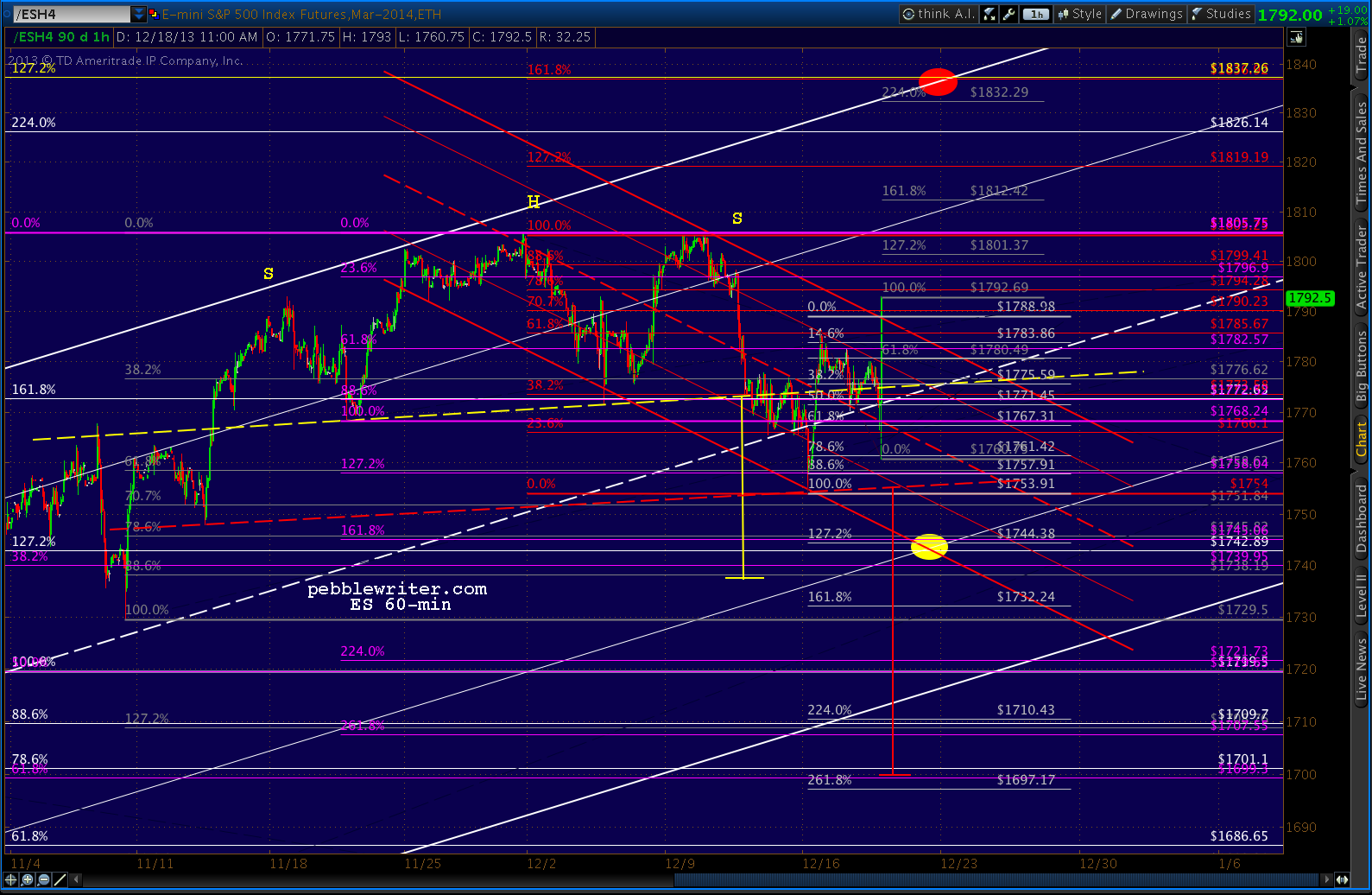 ES broke out of the falling red channel, tagged the .786, and will probably tag the .886 at 1799.50 after back-testing the channel.