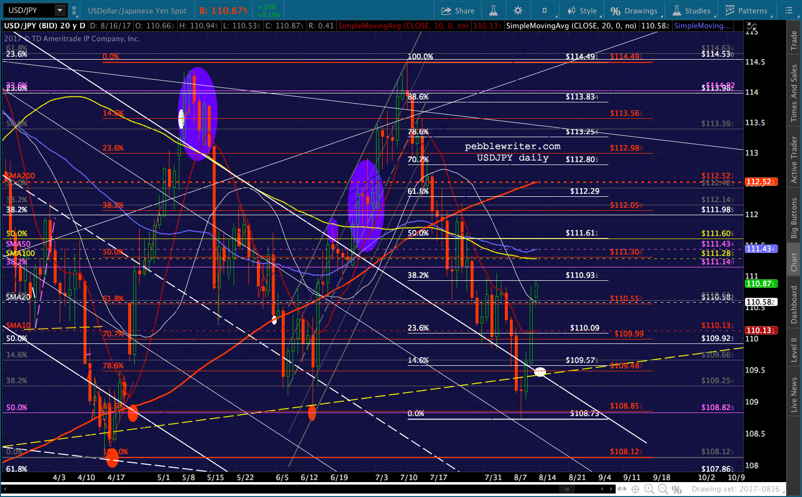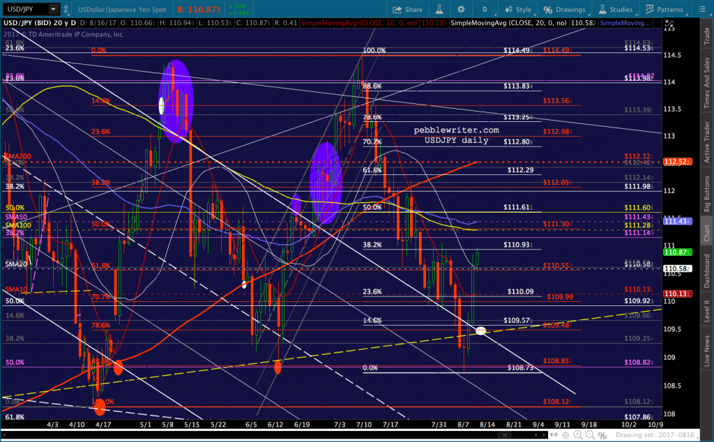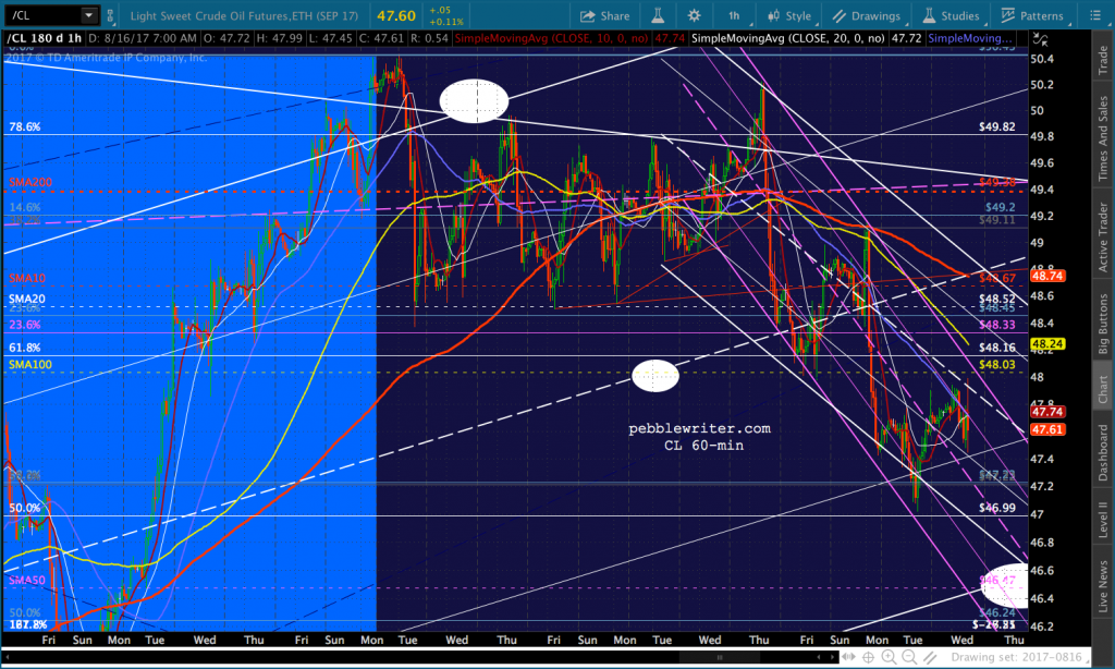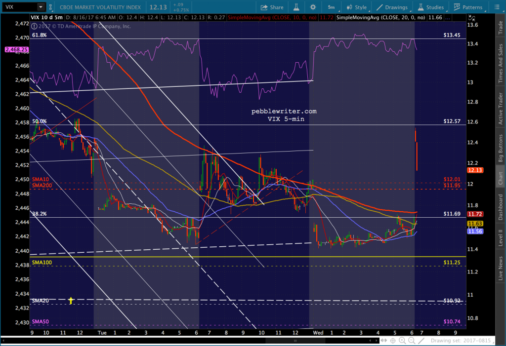 There’s the .618 tag, and VIX is rising slightly while CL falls. I’ll assume this is a slight overshoot and look for a reversal here — at least to the .500 but more likely to the SMA5 200 or .382.