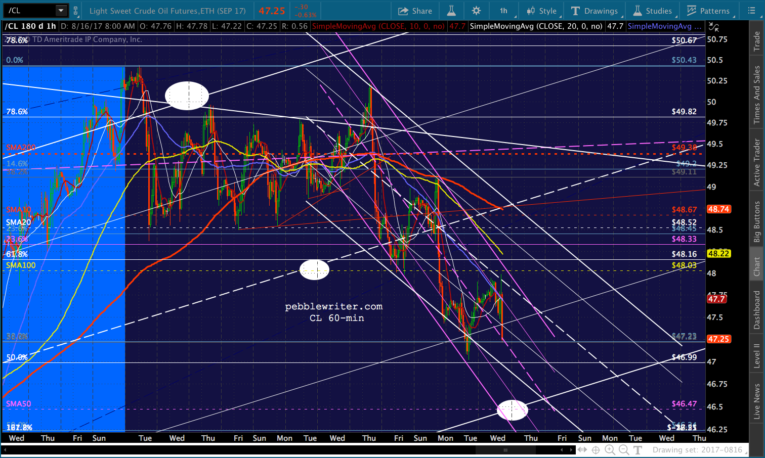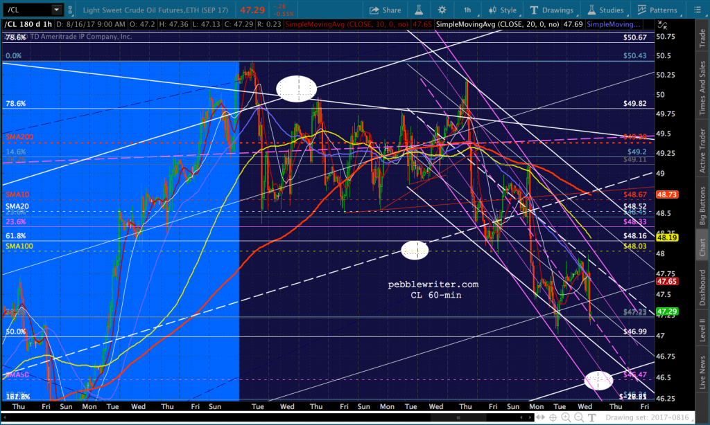 There’s the SMA10 tag, or close enough anyway. Given that VIX just reversed near the SMA200, I’ll assume this is at least an interim low. I would say it’s a great place for a bounce, but the possibility remains of a dip to the .500 around 2:45pm since CL hasn’t yet bottomed out.