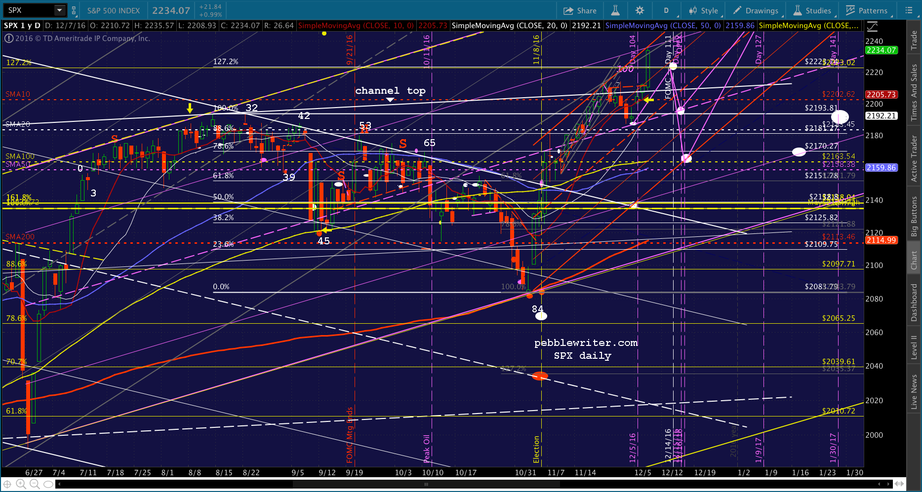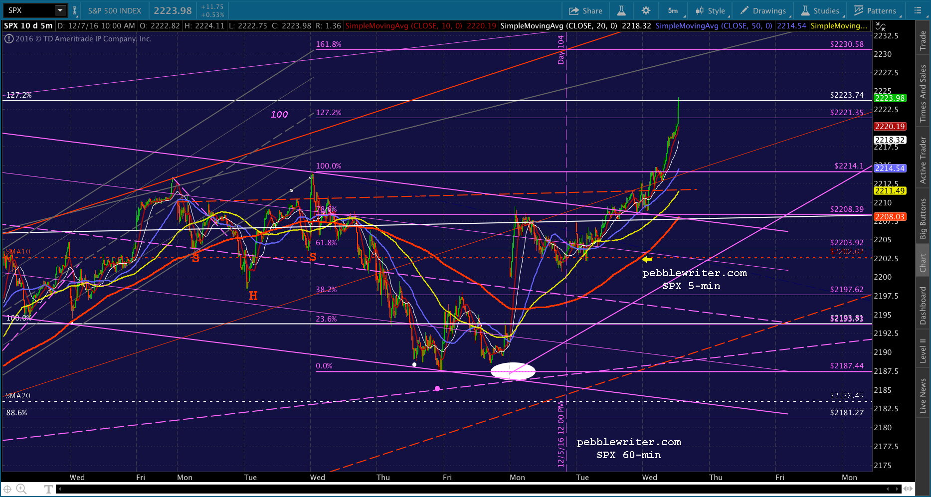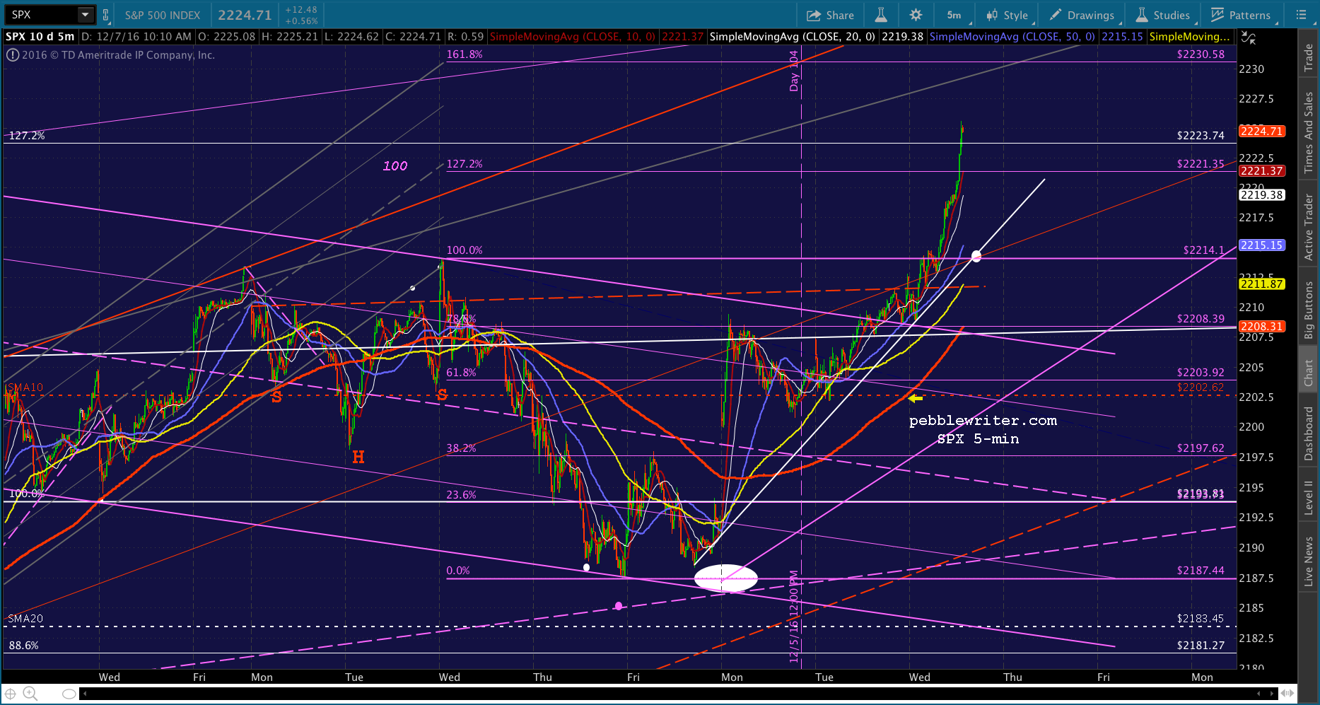Only if it drops through the approaching SMA5 10 and white channel top would I re-short for 2223. The next resistance is ES 2235.84, about 2236ish in SPX.