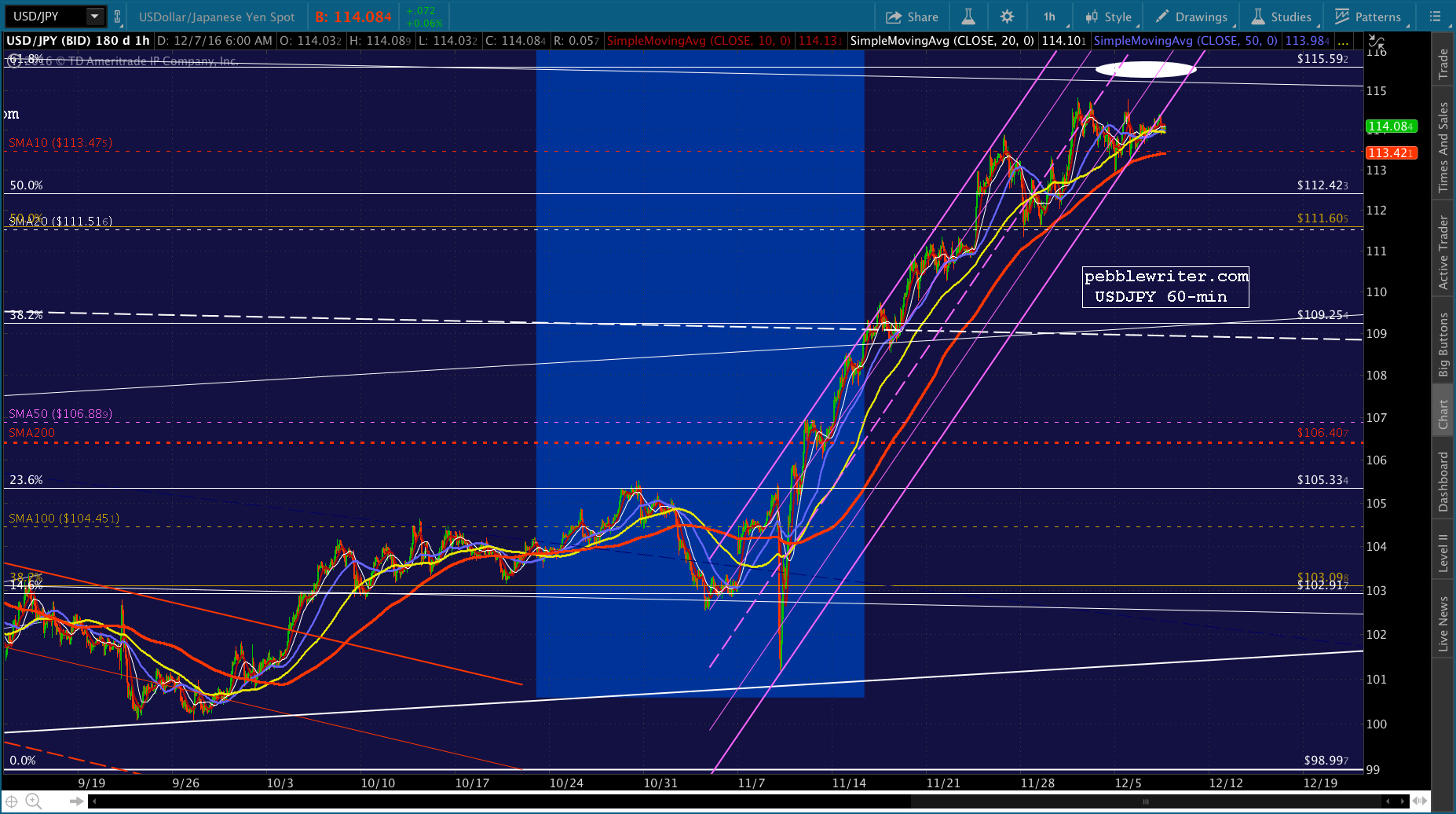 I had the yellow channel bottom around 11.23, which is not too far below this morning’s 11.33 lows. So, if it bounces on the channel bottom, we’re probably close enough. Just understand that, almost every day, VIX is being driven above and below resistance and support that is often constructed solely for the purpose of indicating something — a breakout or breakdown. I say that because VIX will almost certainly be crushed if SPX should, for instance, get into trouble in the wake of the FOMC decision. This could easily mean a drop below the channel line — either momentary or something more lasting. TPTB are playing for keeps, and don’t give a damn about appearances any more.