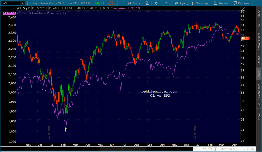 Likewise, oil prices have made their mark as an important algo trigger. Our Feb 11, 2016 bottom call was occasioned by the recognition that stocks were in danger of breaking down. Oil and USDJPY were supported in order to, in turn, provide critical support for stocks.