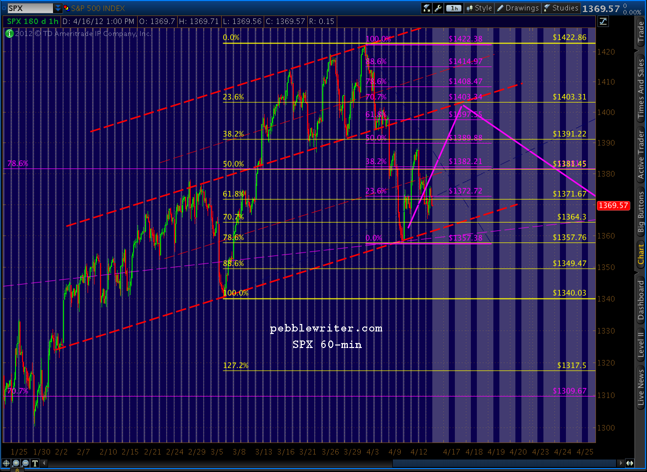 A perfectly formed H&S pattern would mean a right shoulder in the 1400 range. Though, as we pointed out yesterday, we already have enough of a right shoulder to matter.