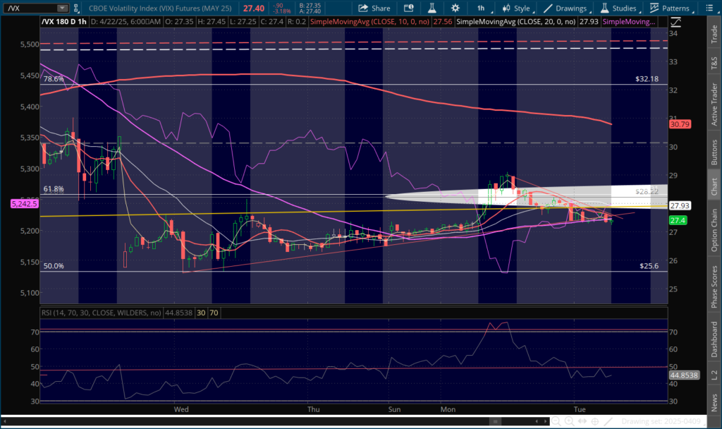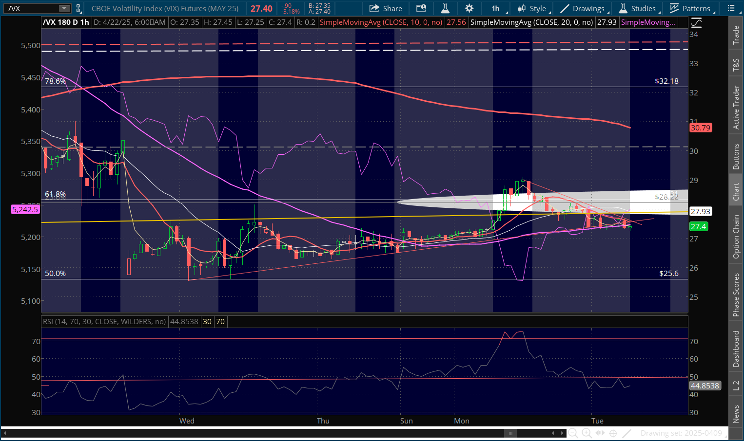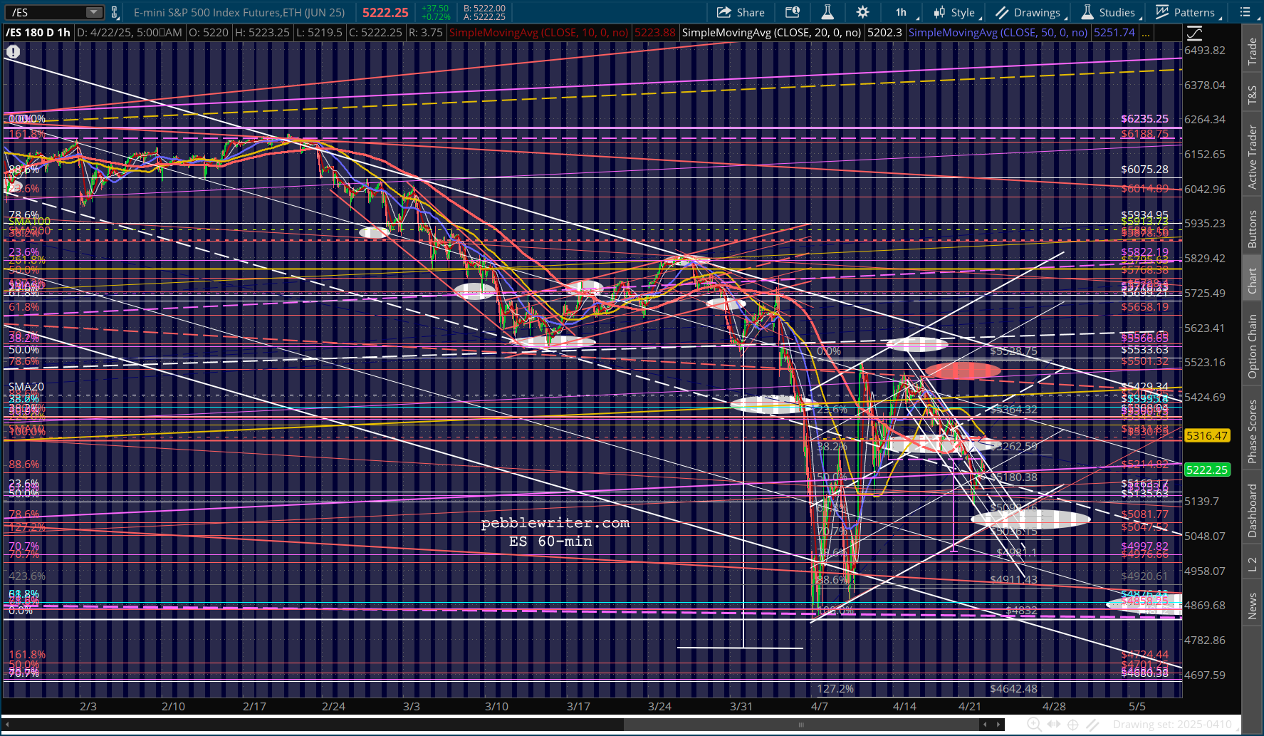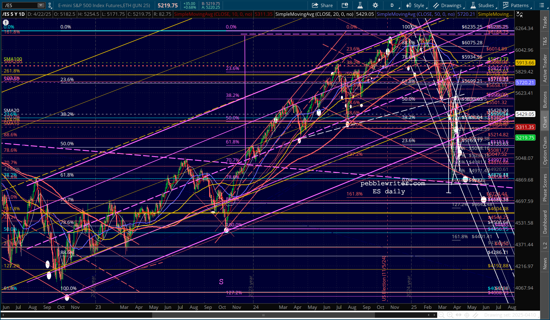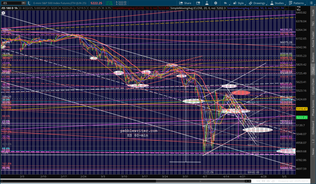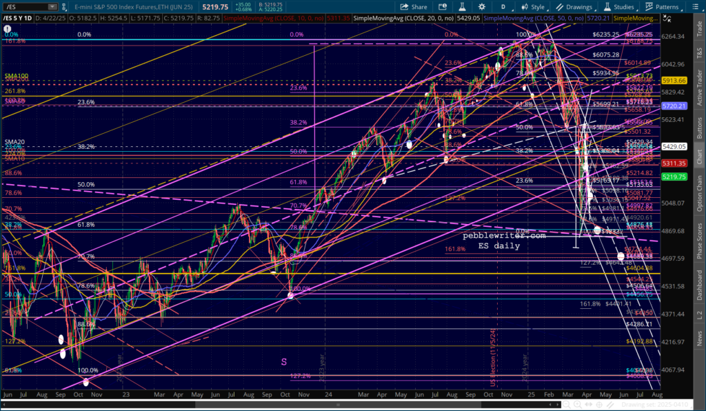 This is the first tag of the falling white channel top that was repeated shortly after the last one.The line in the sand is likely the 200-period SMA on the 15-min ES chart at 5250.