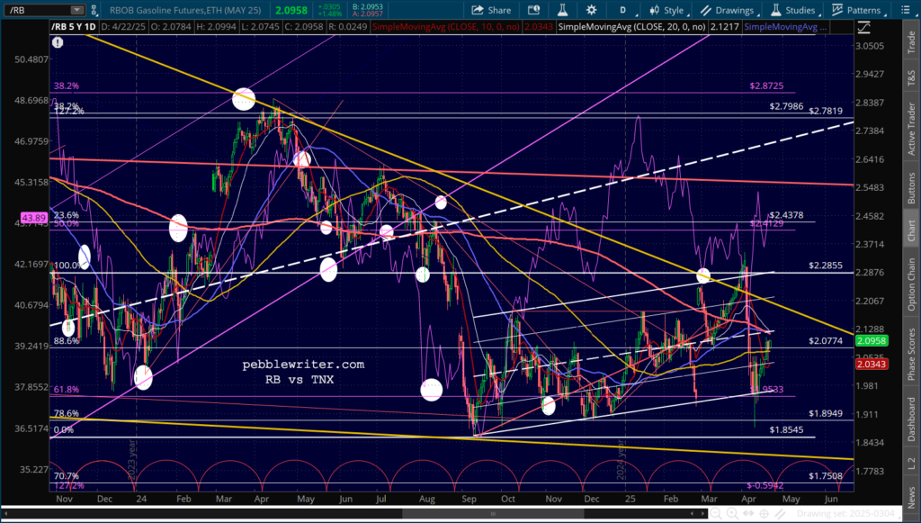CL and RB are still inching higher, providing an upward nudge to the 10Y.