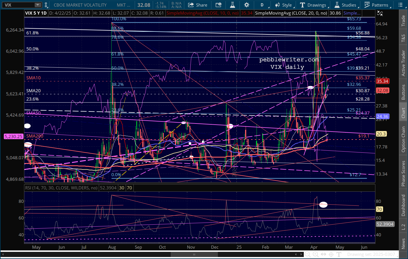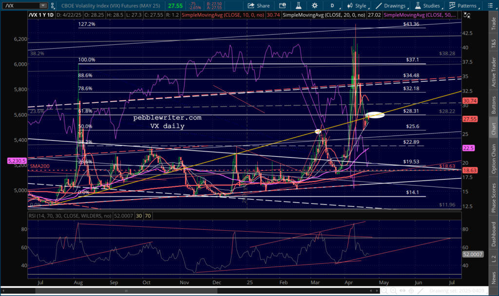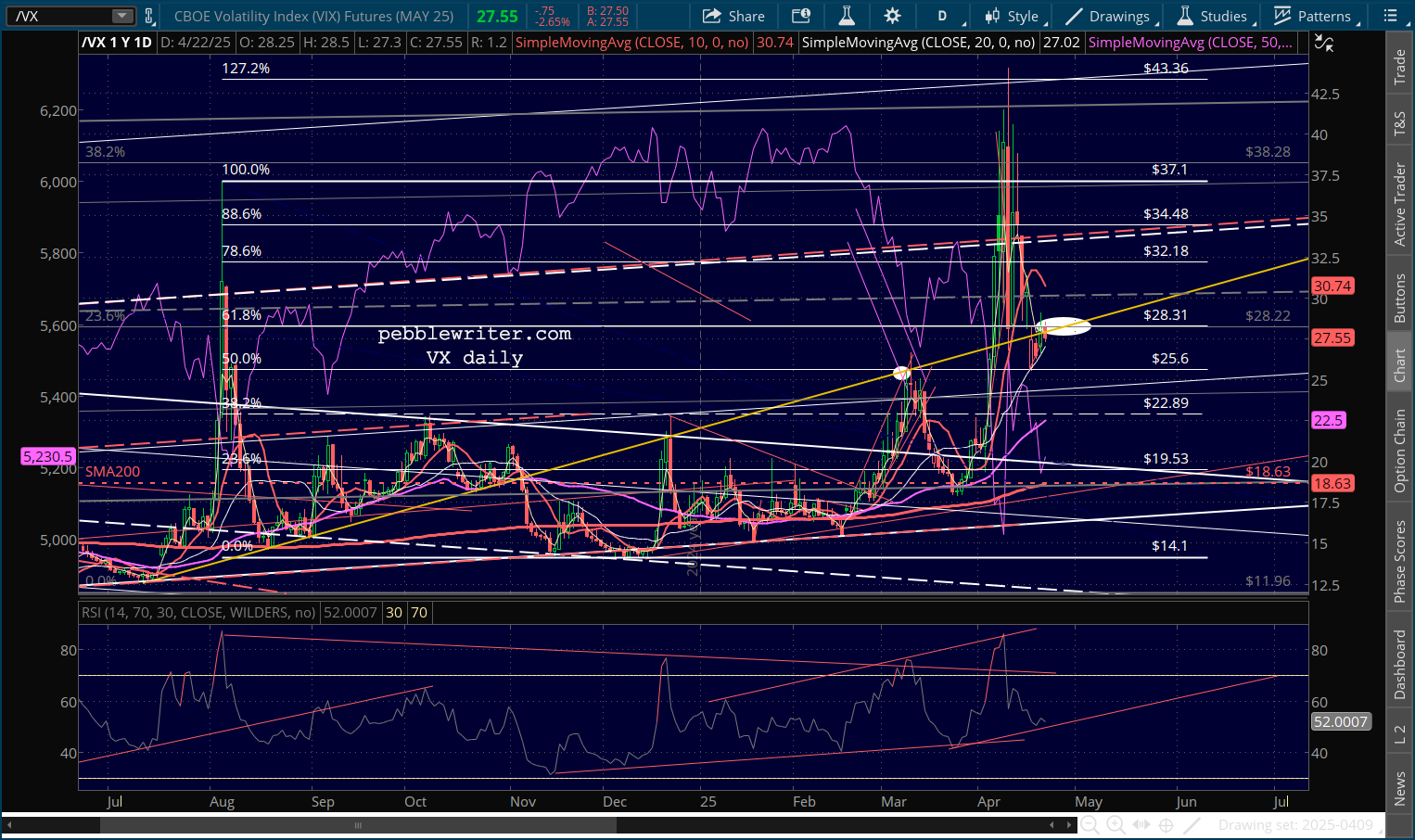 Like last Friday, VIX and VX are threatening to break down. Note that VIX’s SMA10 has rolled over – usually a sign of an equity upturn.