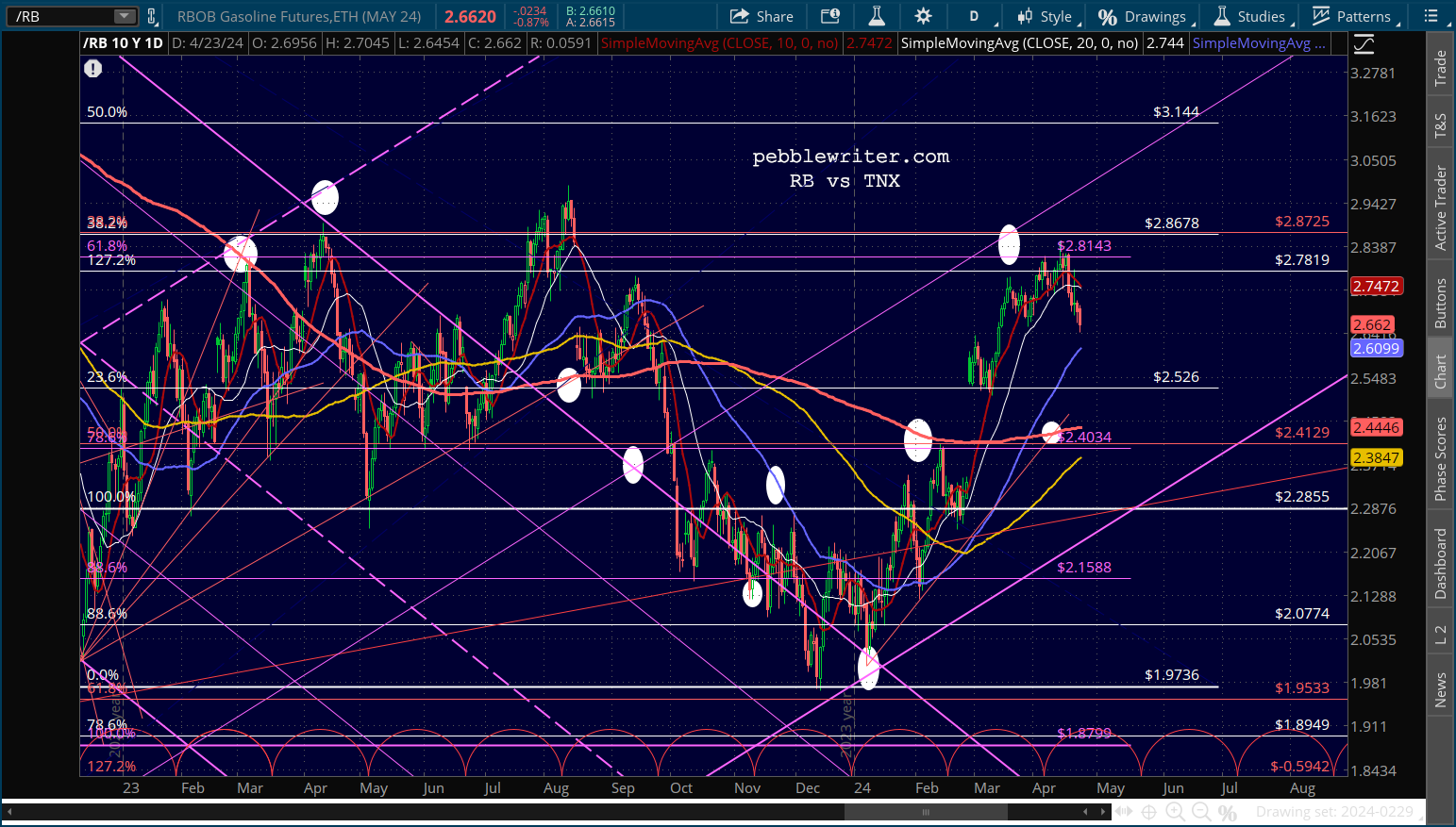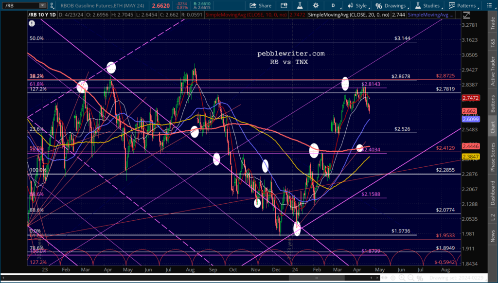 Oil remains well supported at its SMA50 with its SMA200 just below, while RB’s SMA50 will provide support in the next day or two.